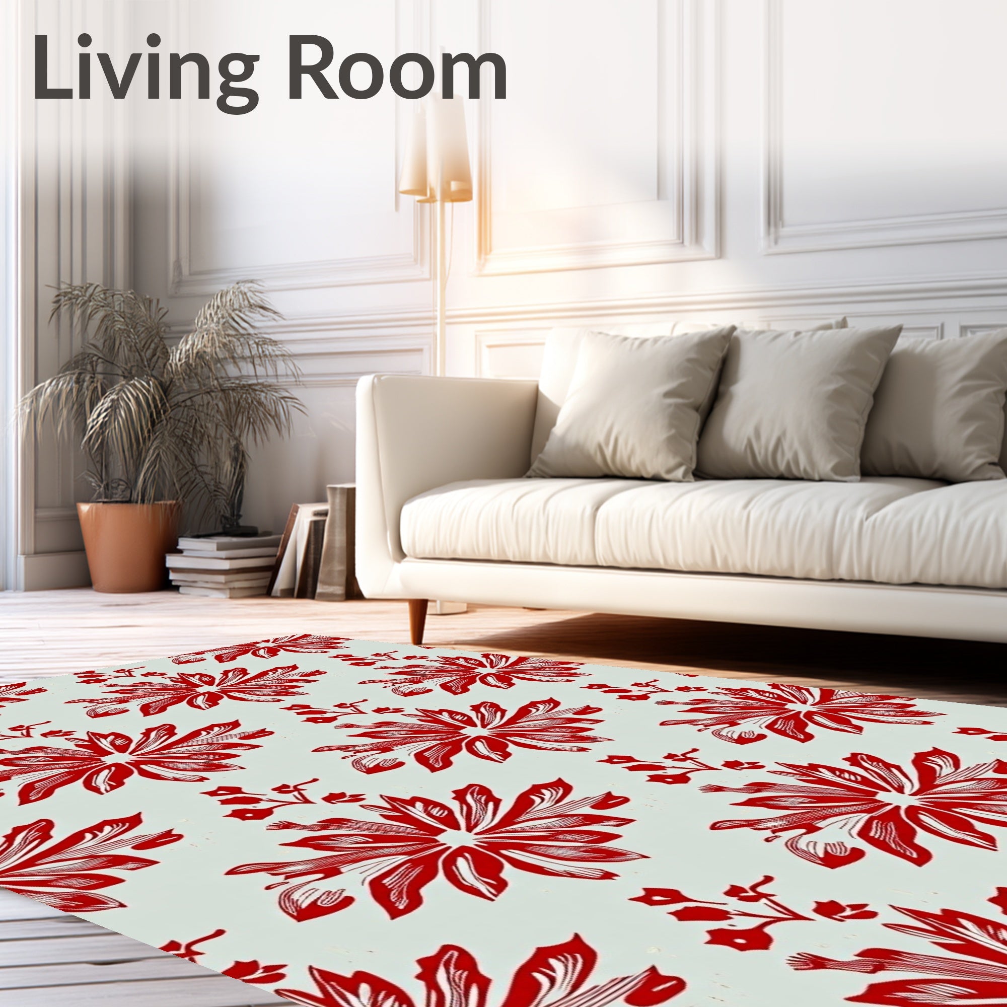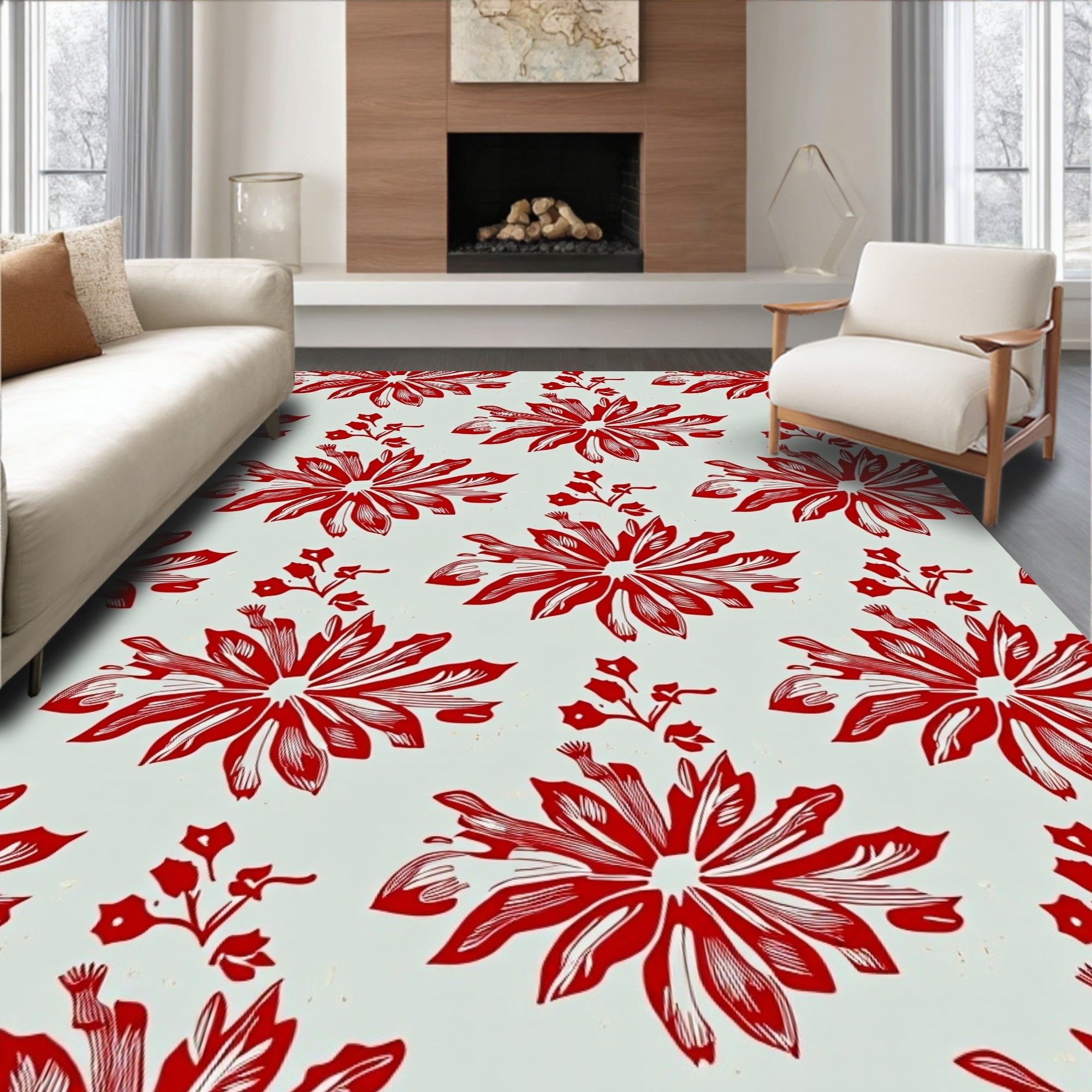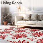 Ultra Soft Area Rug, Non Slip, Stain Resistant, Washable Area Rugs for Living Room, Bedroom, Vintage Inspired Winter Motif With Holly Leaf Accents(Red) Overview: