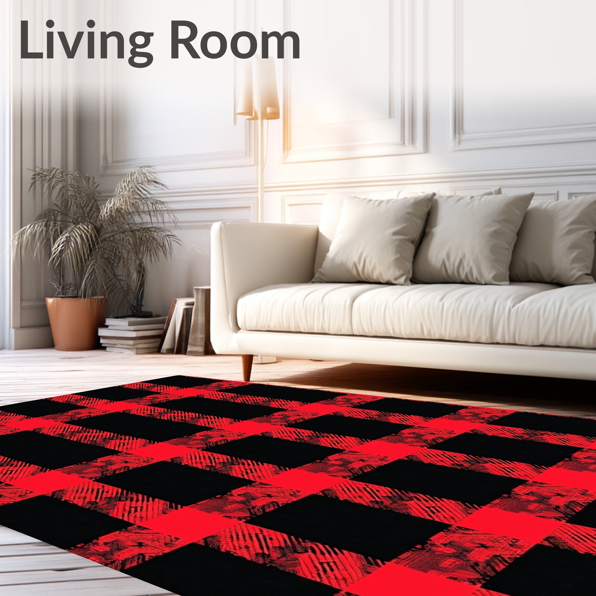 Ultra Soft Area Rug, Non Slip, Stain Resistant, Washable Area Rugs for Living Room, Bedroom, Vintage Lumberjack Plaid with Timeless Appeal(Black) Overview: