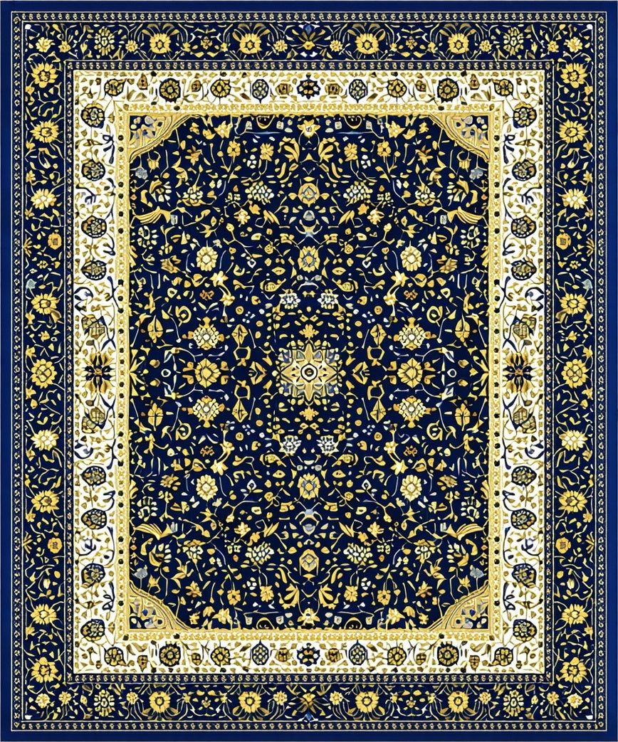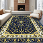 Flatwoven High Traffic Area Rug, Vintage Modern Abstract with Deep and Gold Accents, Non Slip, Stain Resistant, Washable Area Rugs for Living Room, Bedroom (Blue) Overview: