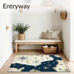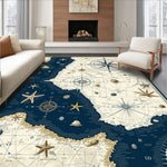Flatwoven High Traffic Area Rug, Vintage Nautical Map Inspired Featuring Starfish and Sea Shell Silhouettes, Non Slip, Stain Resistant, Washable Area Rugs for Living Room, Bedroom (Blue) Overview: