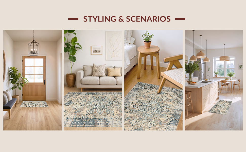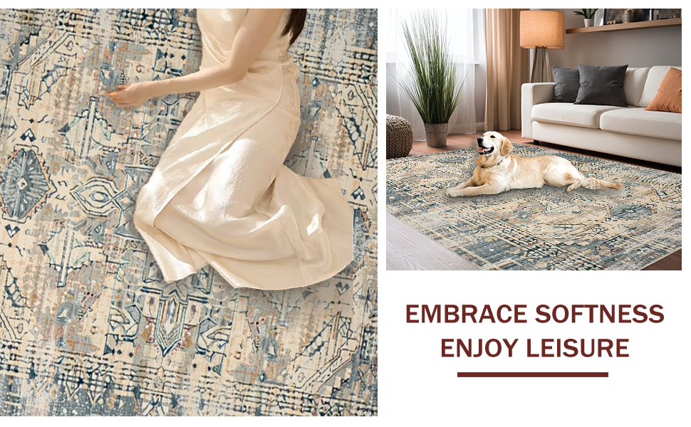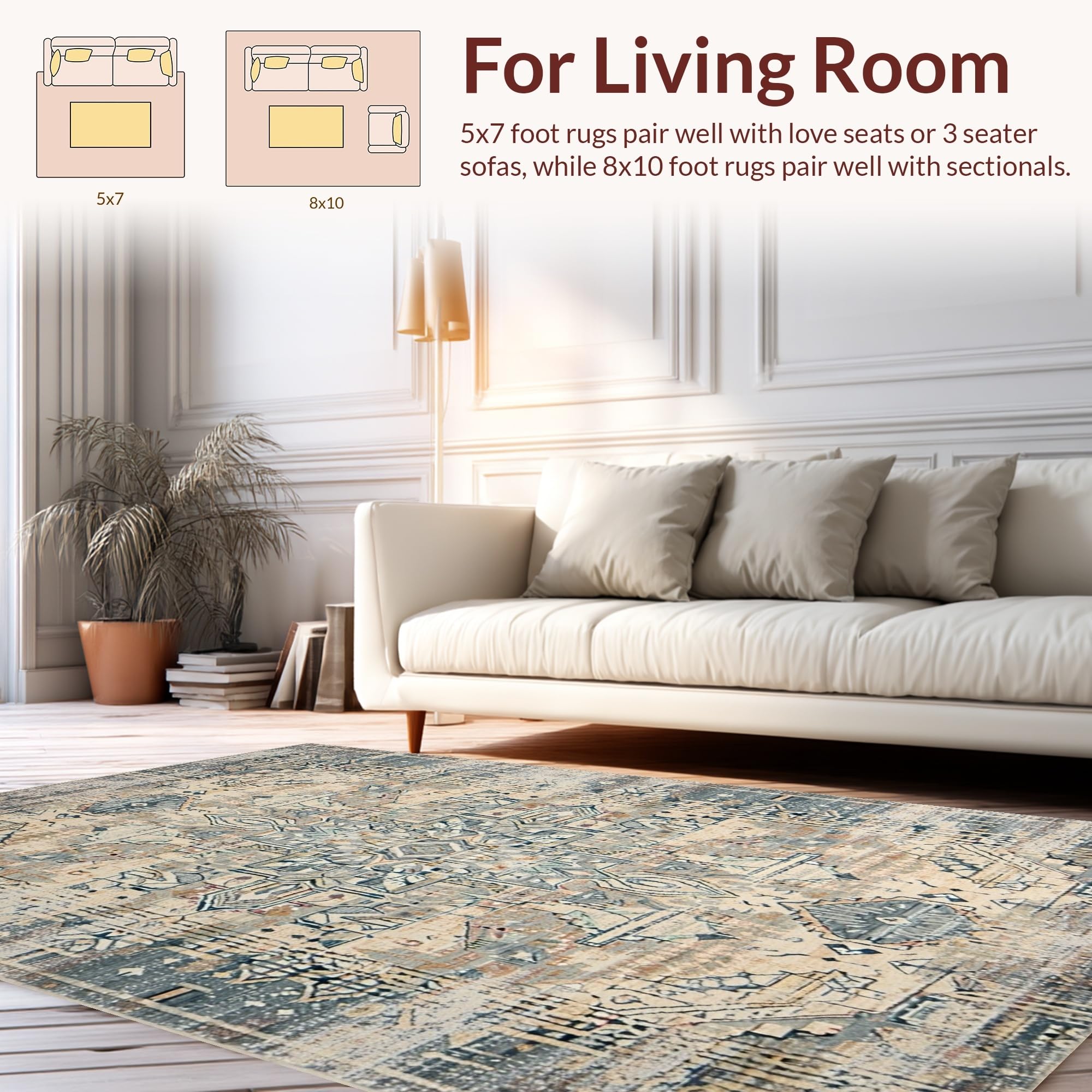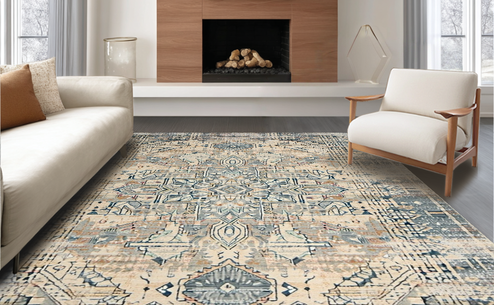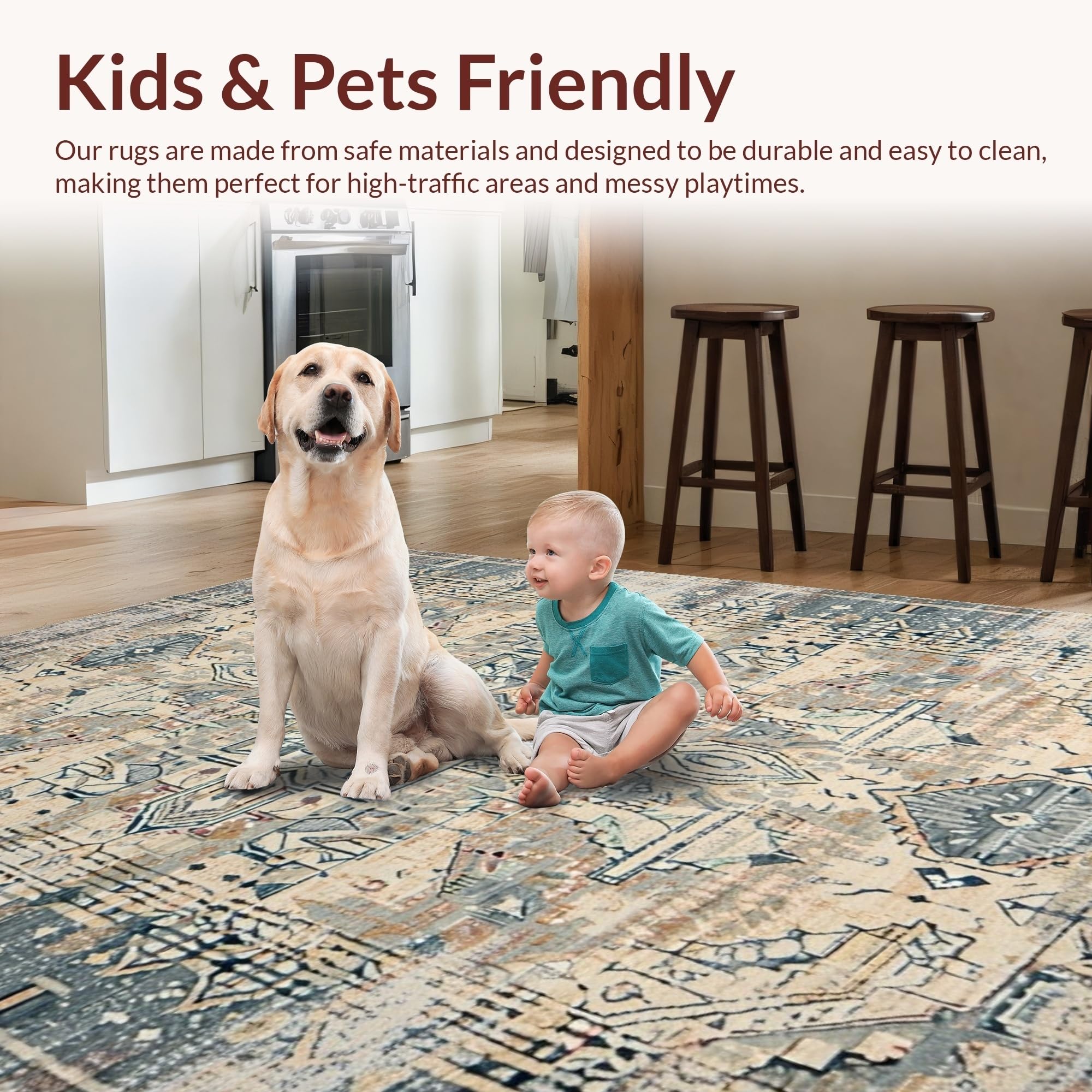 Ultra Soft Area Rug, Non Slip, Stain Resistant, Washable Area Rugs for Living Room, Bedroom, Vintage Neutral Textured Charm(Gray) Overview: