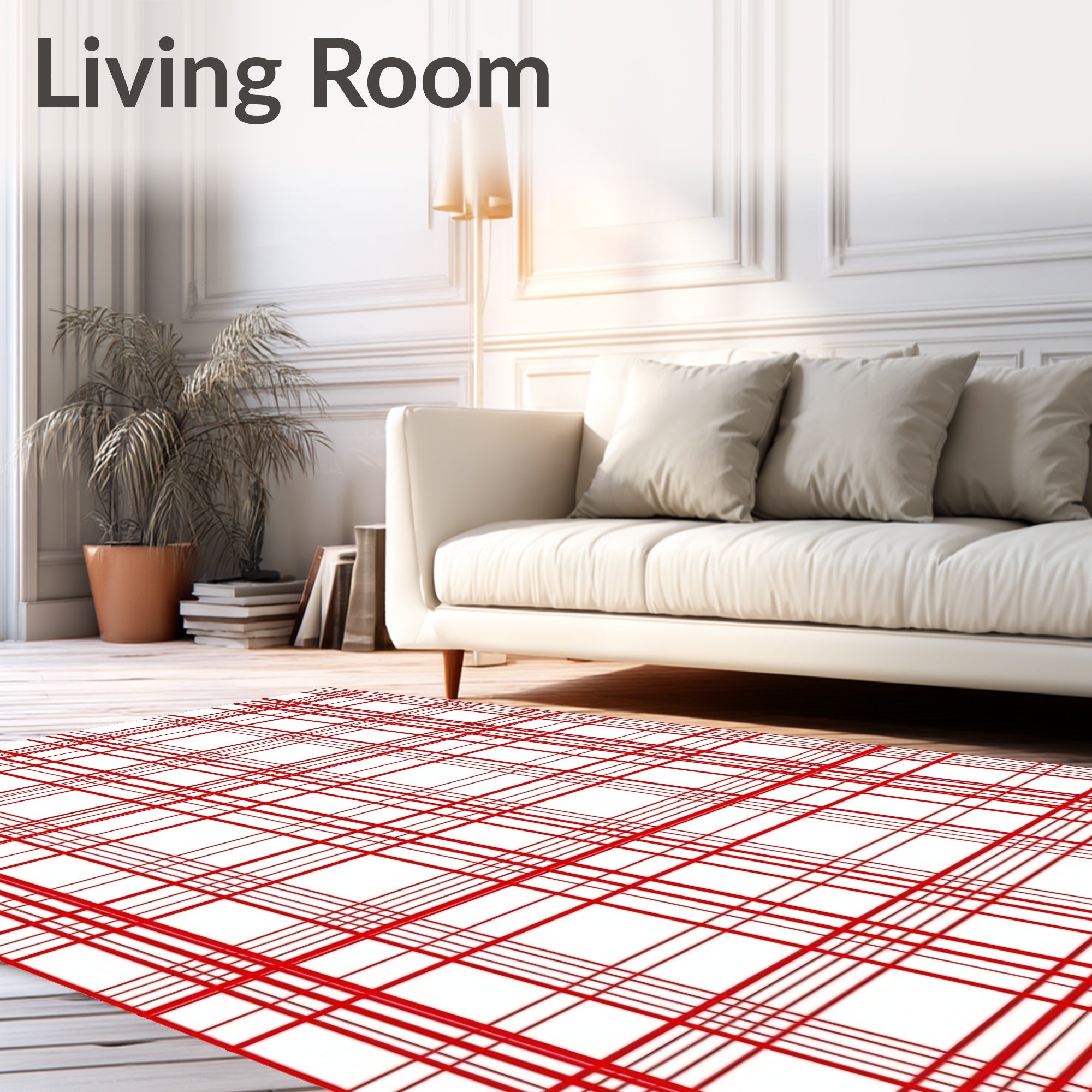Ultra Soft Area Rug, Non Slip, Stain Resistant, Washable Area Rugs for Living Room, Bedroom, Vintage Picnic Plaid Arrangement with Retro Holiday Flair(Red) Overview: