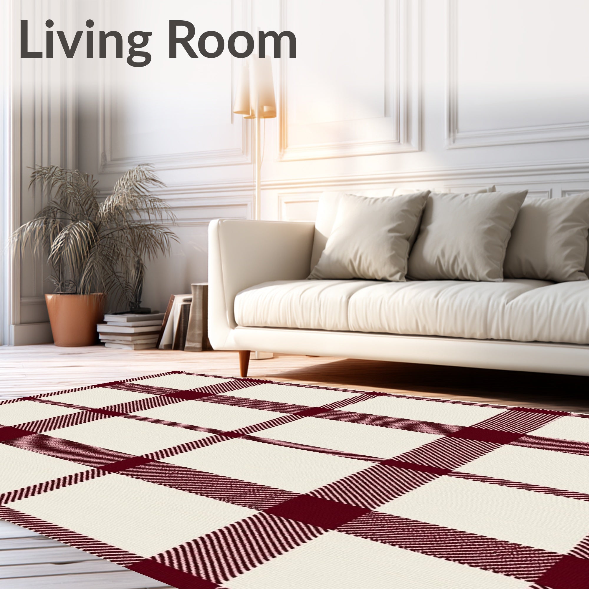 Ultra Soft Area Rug, Non Slip, Stain Resistant, Washable Area Rugs for Living Room, Bedroom, Vintage Plaid Entrance with Rustic Cabin Style Checkered Motifs(Beige) Overview: