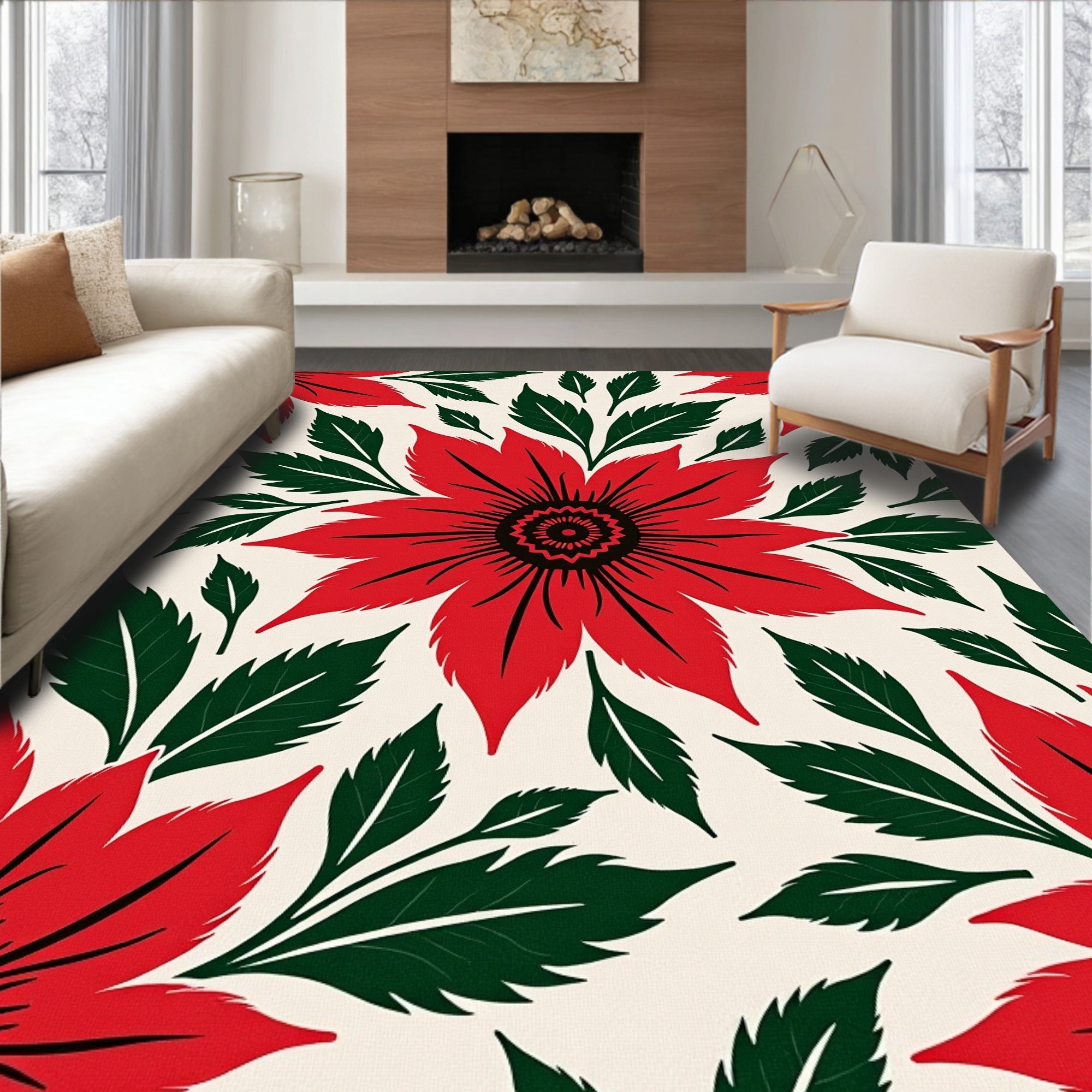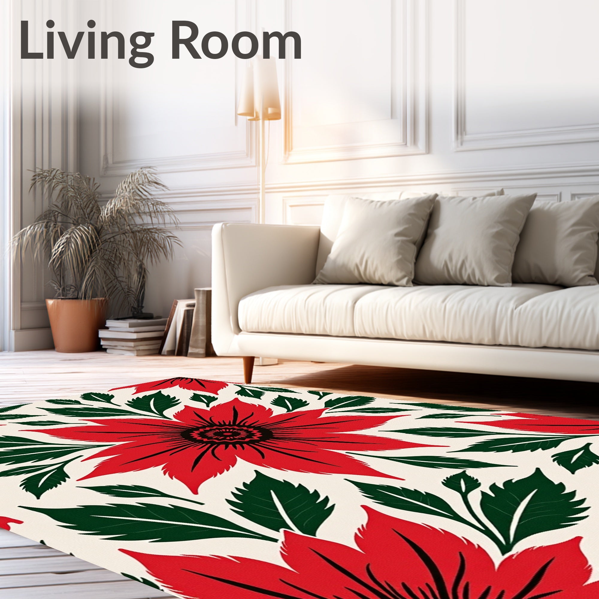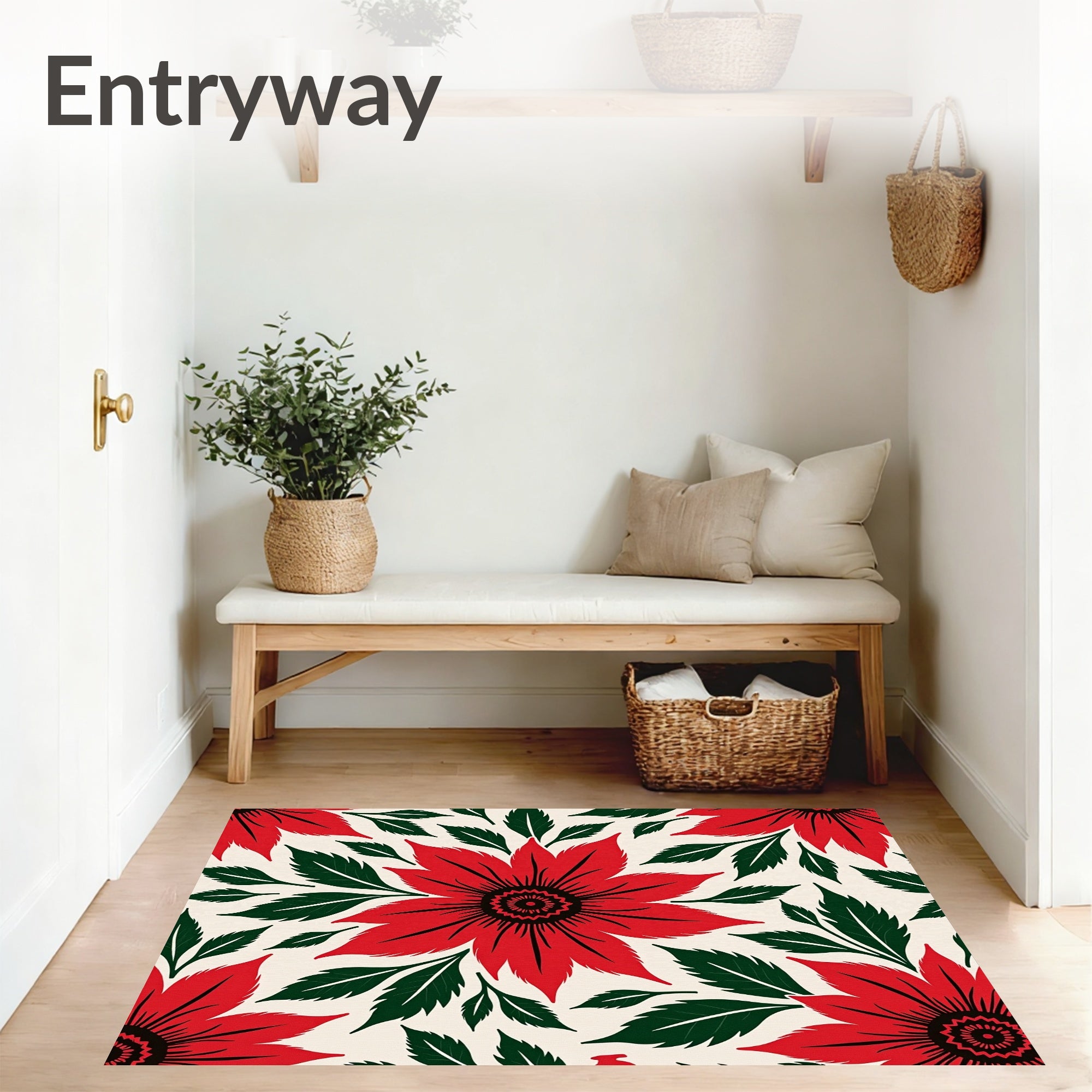 Ultra Soft Area Rug, Non Slip, Stain Resistant, Washable Area Rugs for Living Room, Bedroom, Vintage Poinsettia Bloom Entrance Covering(Red) Overview: