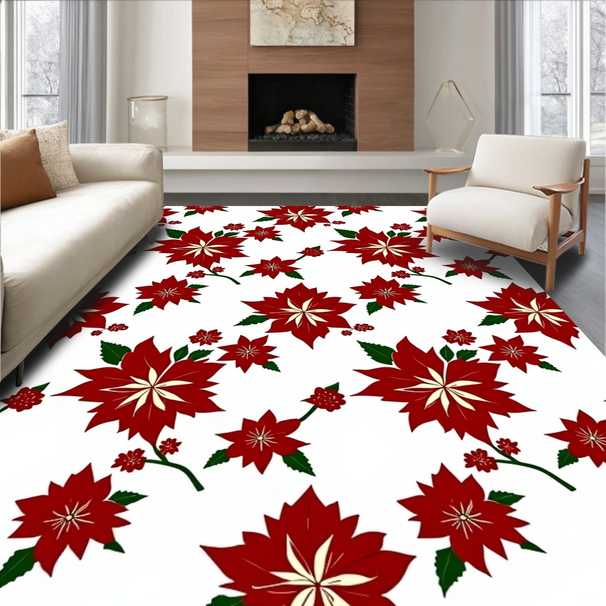 Ultra Soft Area Rug, Non Slip, Stain Resistant, Washable Area Rugs for Living Room, Bedroom, Vintage Poinsettia Bloom with Classic Yuletide Artistry(Red) Overview: