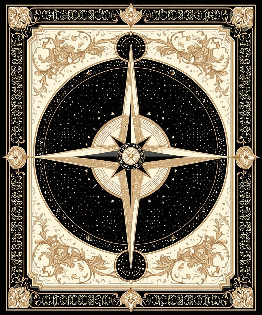 Vintage Prairie Compass Featuring Elegant Beige and Onyx Design(Black)