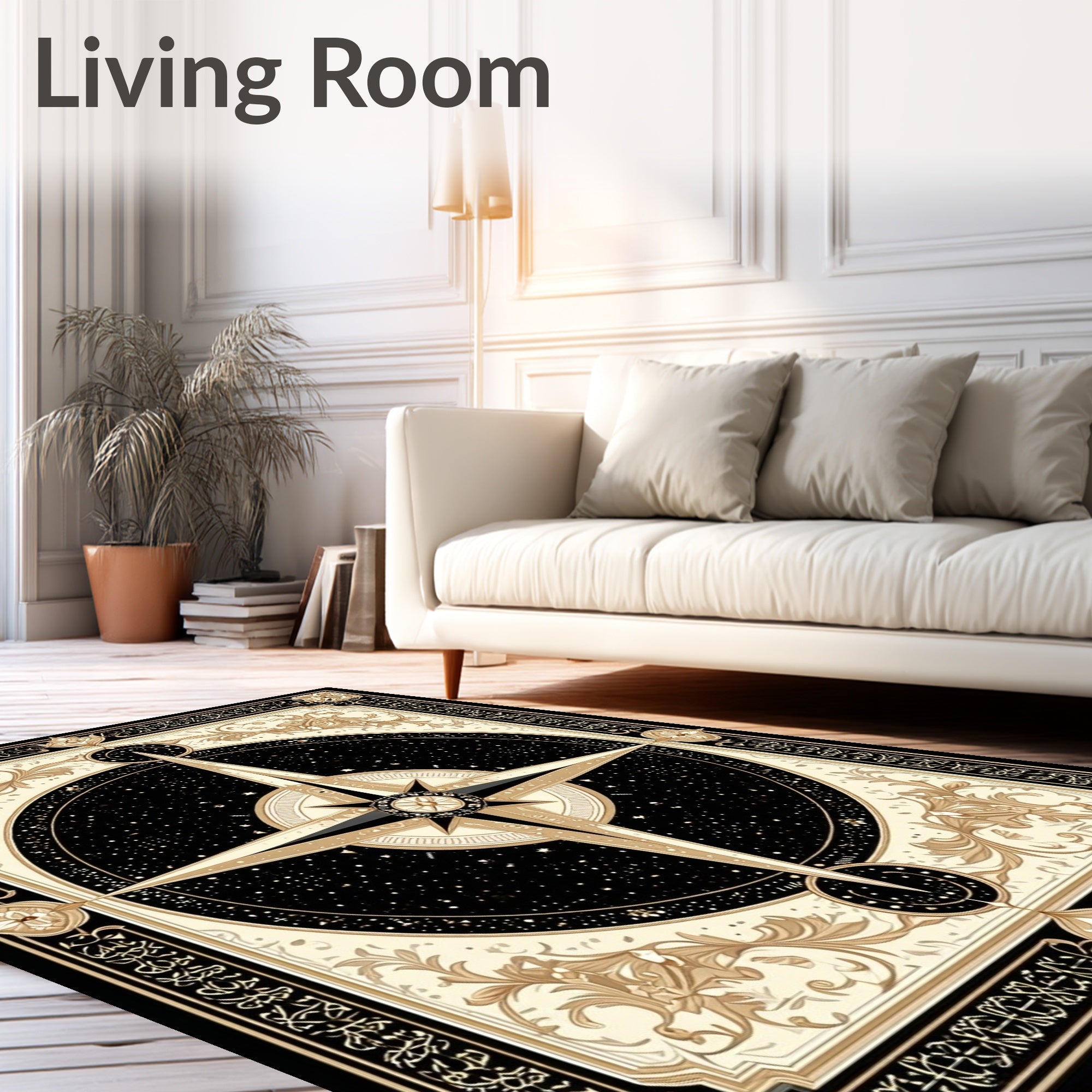 Flatwoven High Traffic Area Rug, Vintage Prairie Compass Featuring Elegant Beige and Onyx Design, Non Slip, Stain Resistant, Washable Area Rugs for Living Room, Bedroom (Black) Overview: