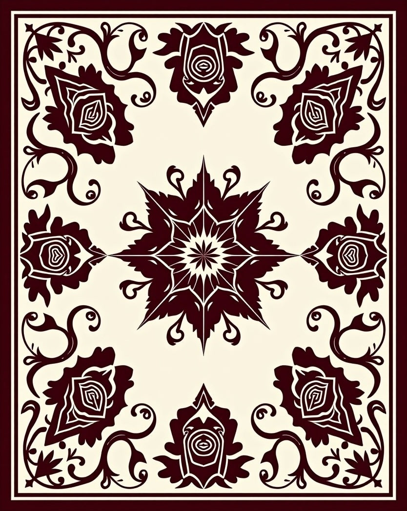 Vintage Rose Garden Medallion with Swirling Botanical Flourishes(Maroon)