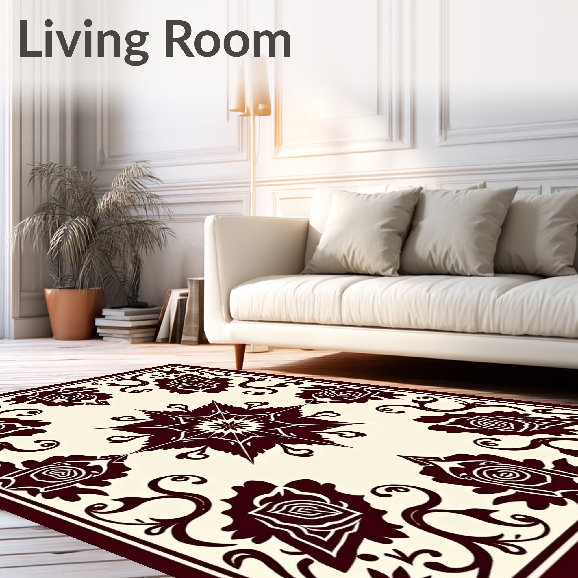 Ultra Soft Area Rug, Non Slip, Stain Resistant, Washable Area Rugs for Living Room, Bedroom, Vintage Rose Garden Medallion with Swirling Botanical Flourishes(Maroon) Overview: