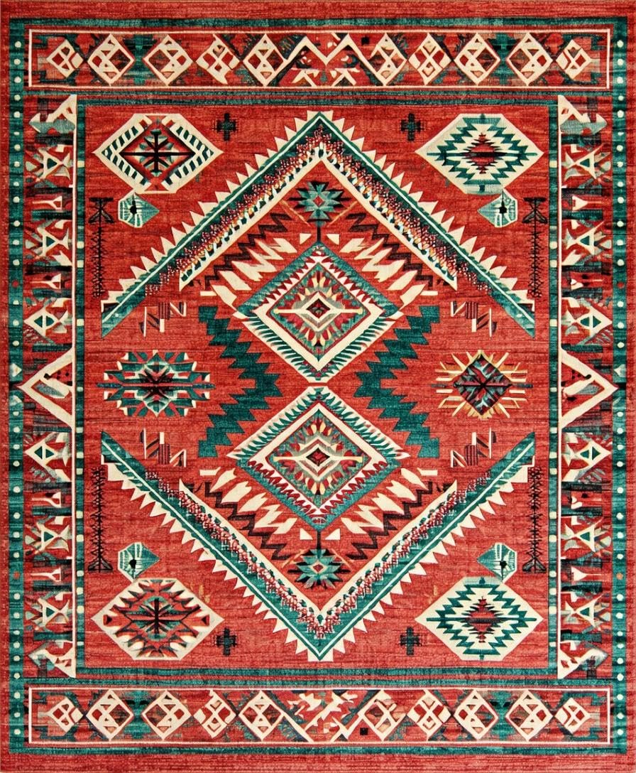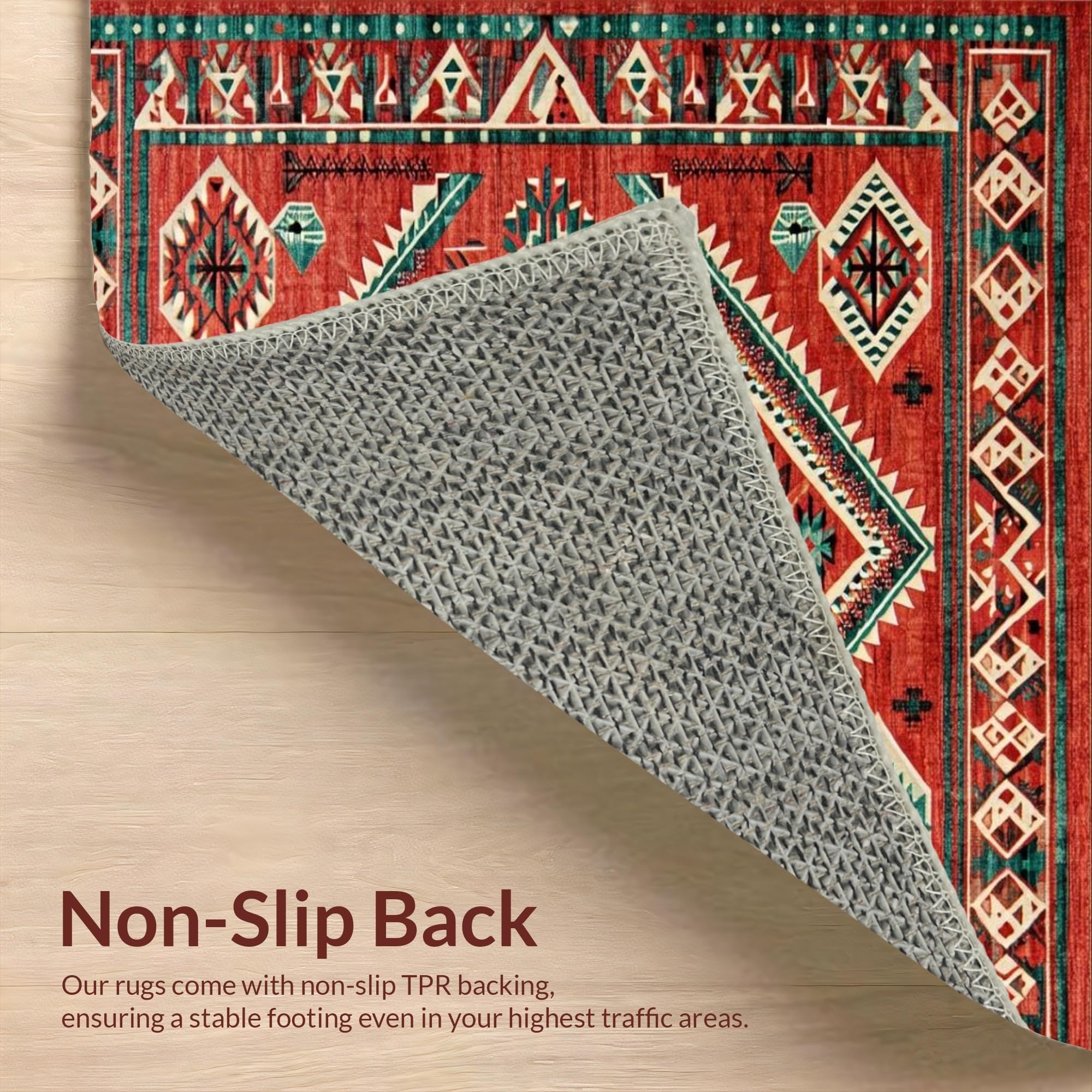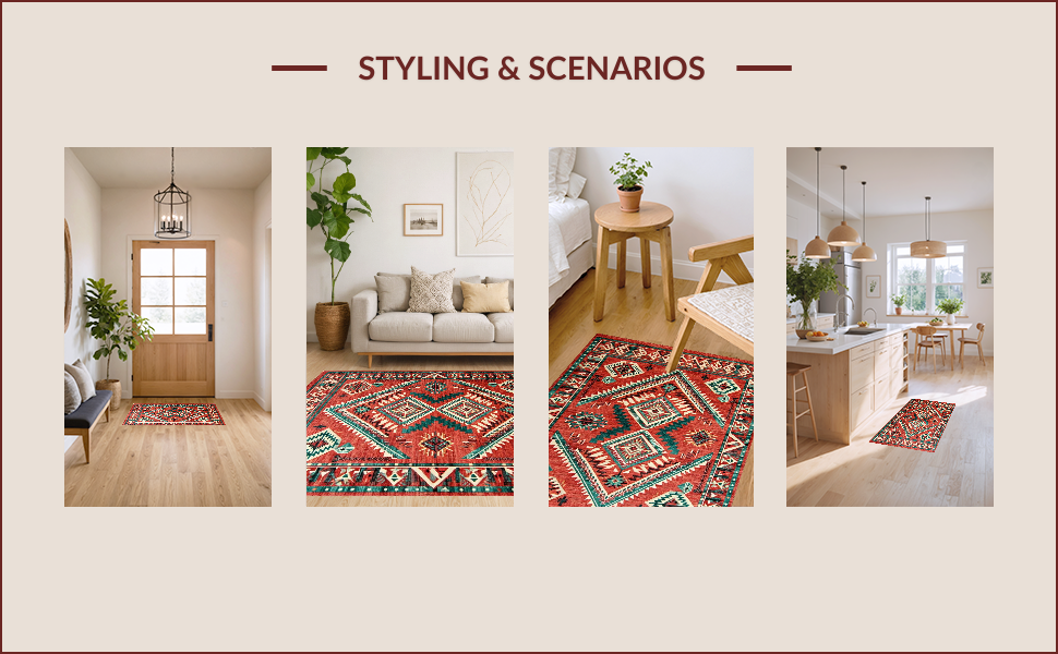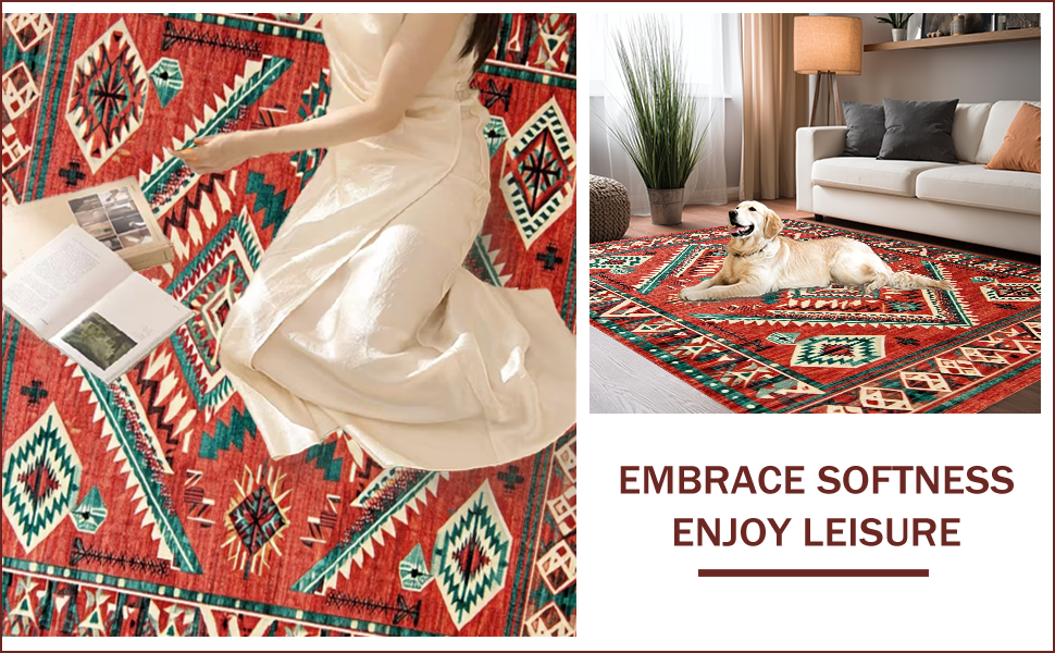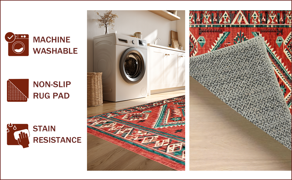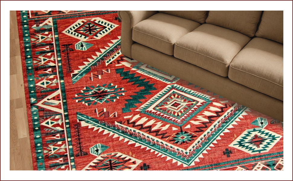 Ultra Soft Area Rug, Non Slip, Stain Resistant, Washable Area Rugs for Living Room, Bedroom, Vintage Rustic Southwestern Flair(Red) Overview: