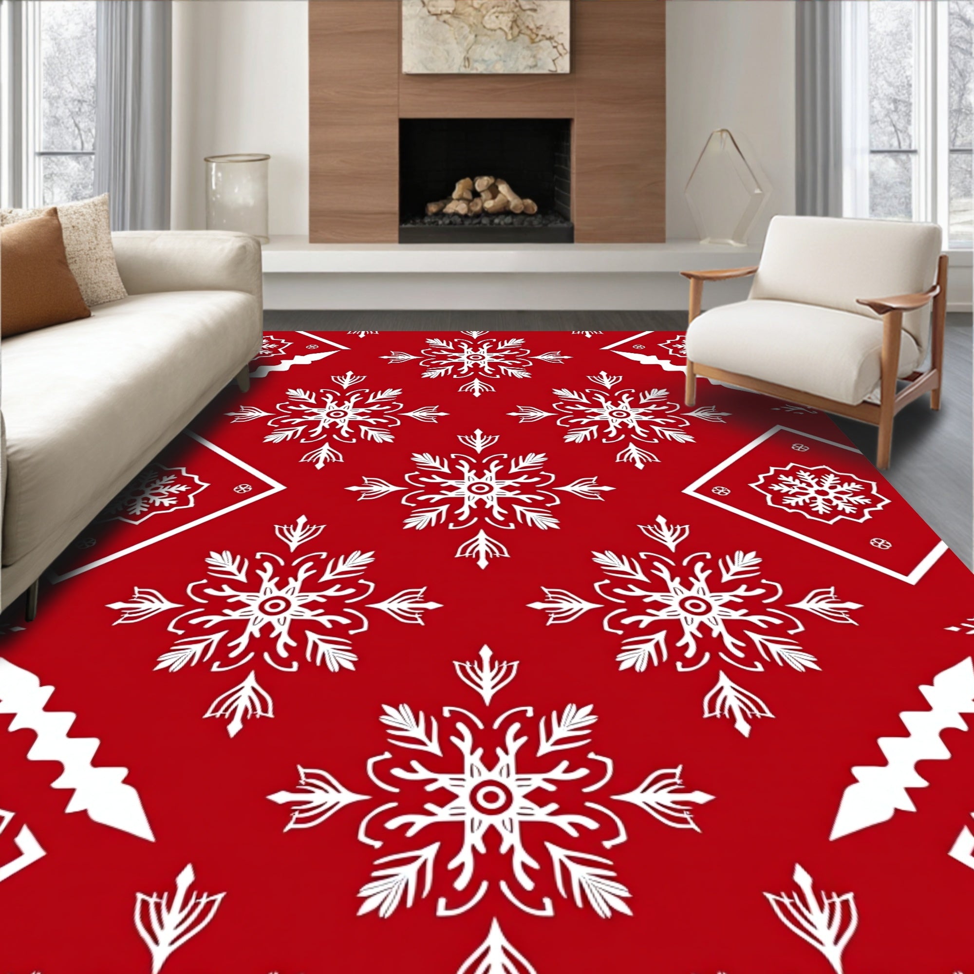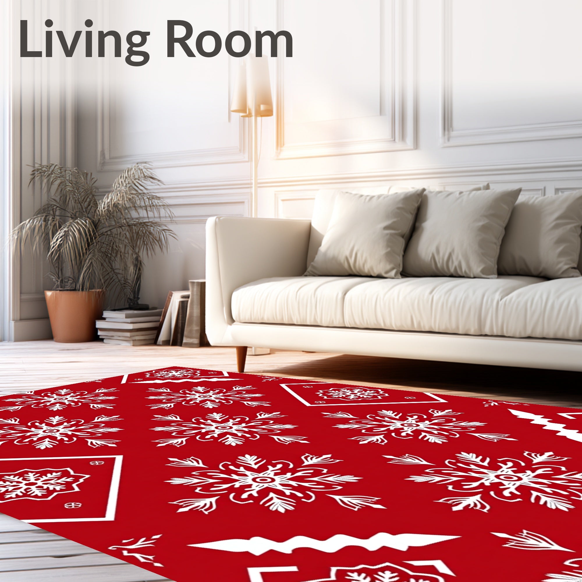 Ultra Soft Area Rug, Non Slip, Stain Resistant, Washable Area Rugs for Living Room, Bedroom, Vintage Snowflake Medallion with Intricate Winter Crystal Design(Red) Overview: