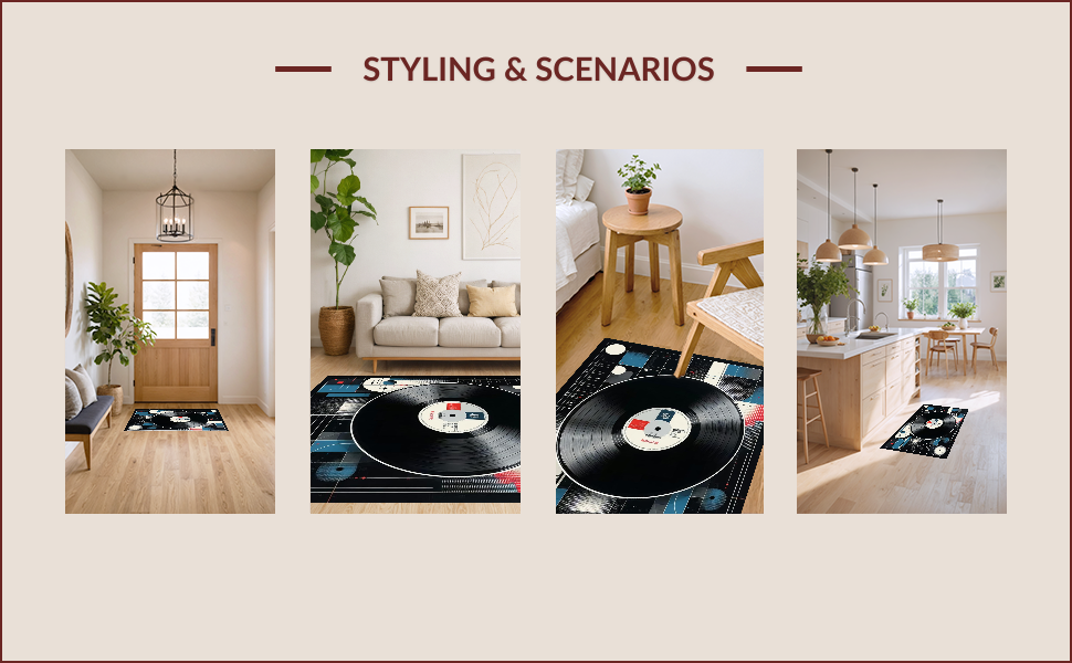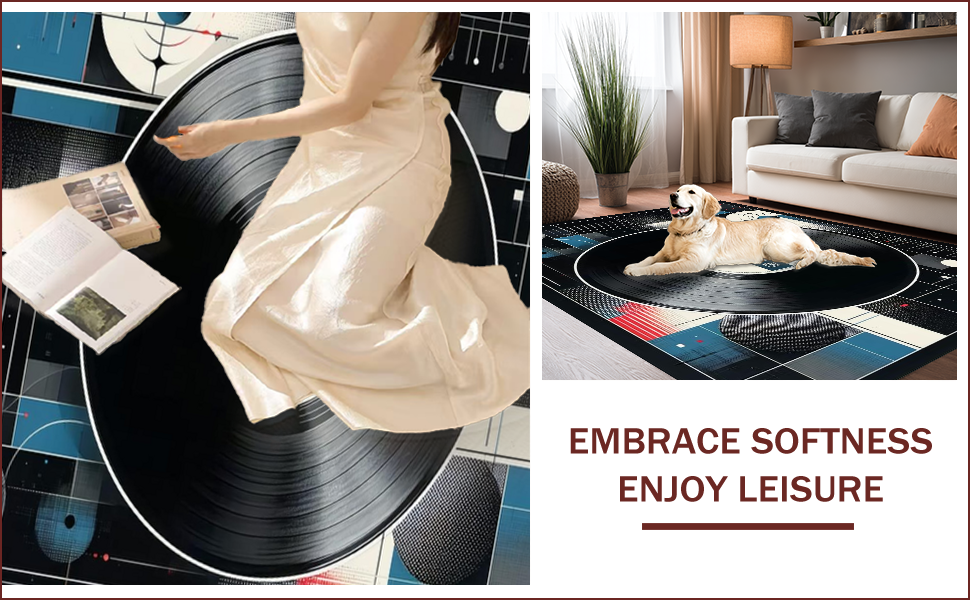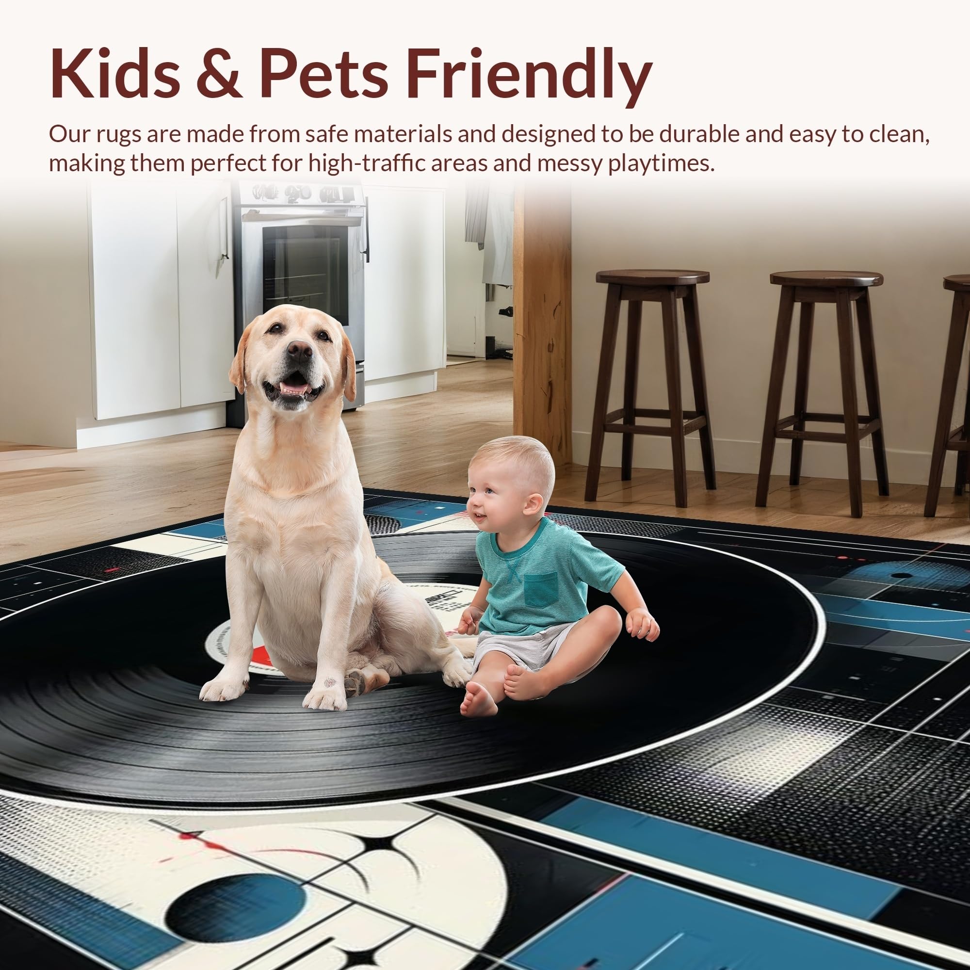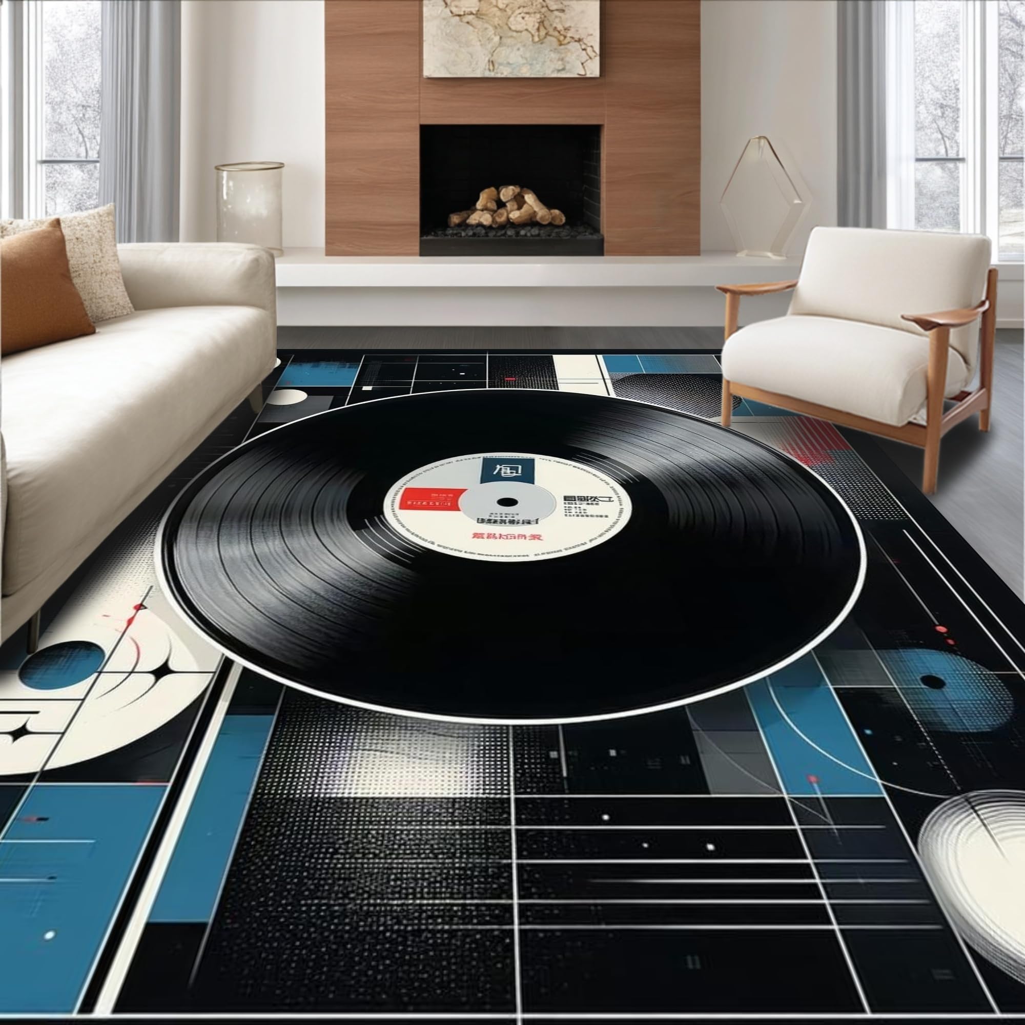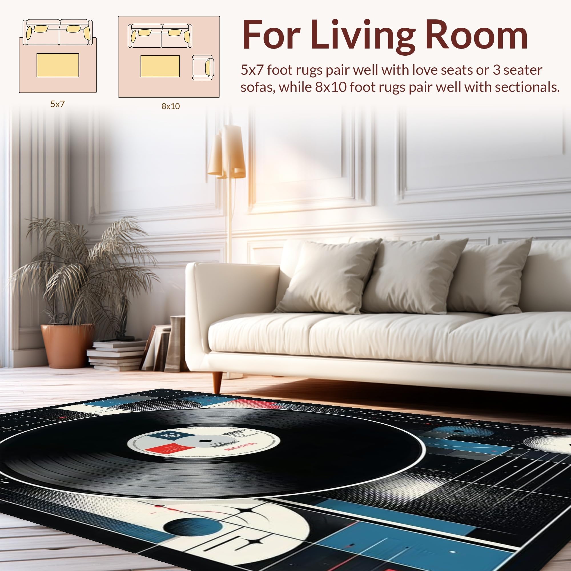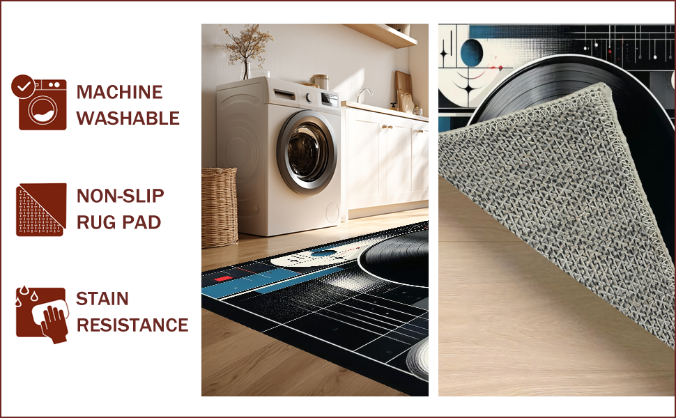 Ultra Soft Area Rug, Non Slip, Stain Resistant, Washable Area Rugs for Living Room, Bedroom, Vintage Sound Wave Imprint(Black) Overview: