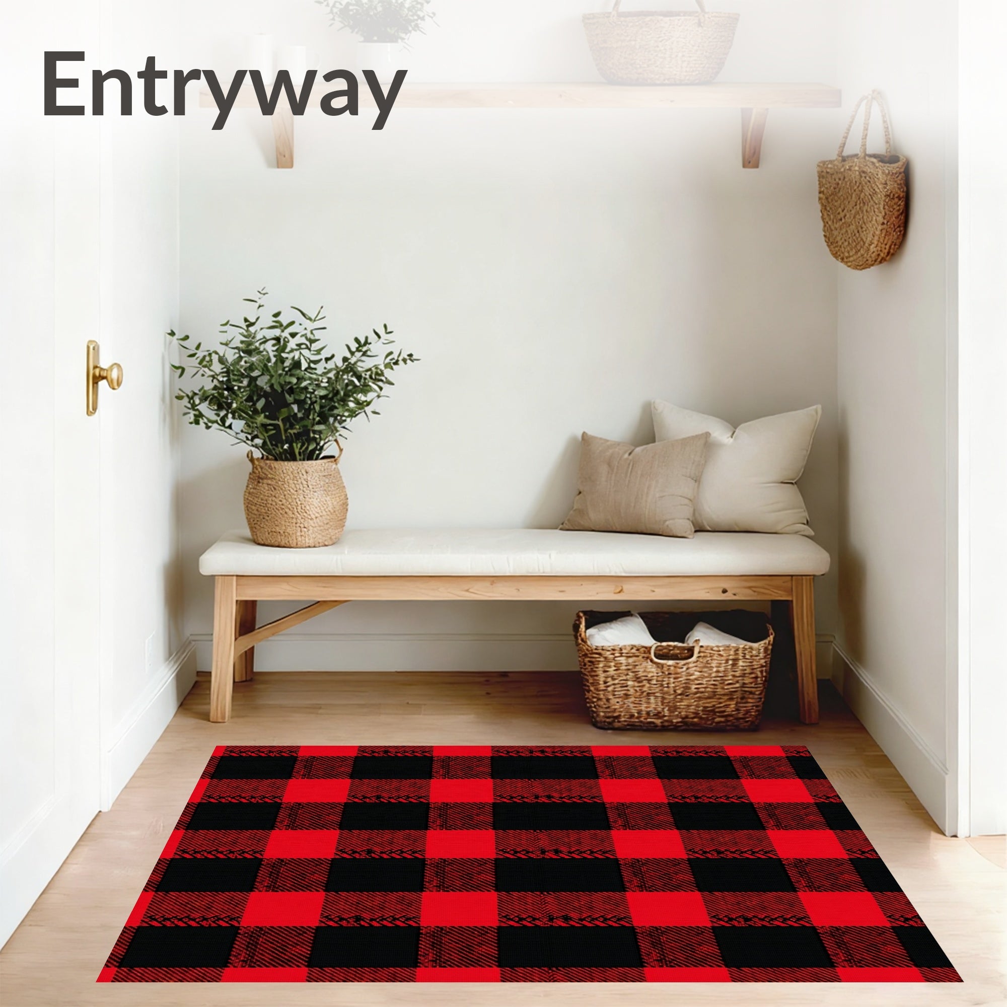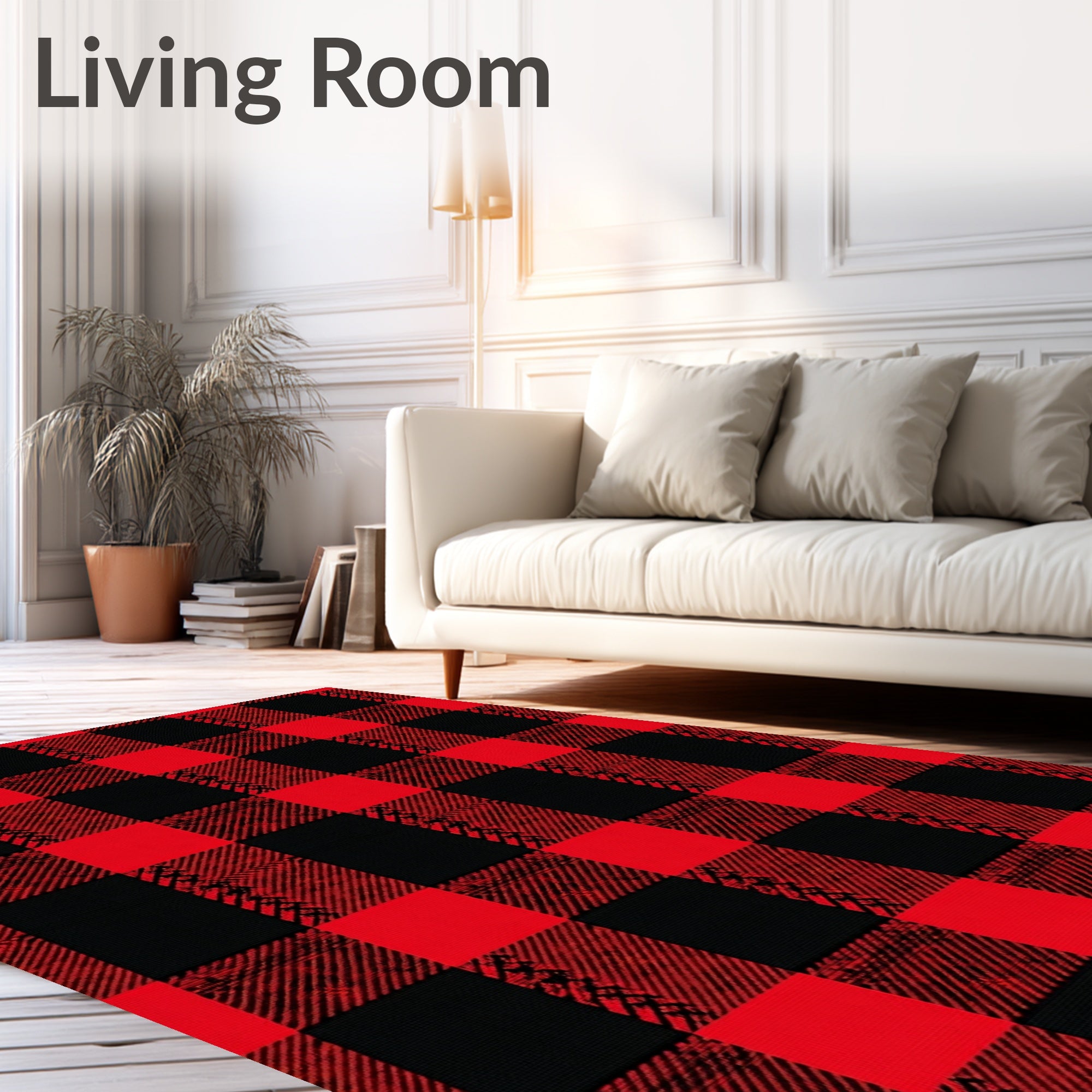 Ultra Soft Area Rug, Non Slip, Stain Resistant, Washable Area Rugs for Living Room, Bedroom, Vintage Tartan featuring Classic Crosshatch Motifs(Red) Overview: