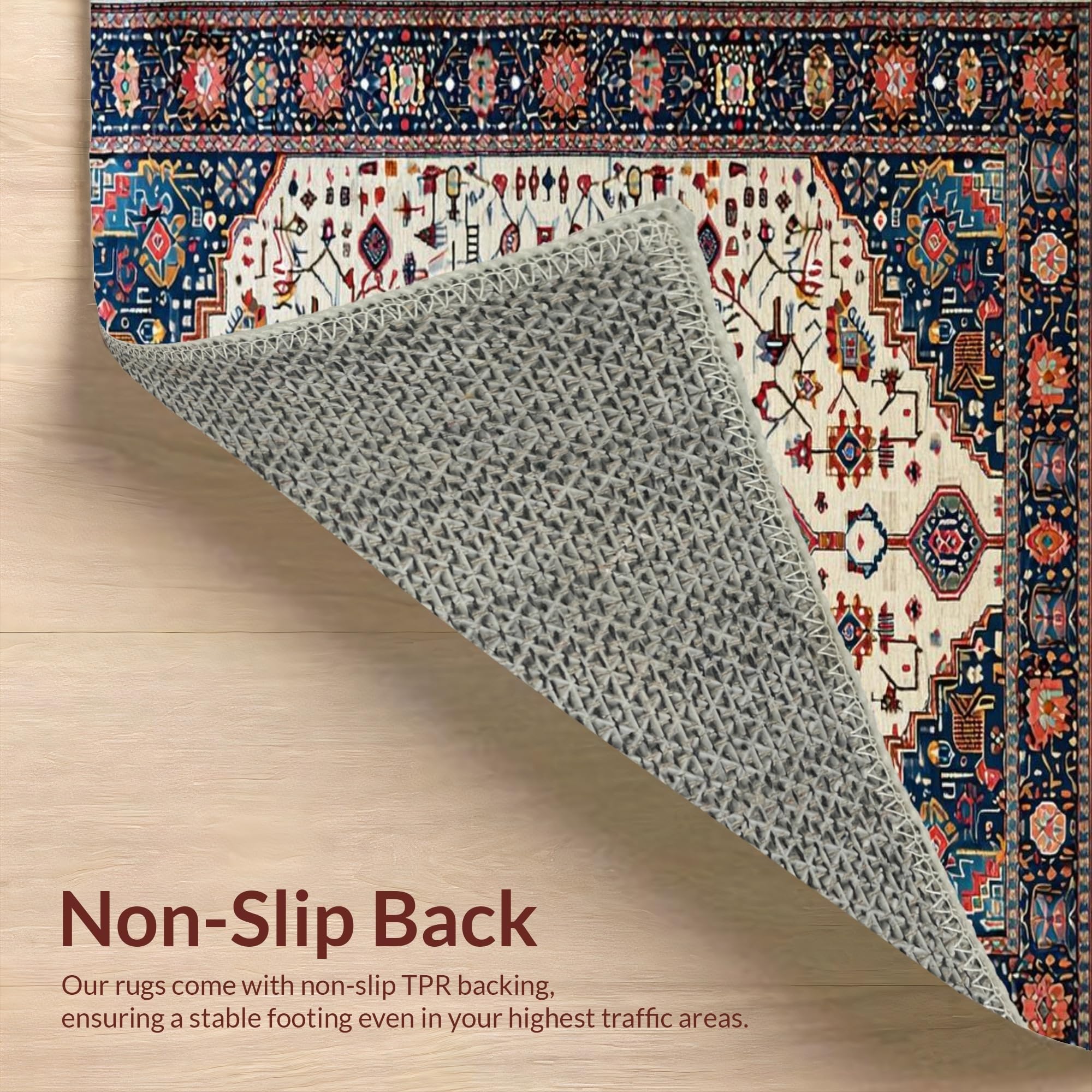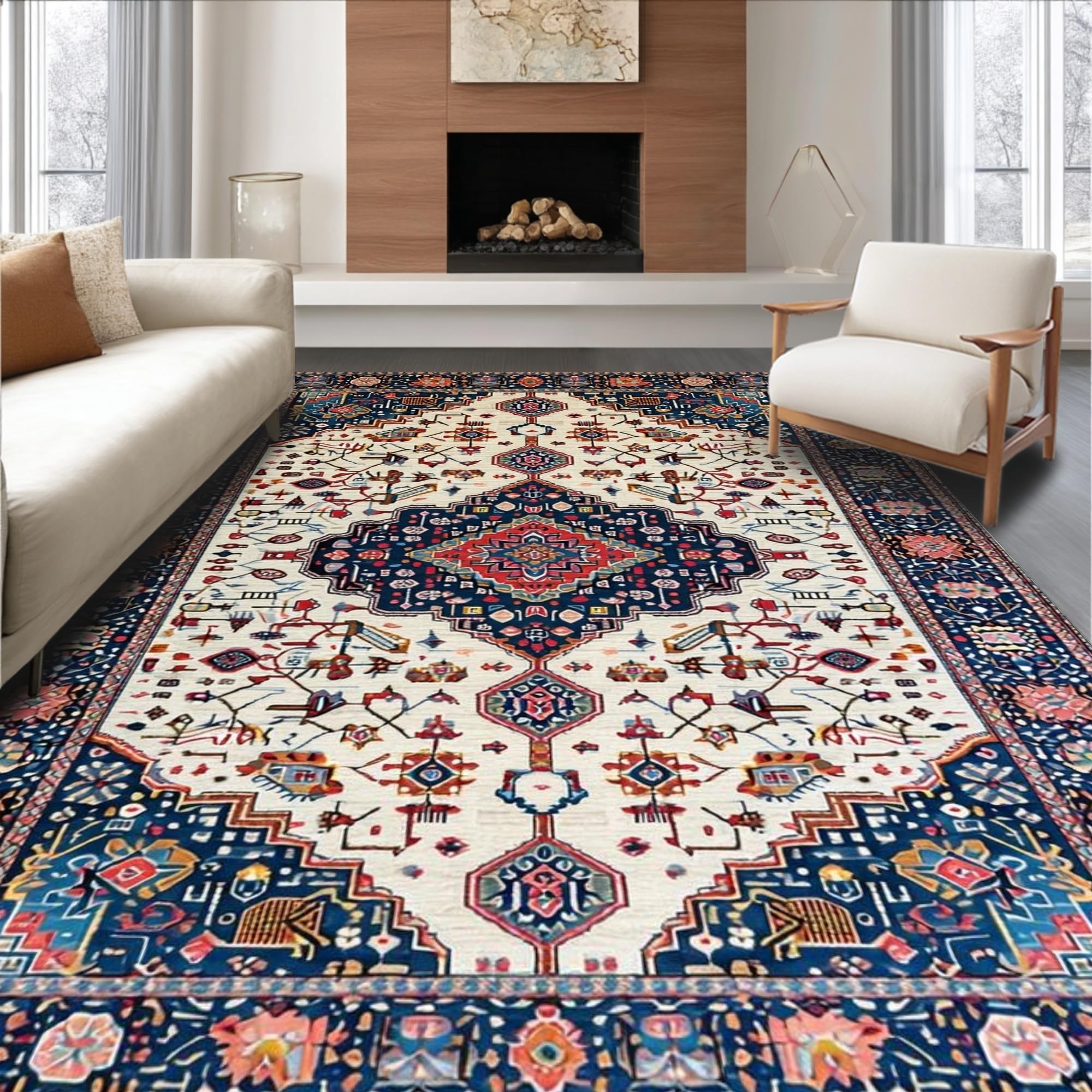 Ultra Soft Area Rug, Non Slip, Stain Resistant, Washable Area Rugs for Living Room, Bedroom, Vintage Tiled Blue Aesthetic(White) Overview:
