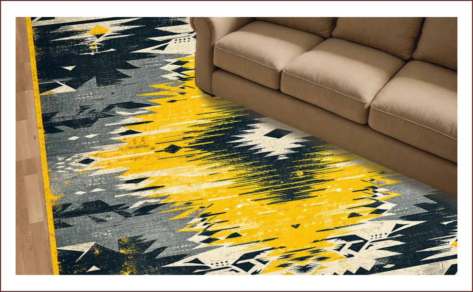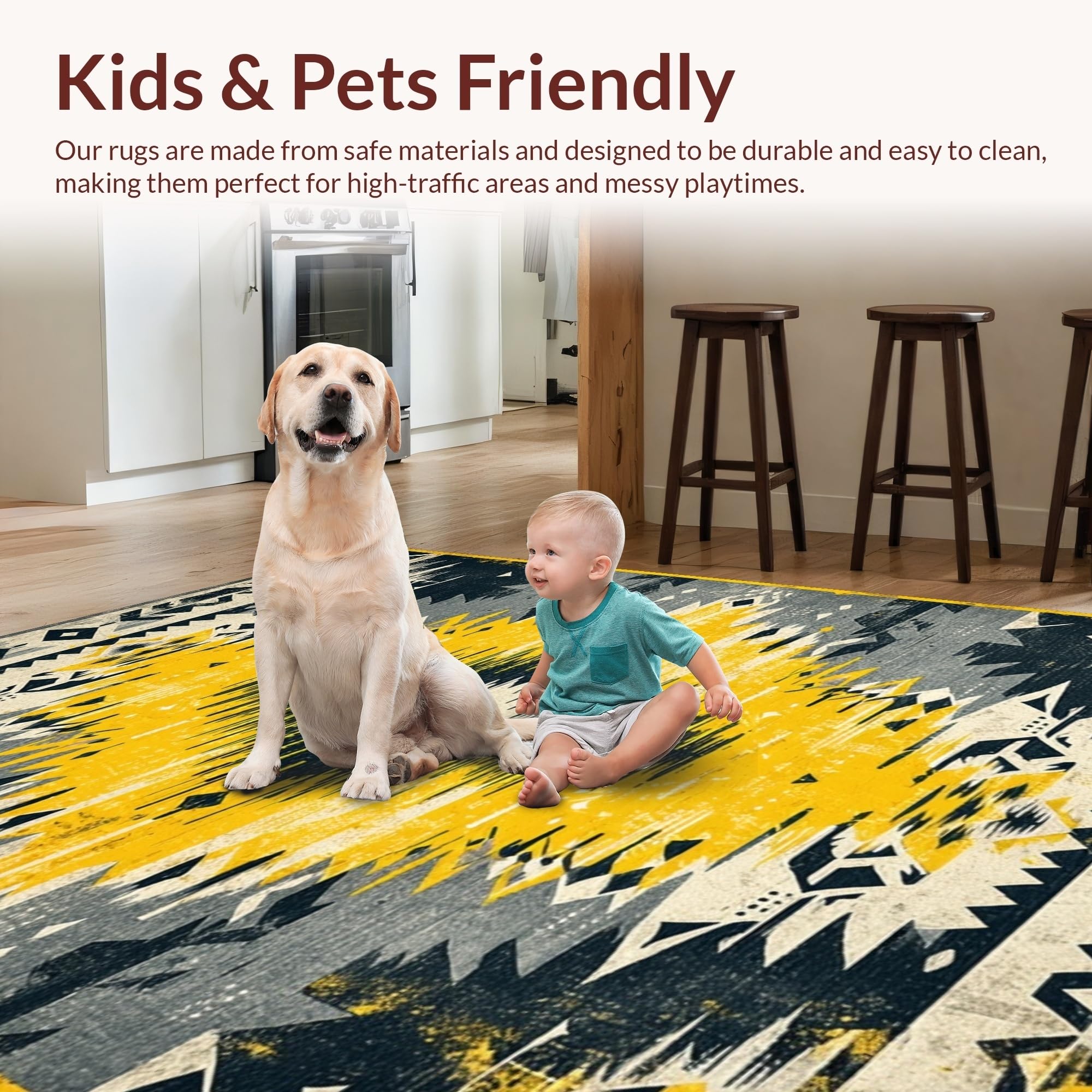 Ultra Soft Area Rug, Non Slip, Stain Resistant, Washable Area Rugs for Living Room, Bedroom, Vintage Tribal Grey and Yellow Living Room Rug(Black) Overview: