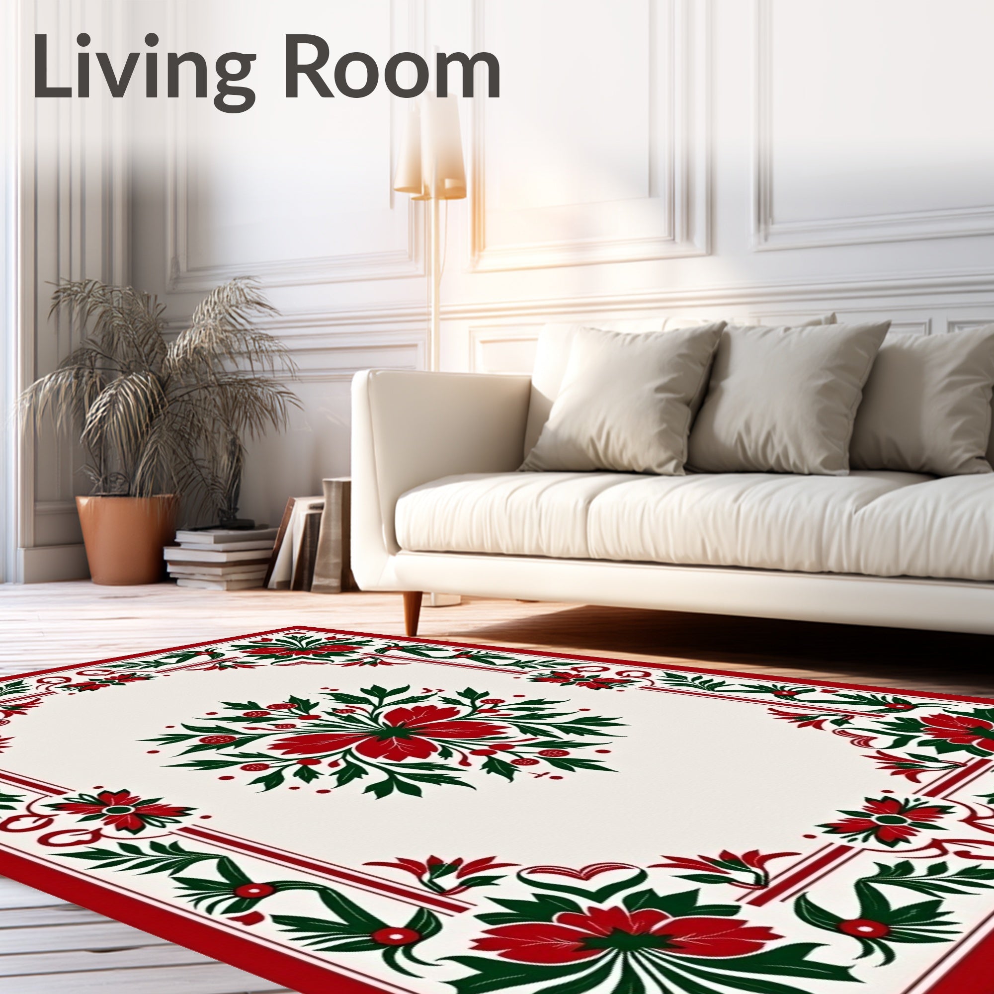 Ultra Soft Area Rug, Non Slip, Stain Resistant, Washable Area Rugs for Living Room, Bedroom, Vintage Yuletide Botanical(Red) Overview: