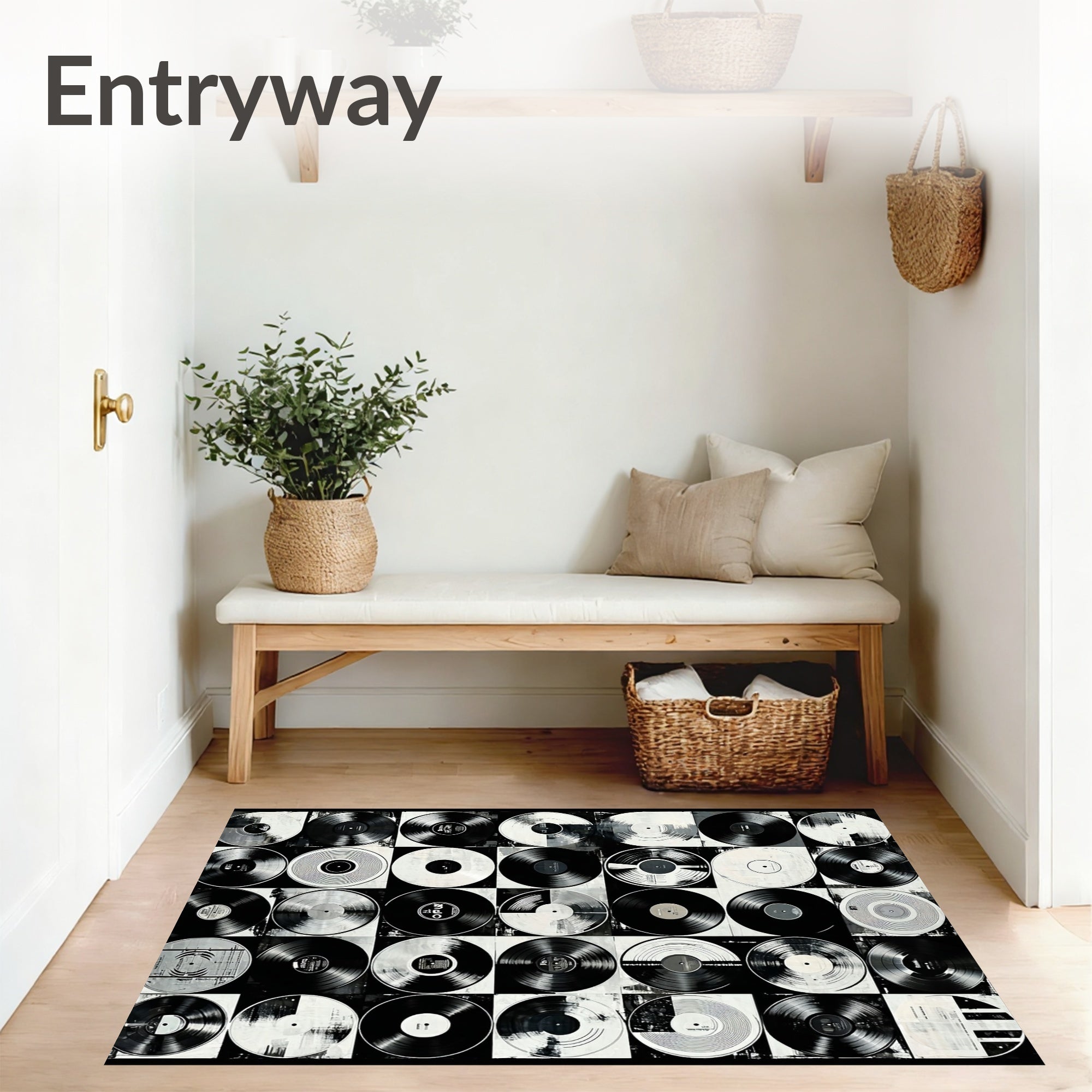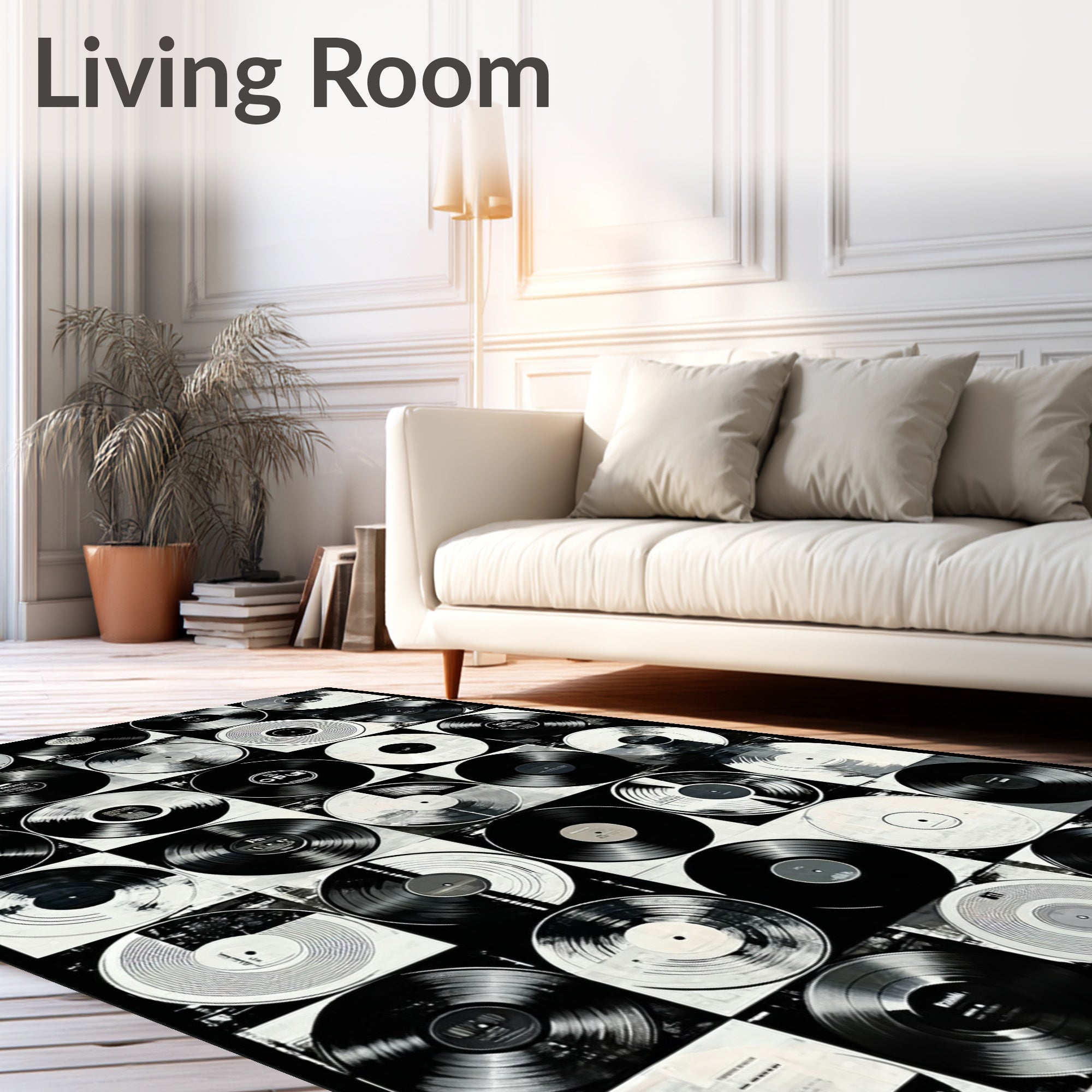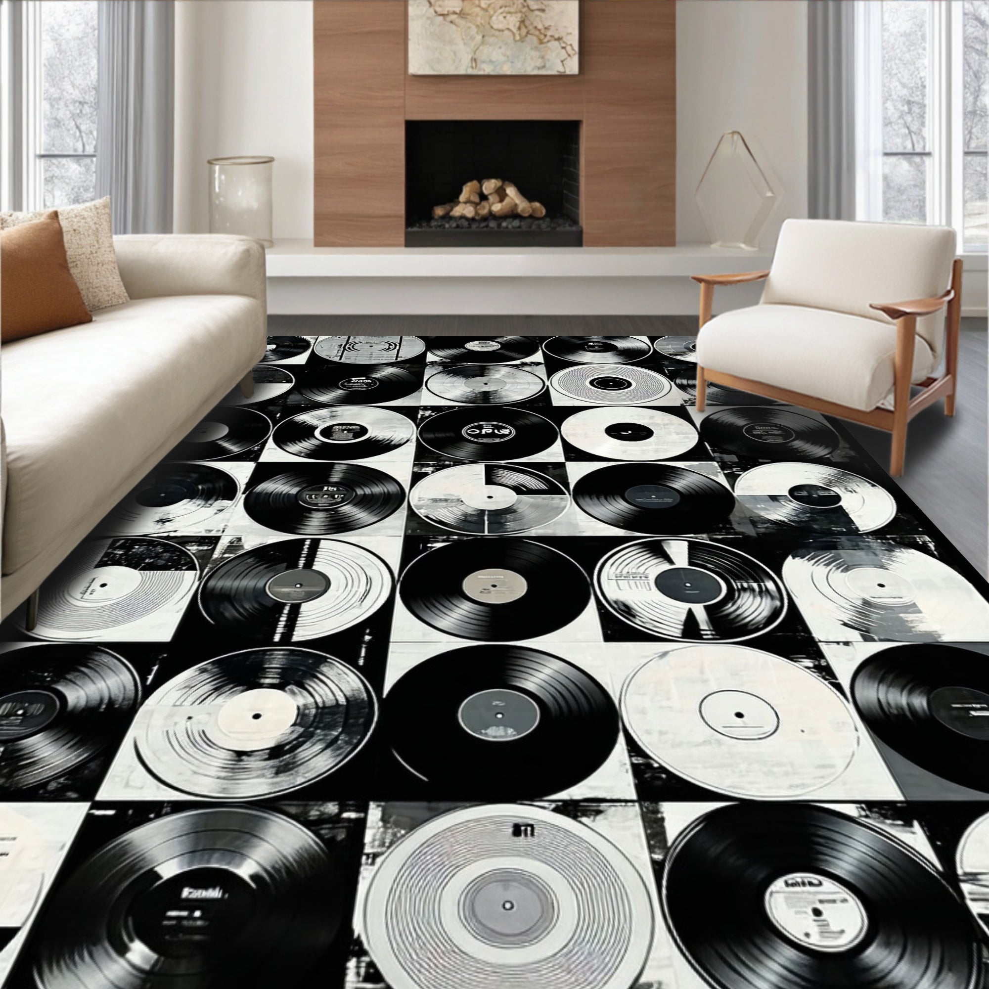 Flatwoven High Traffic Area Rug, Vinyl Record Inspired With Classic Rock Band Graphics, Non Slip, Stain Resistant, Washable Area Rugs for Living Room, Bedroom (Black) Overview: