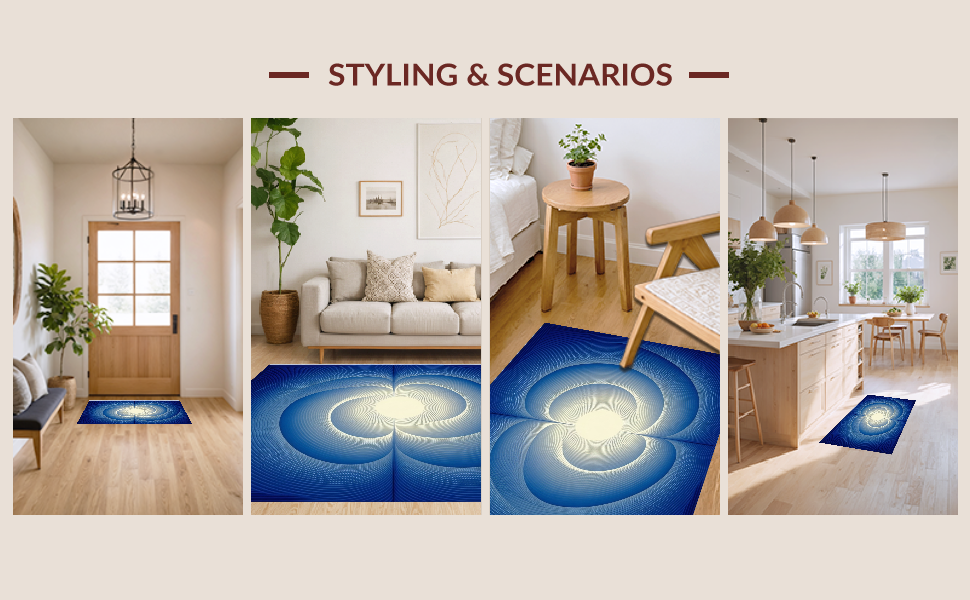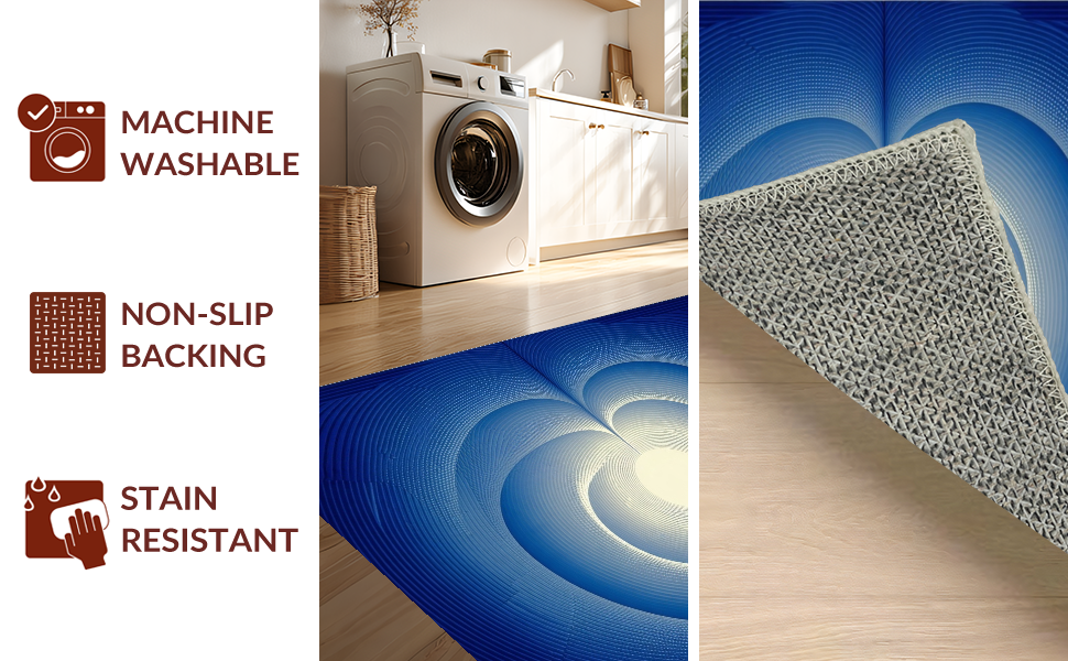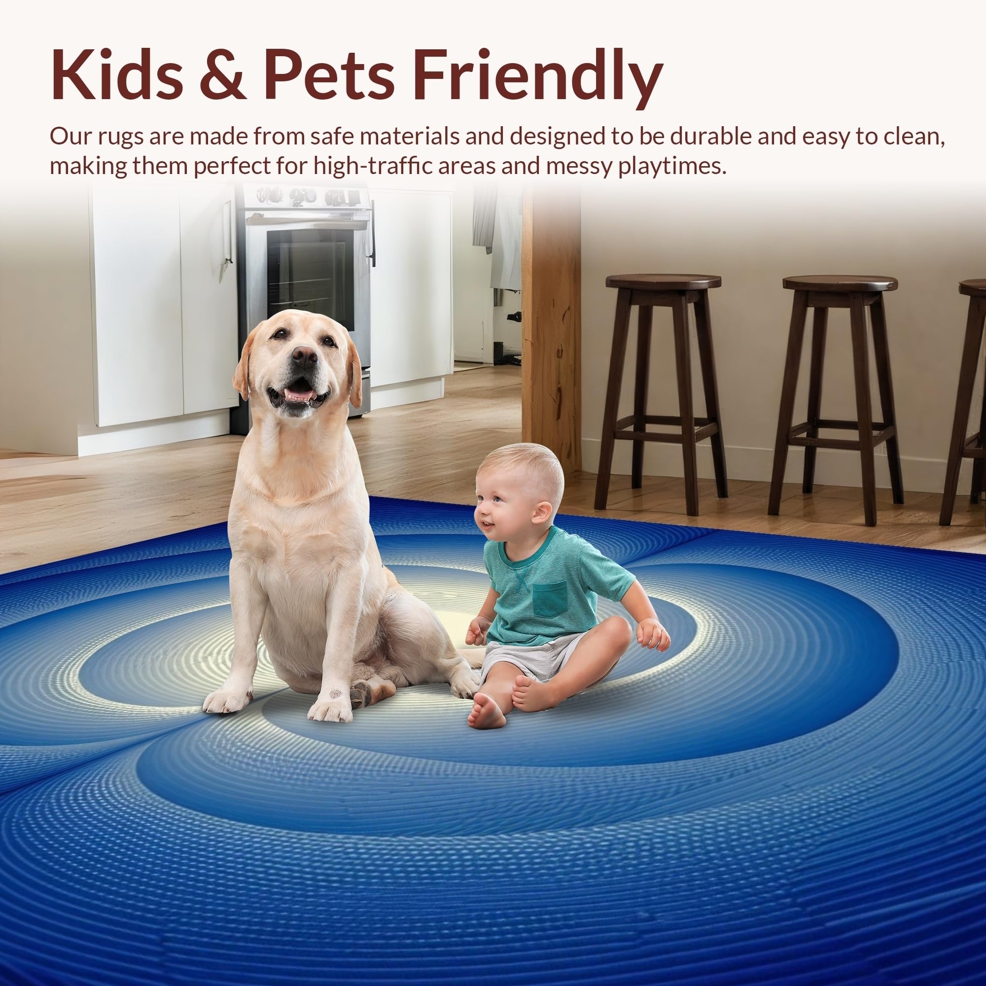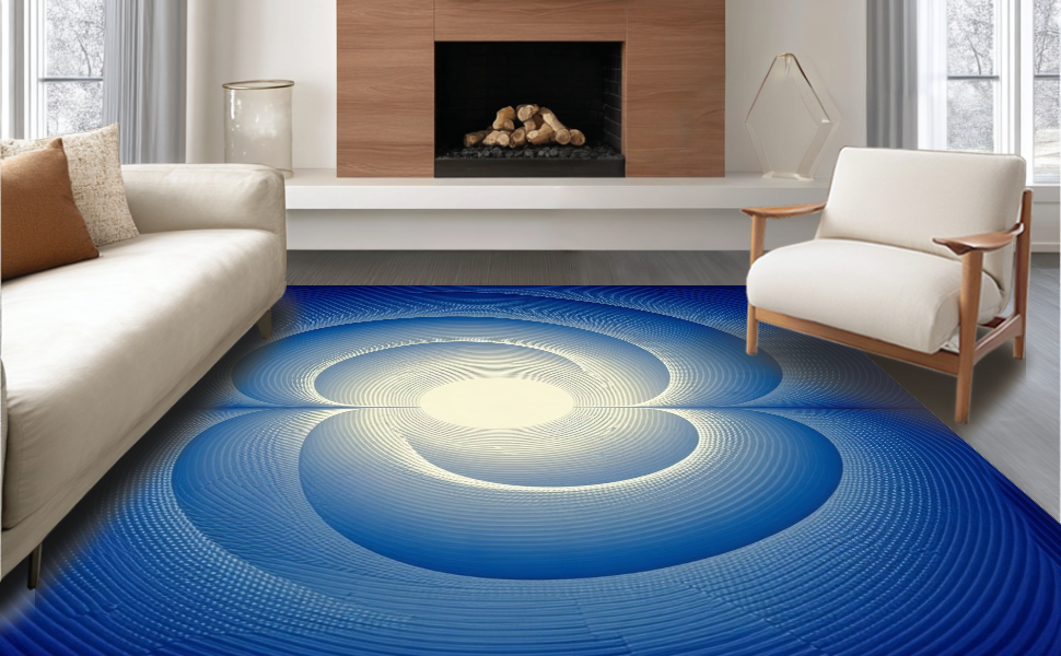 Ultra Soft Area Rug, Non Slip, Stain Resistant, Washable Area Rugs for Living Room, Bedroom, Vivid Abstract Spiral Aesthetic(Blue) Overview: