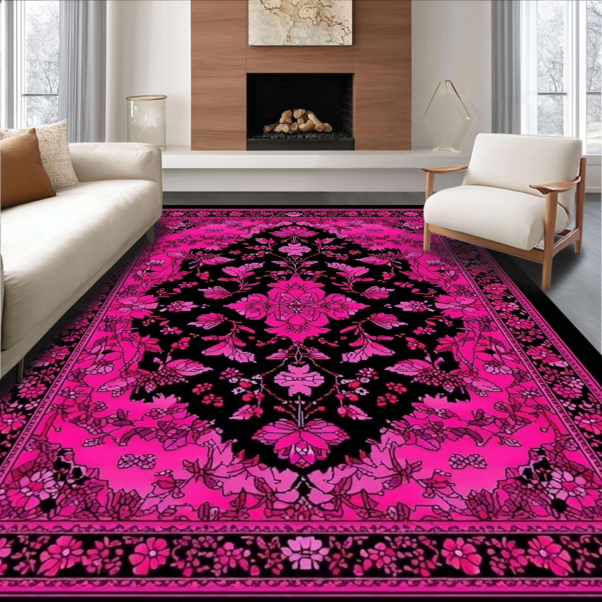 Ultra Soft Area Rug, Non Slip, Stain Resistant, Washable Area Rugs for Living Room, Bedroom, Vivid Bow Aesthetic Delight(Pink) Overview: