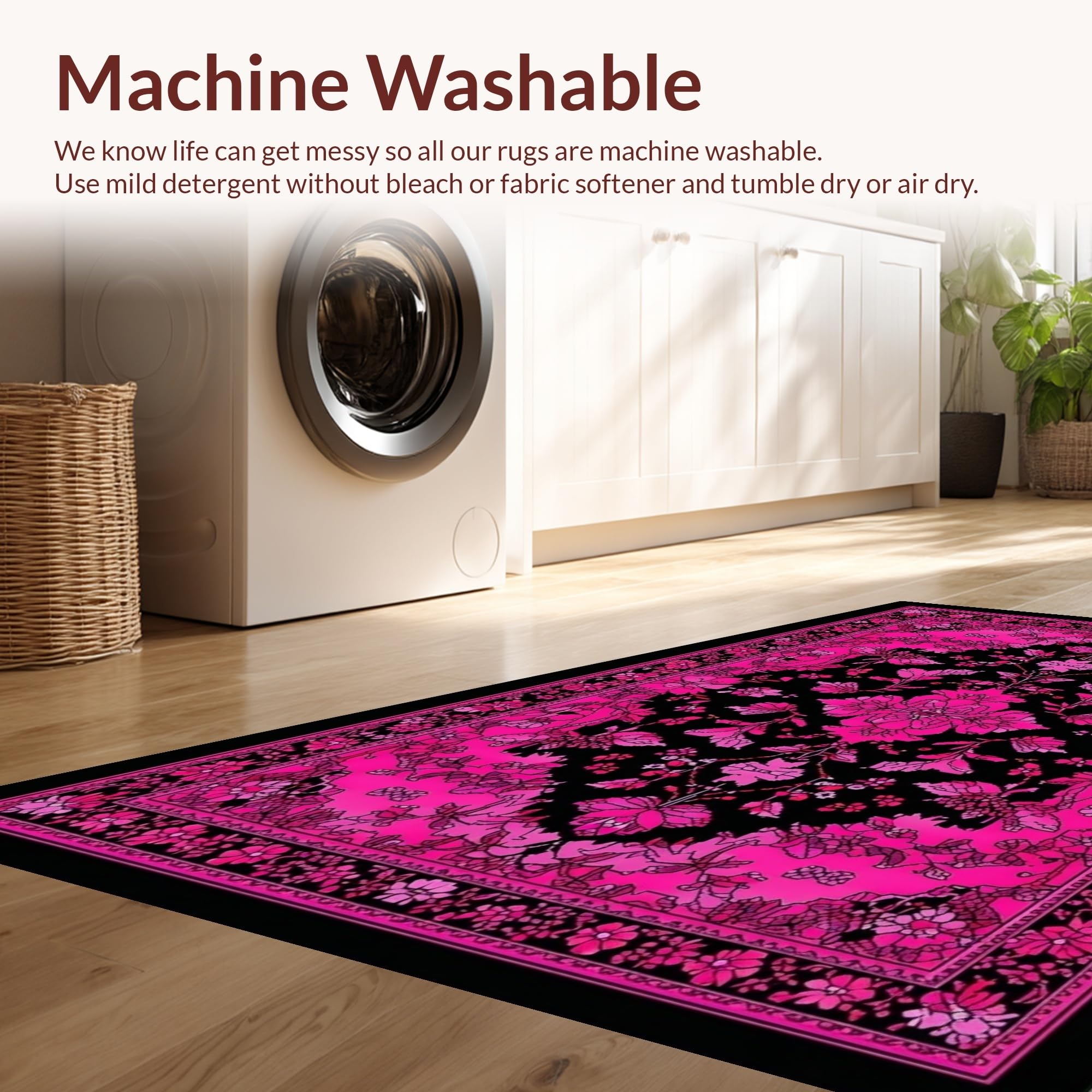 - Machine Washable: Our rugs can be easily thrown in the wash machine.
