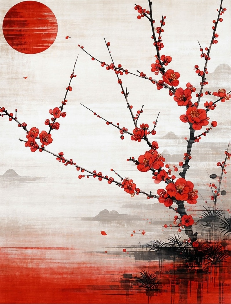 Vivid Cherry Blossom Abstract Art(Red)