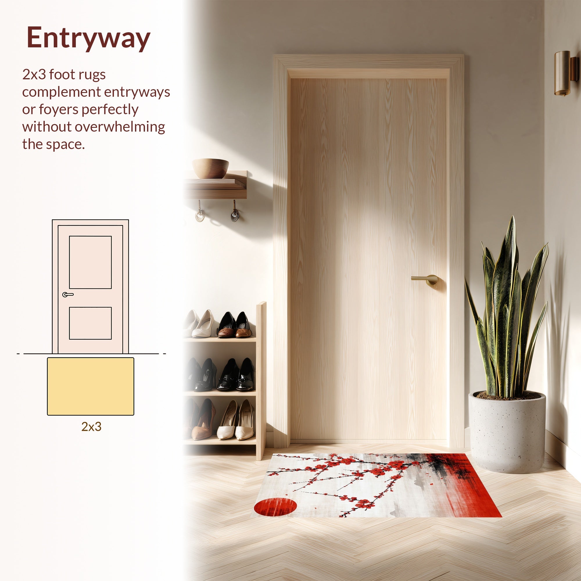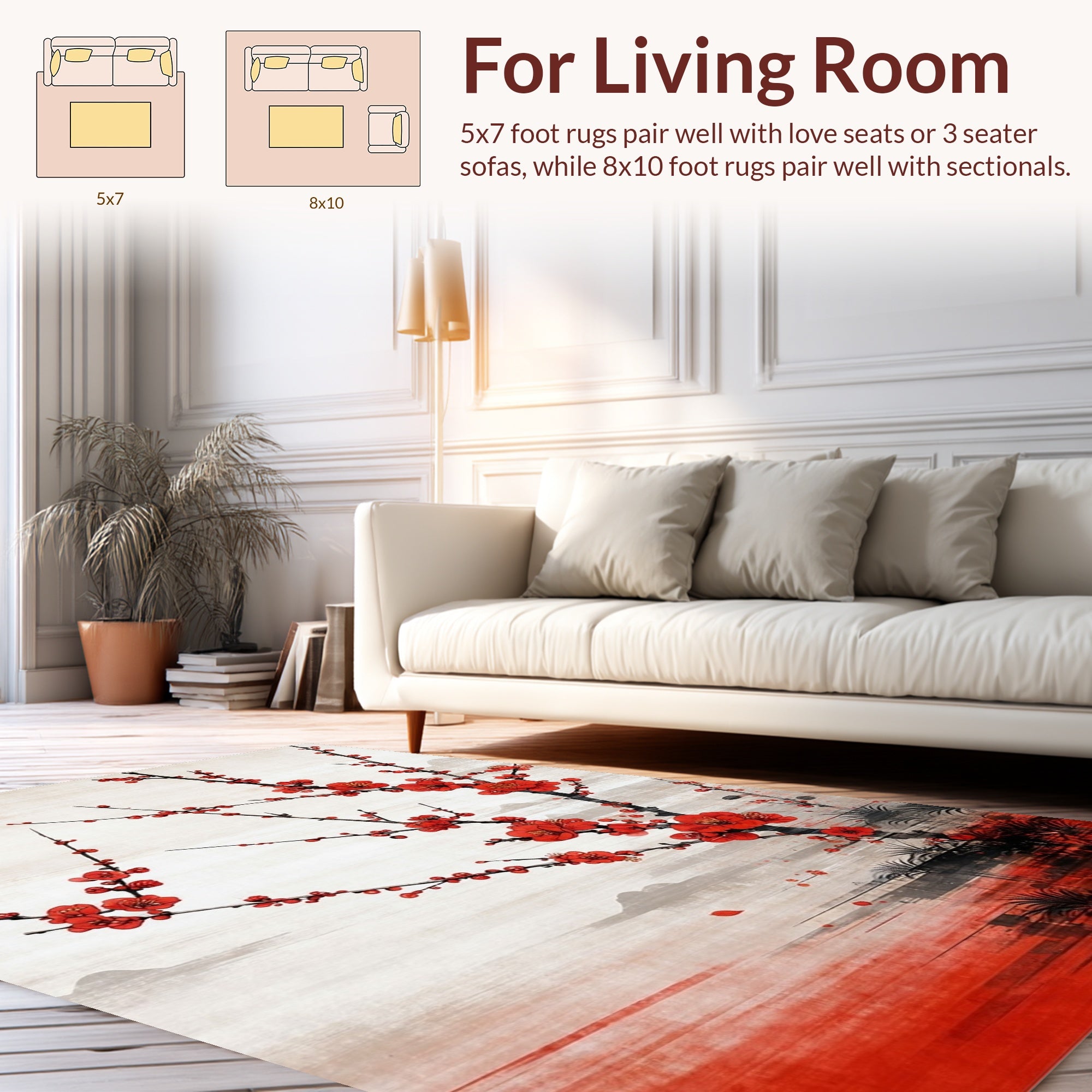 Flatwoven High Traffic Area Rug, Vivid Cherry Blossom Abstract Art, Non Slip, Stain Resistant, Washable Area Rugs for Living Room, Bedroom (Red) Overview: