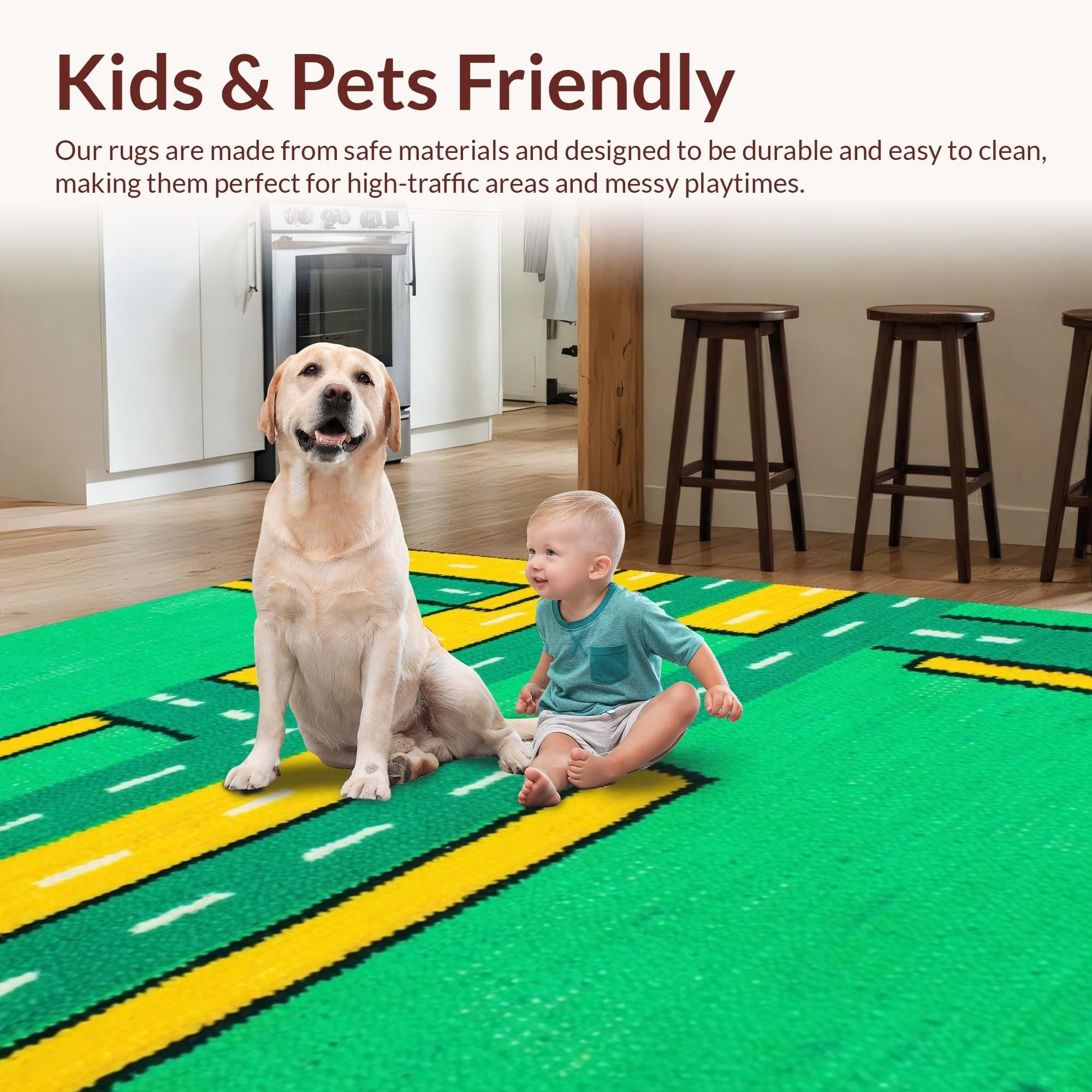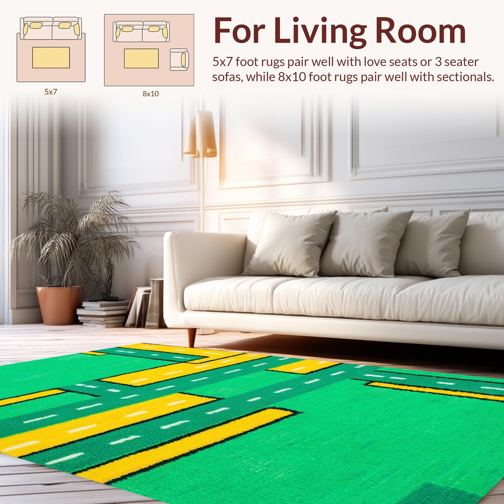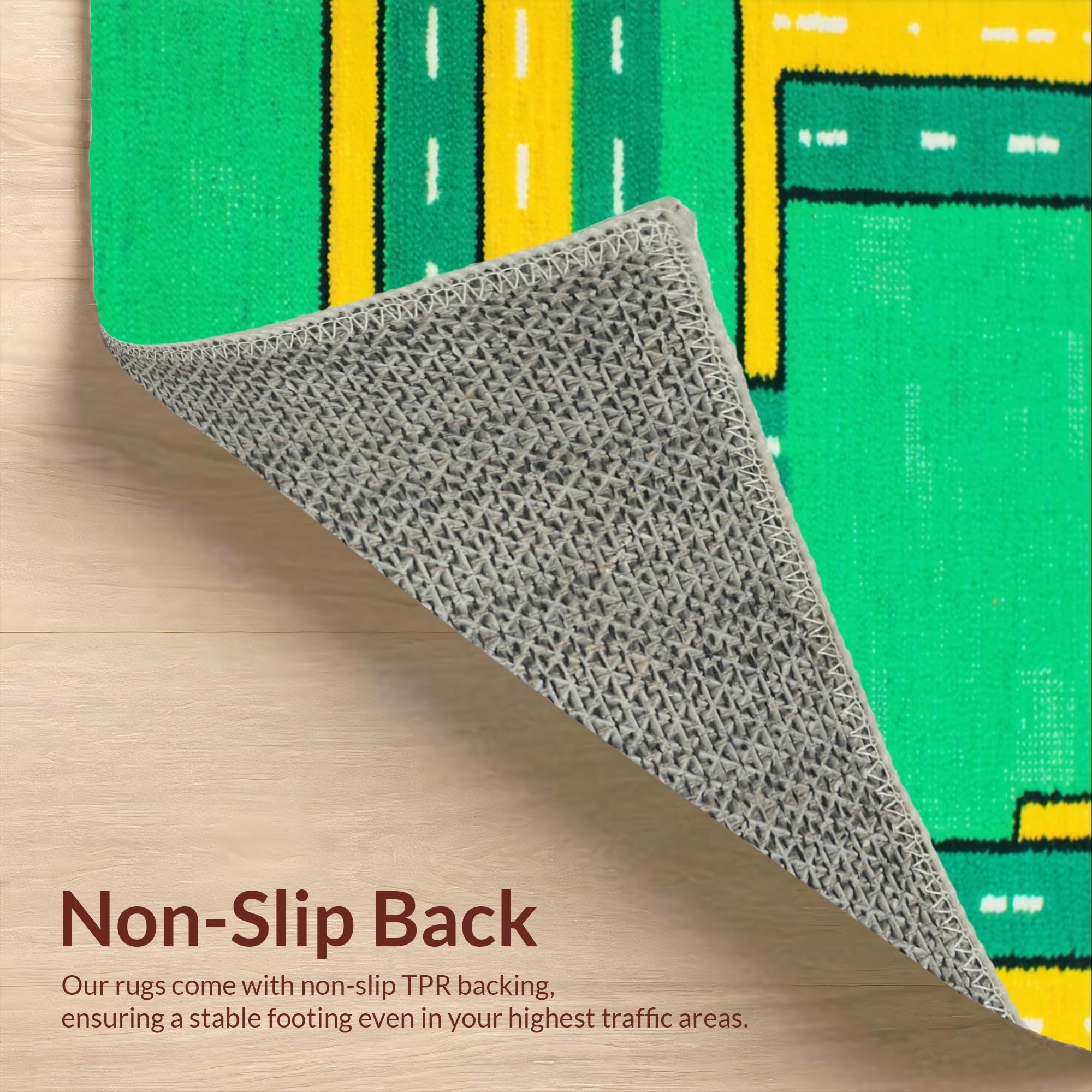 Ultra Soft Area Rug, Non Slip, Stain Resistant, Washable Area Rugs for Living Room, Bedroom, Vivid Cityscape Adventure Theme(Green) Overview: