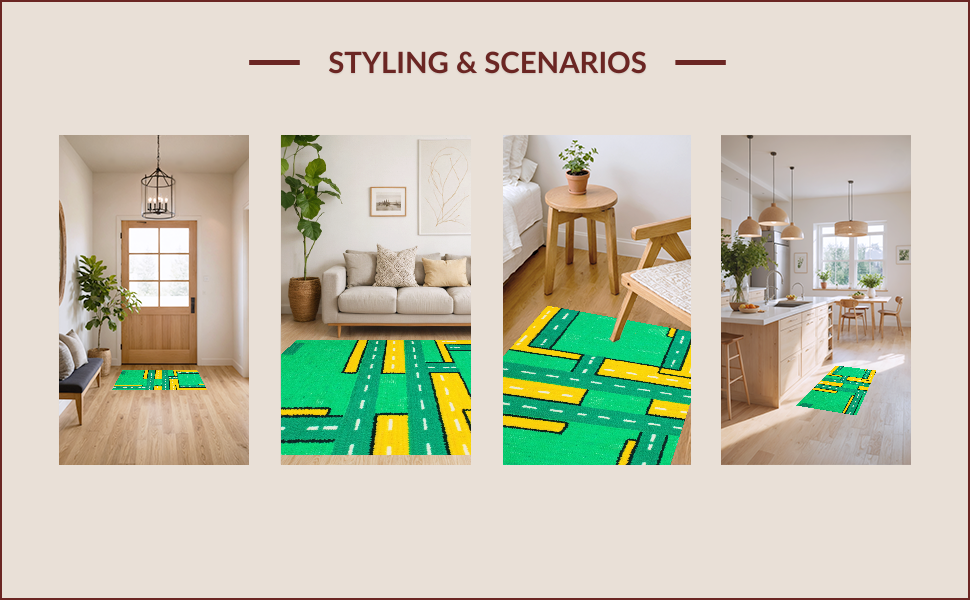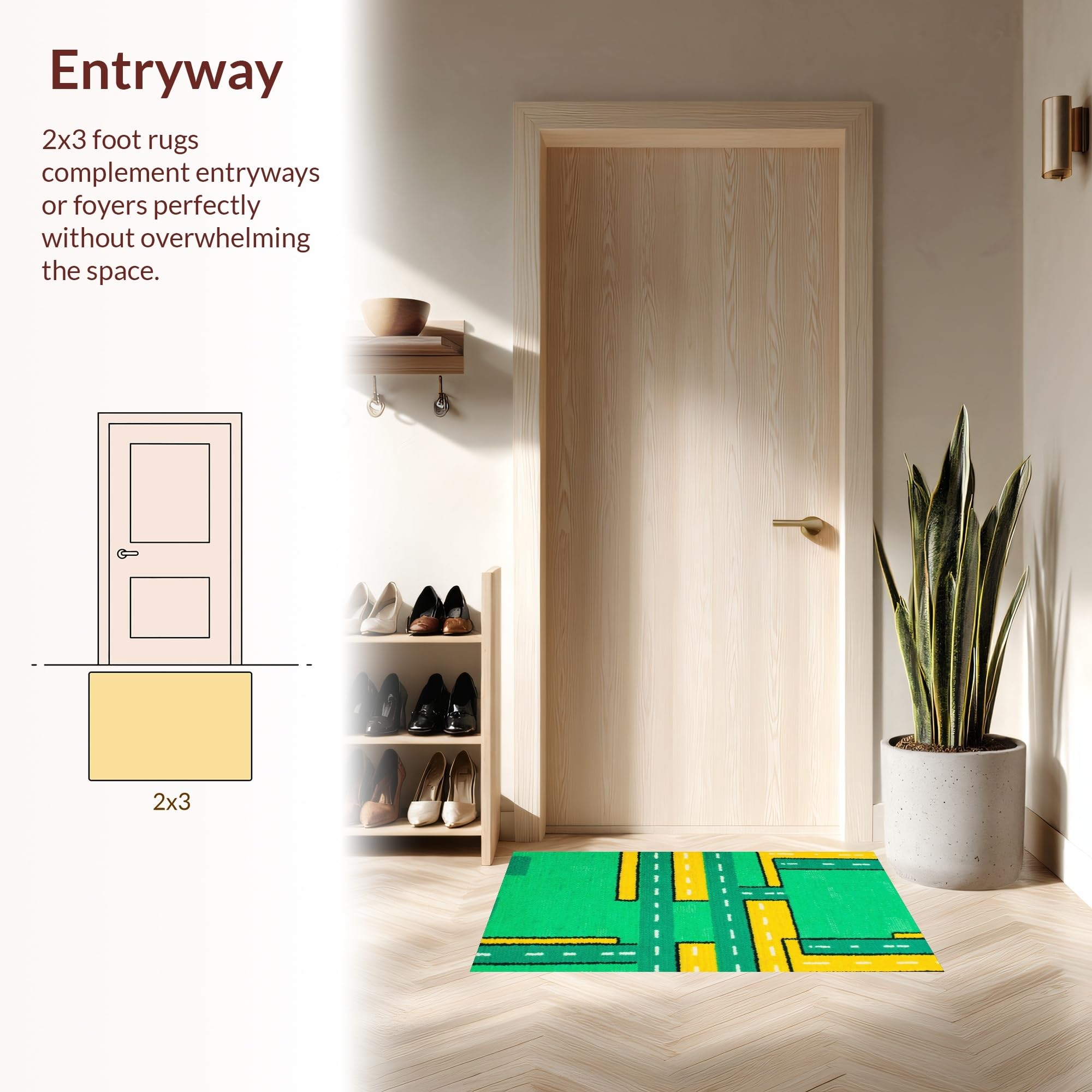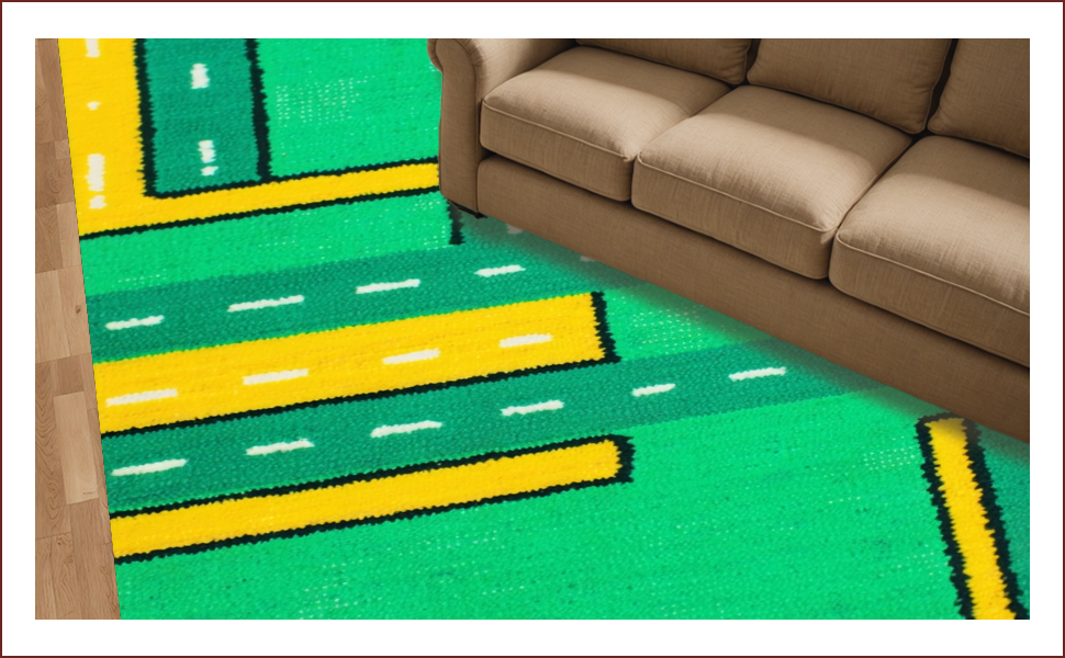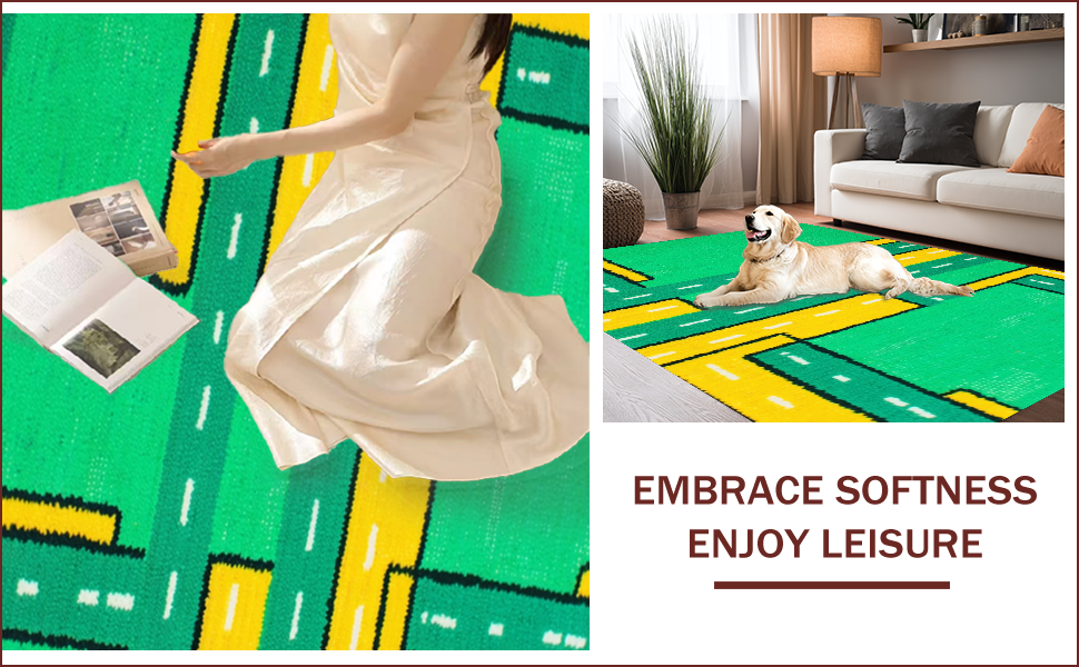Ultra Soft Area Rug, Non Slip, Stain Resistant, Washable Area Rugs for Living Room, Bedroom, Vivid Cityscape Adventure Theme(Green) Overview:
