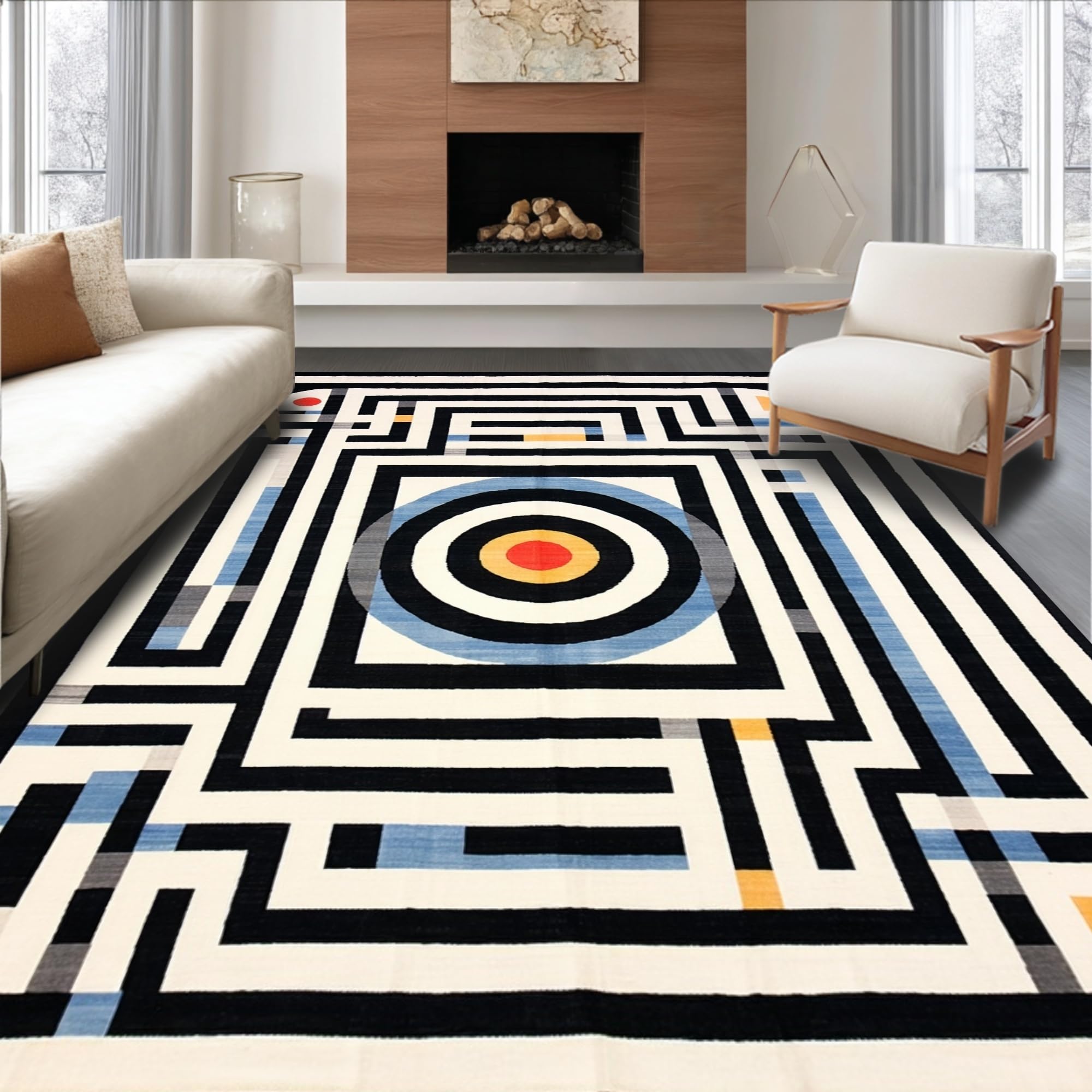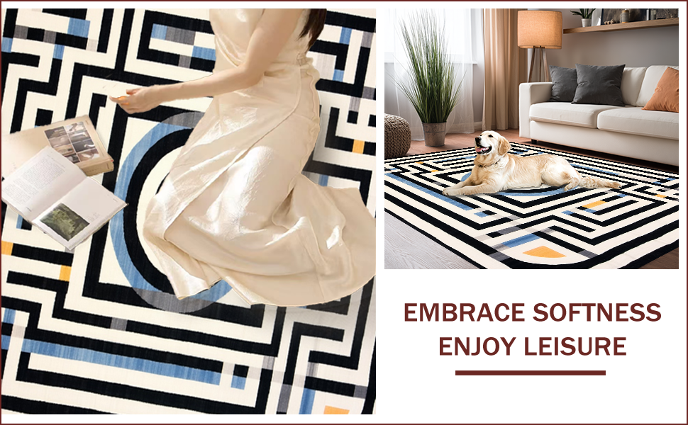 Ultra Soft Area Rug, Non Slip, Stain Resistant, Washable Area Rugs for Living Room, Bedroom, Vivid Geometric Fantasy Motif(Black) Overview: