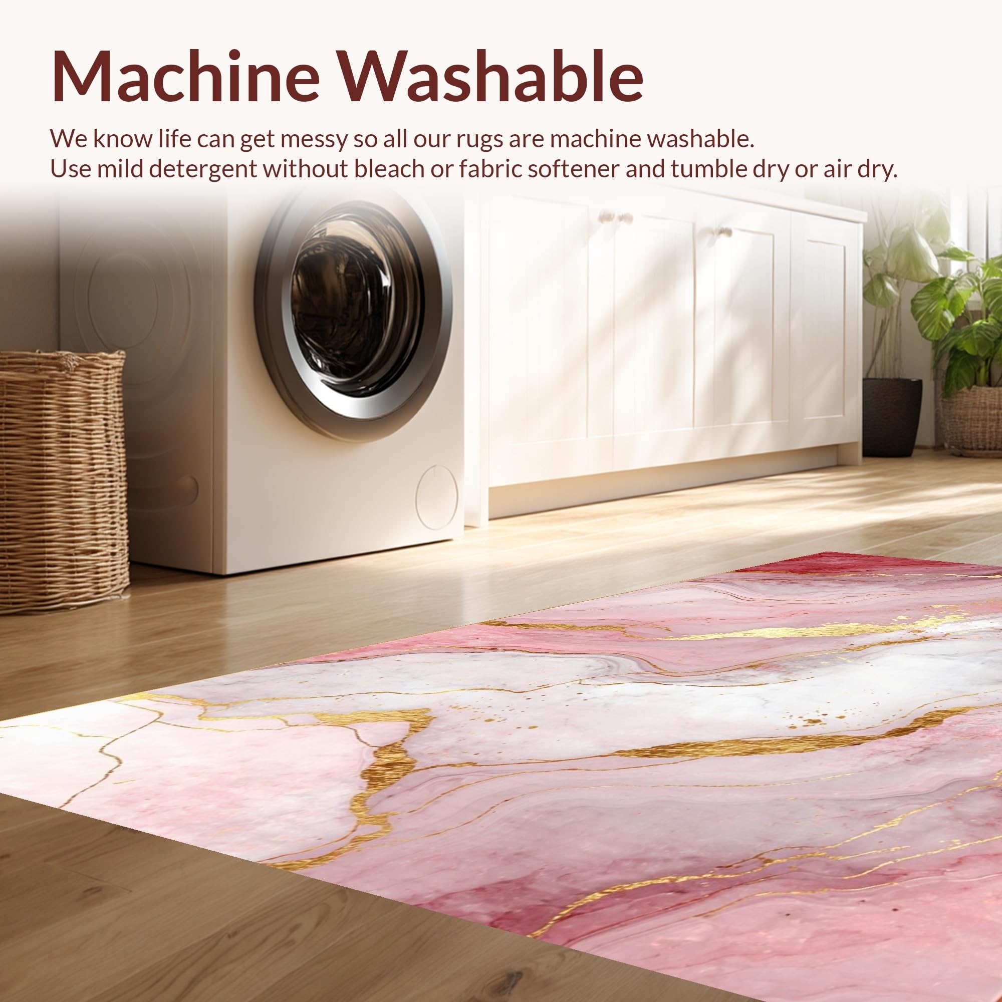 Ultra Soft Area Rug, Non Slip, Stain Resistant, Washable Area Rugs for Living Room, Bedroom, Vivid Luxe Marble Aesthetic(Pink) Overview: