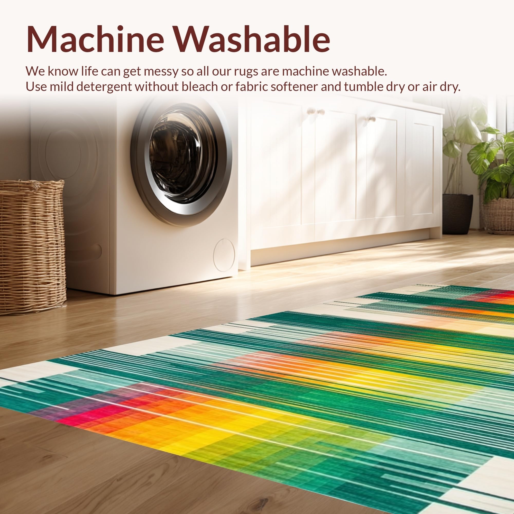- Machine Washable: Our rugs can be easily thrown in the wash machine.