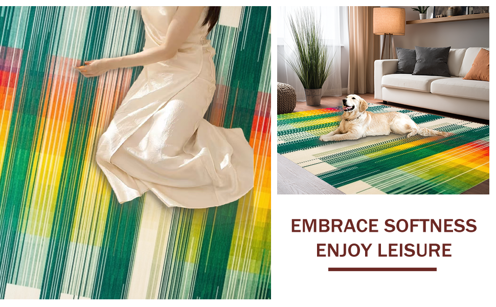 Ultra Soft Area Rug, Non Slip, Stain Resistant, Washable Area Rugs for Living Room, Bedroom, Vivid Modern Splashing Shapes(Green) Overview: