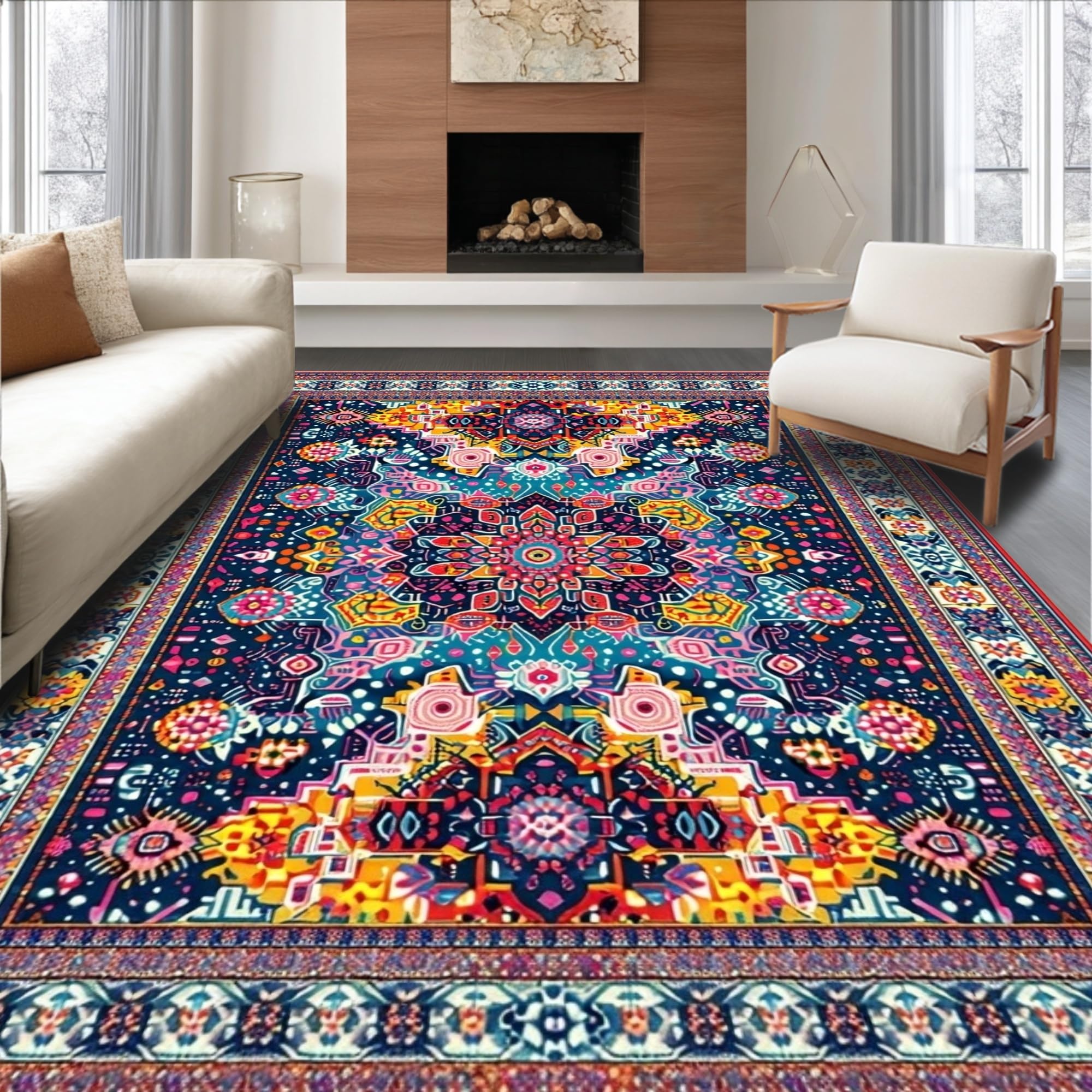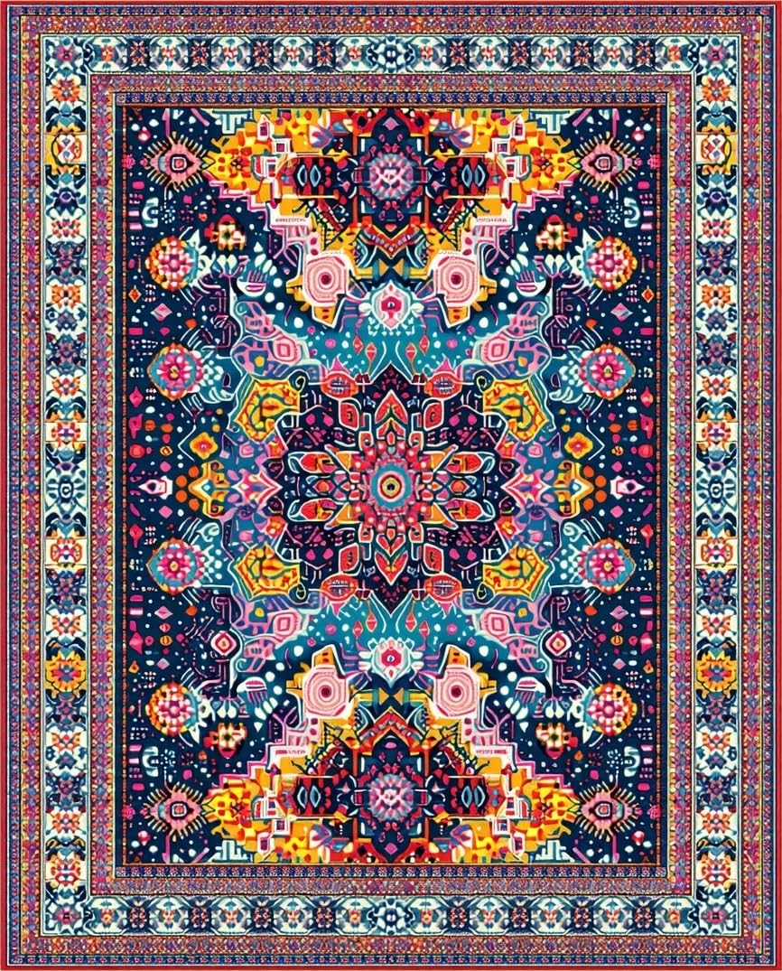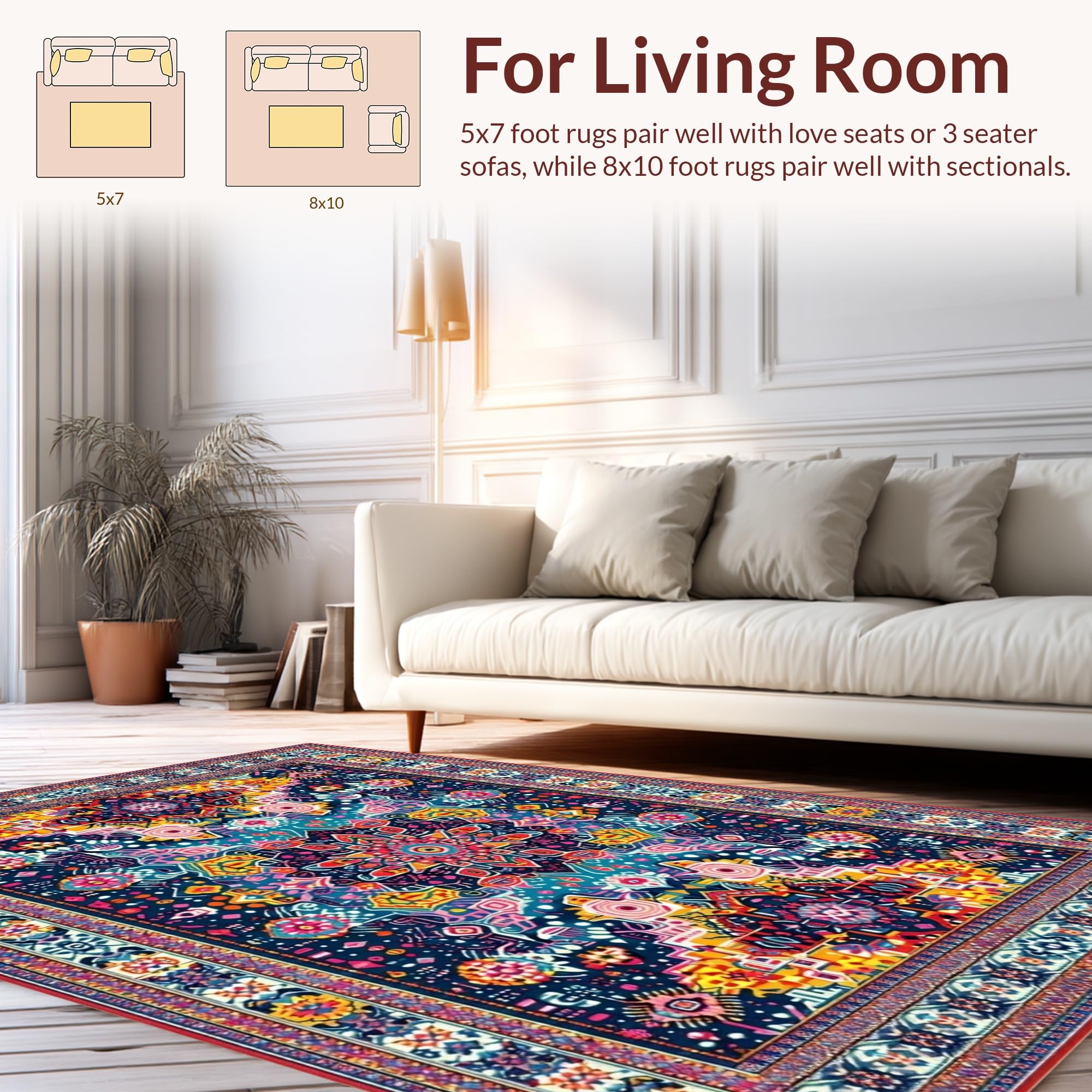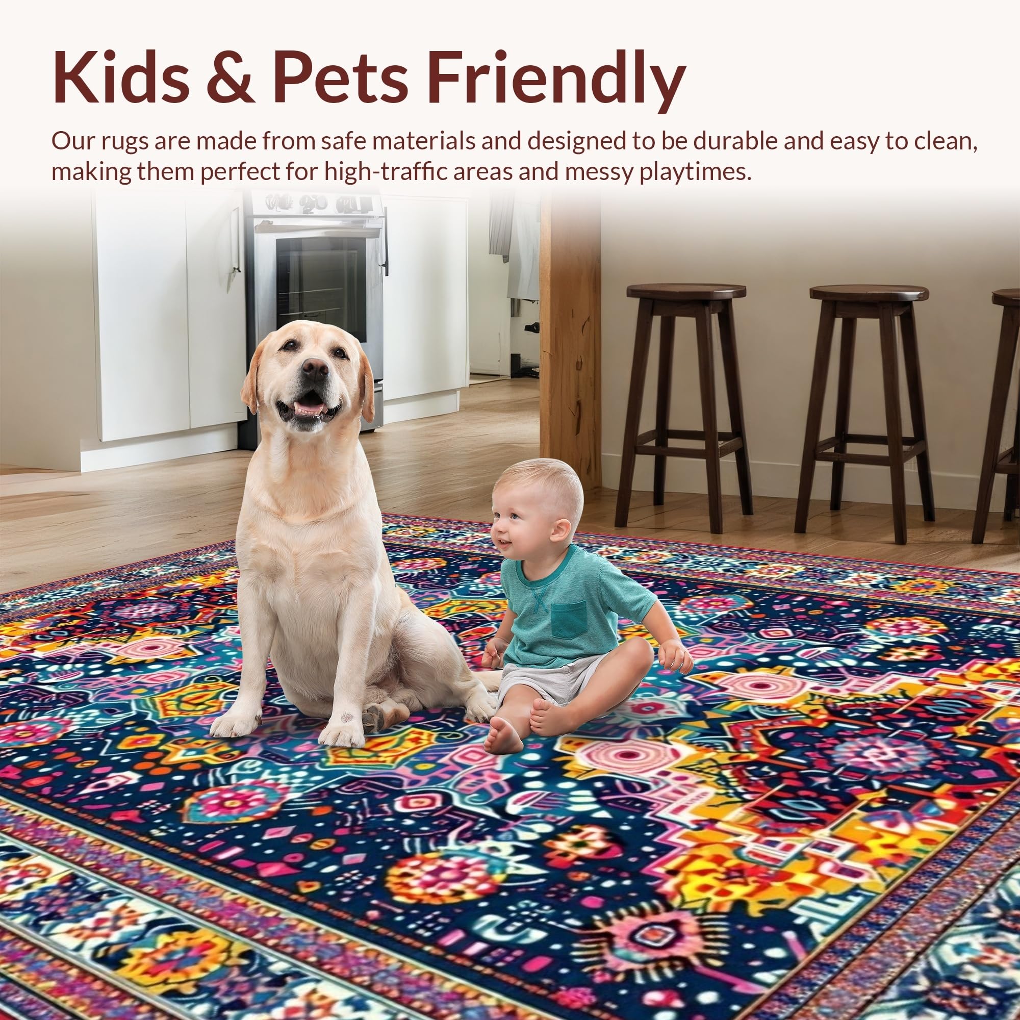 Ultra Soft Area Rug, Non Slip, Stain Resistant, Washable Area Rugs for Living Room, Bedroom, Vivid Ornamental with Entangled and Sky Inspired Design(Navy) Overview: