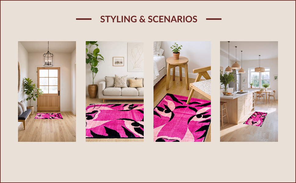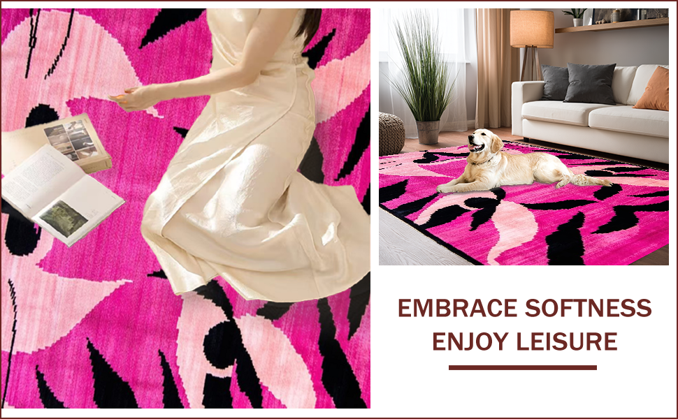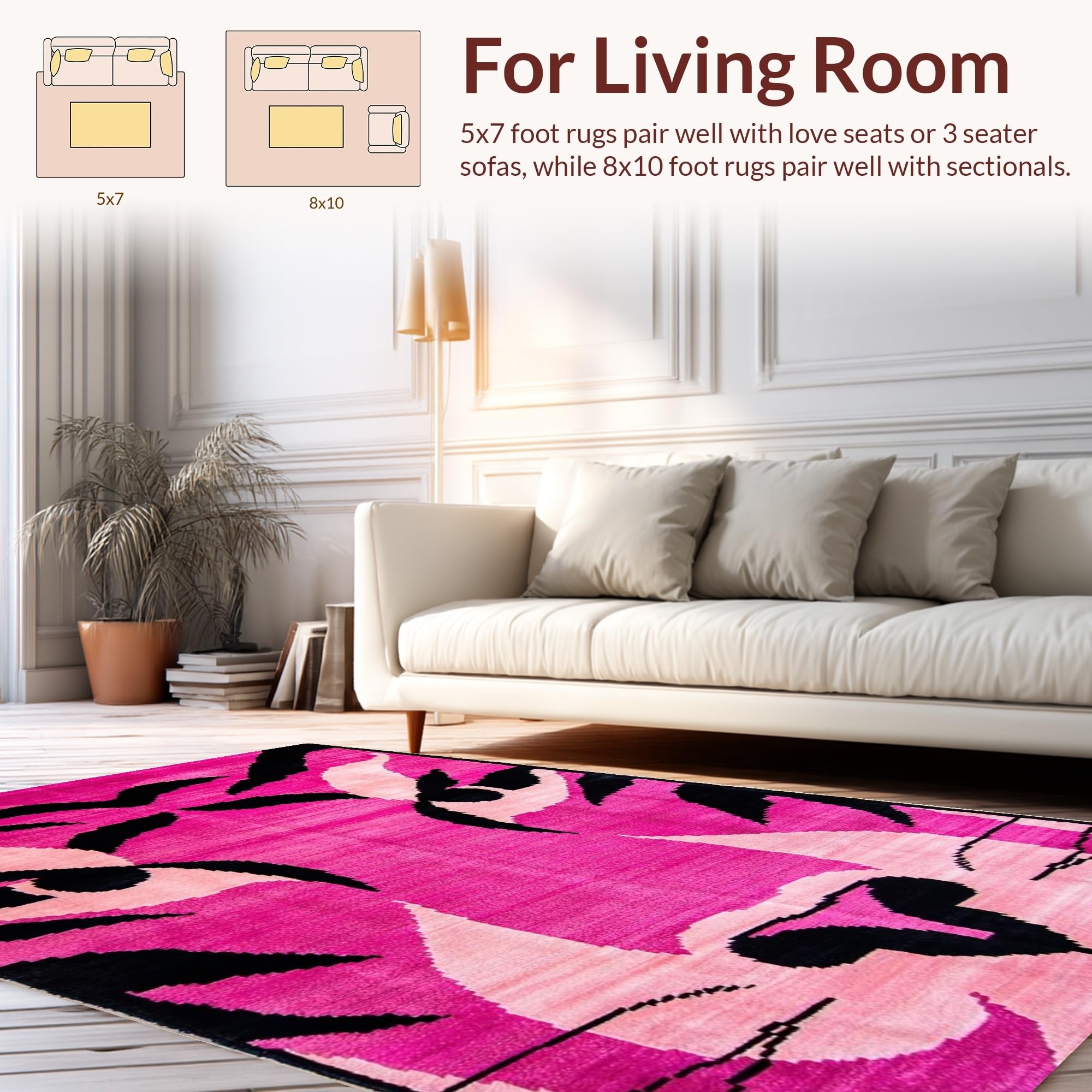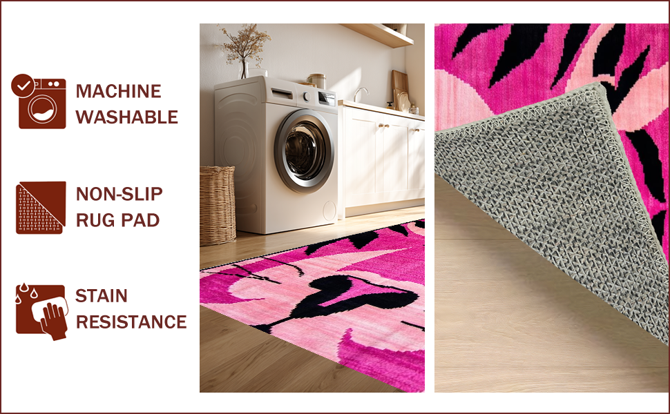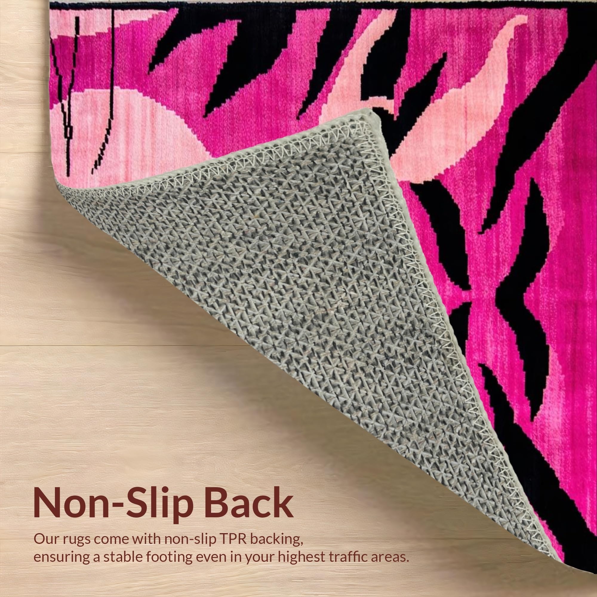 Ultra Soft Area Rug, Non Slip, Stain Resistant, Washable Area Rugs for Living Room, Bedroom, Vivid Tiger Striped Aesthetic(Pink) Overview: