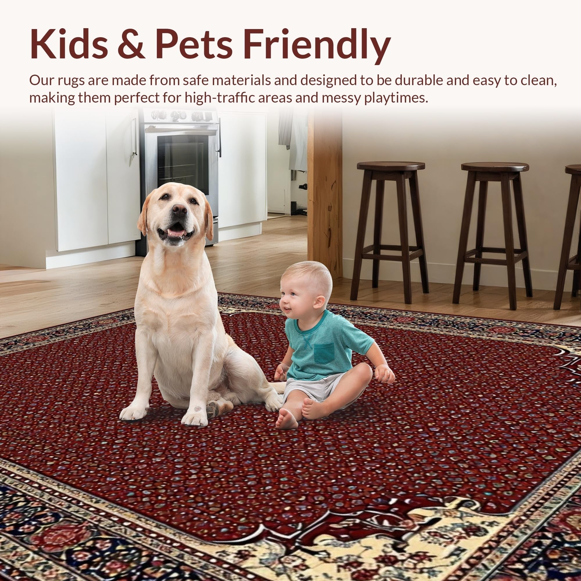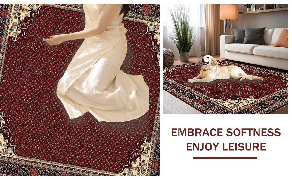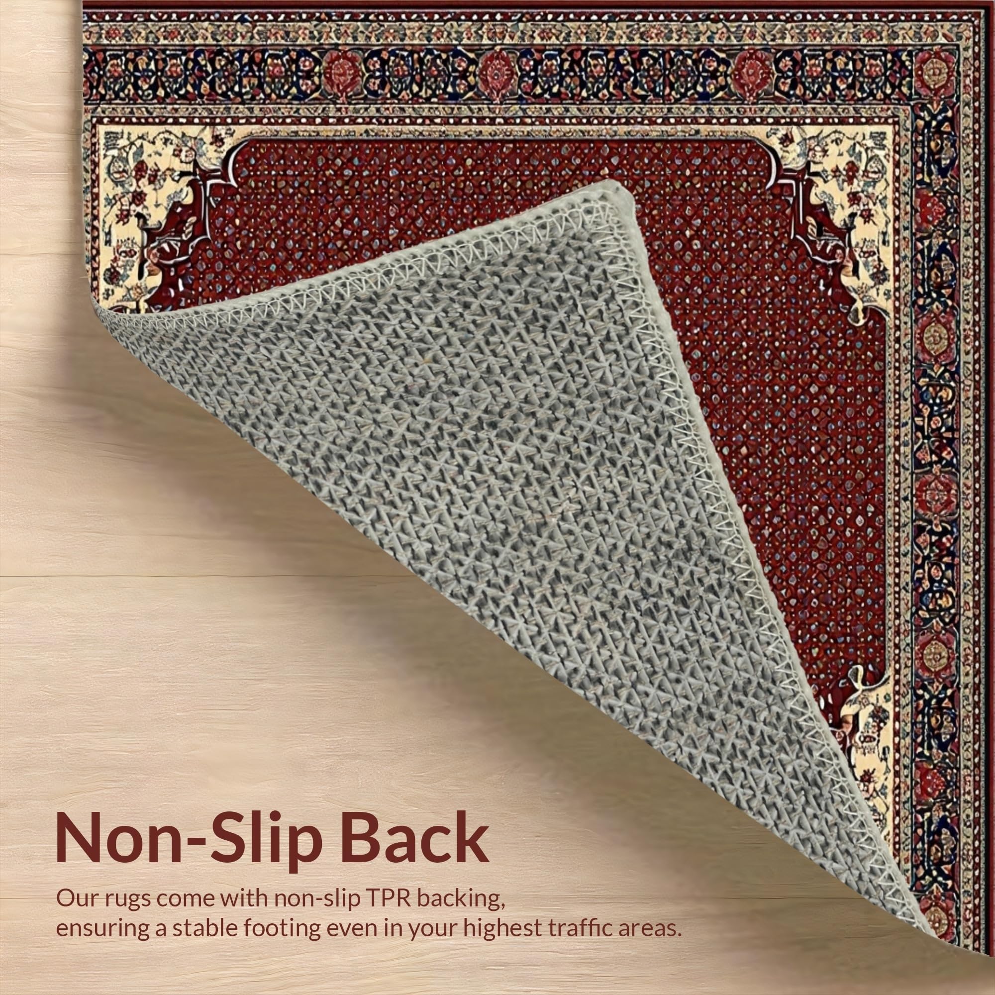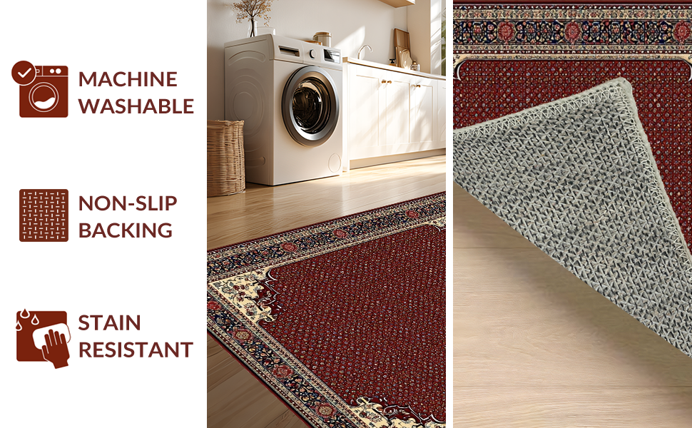 Ultra Soft Area Rug, Non Slip, Stain Resistant, Washable Area Rugs for Living Room, Bedroom, Vivid Vintage Trellis Arrangement(Red) Overview: