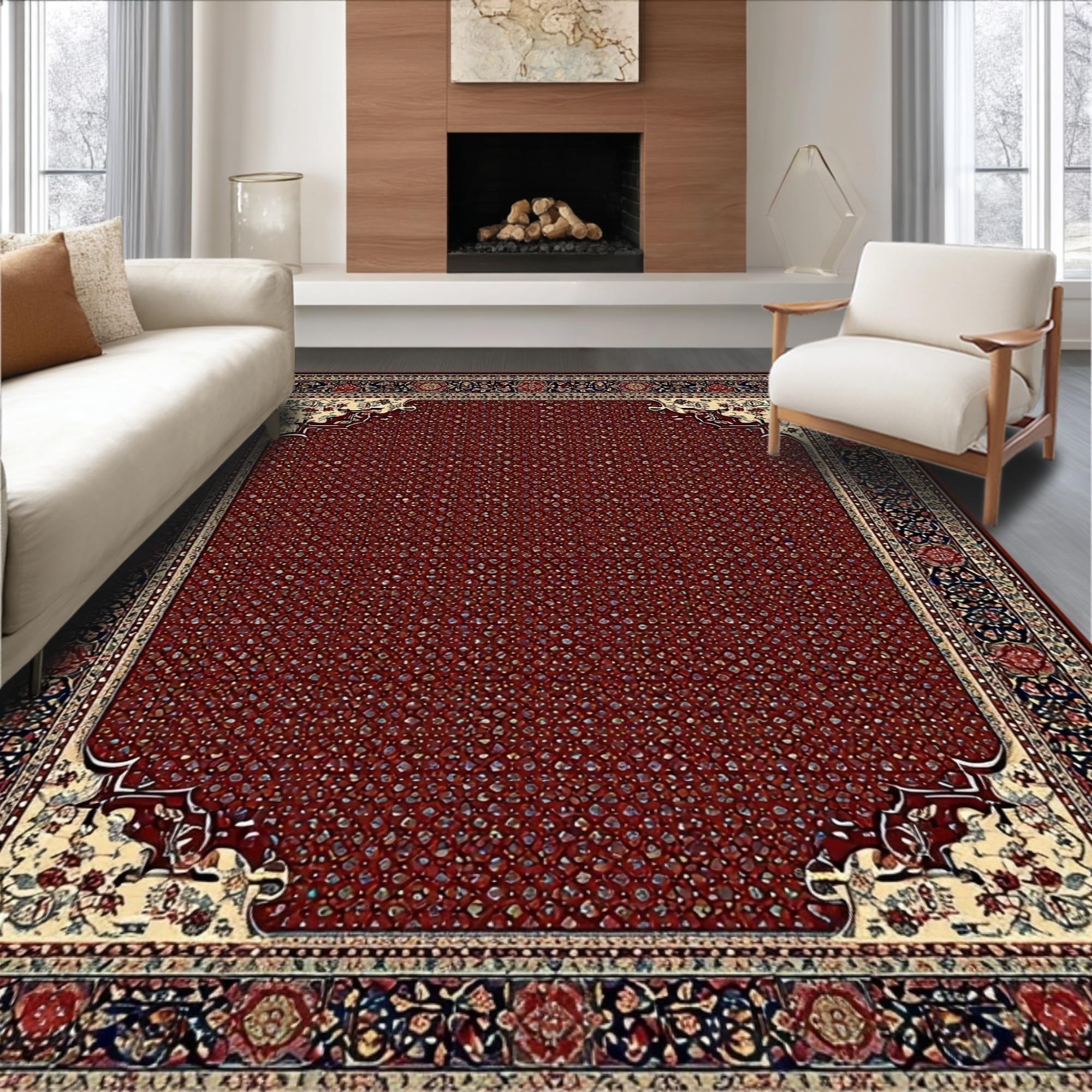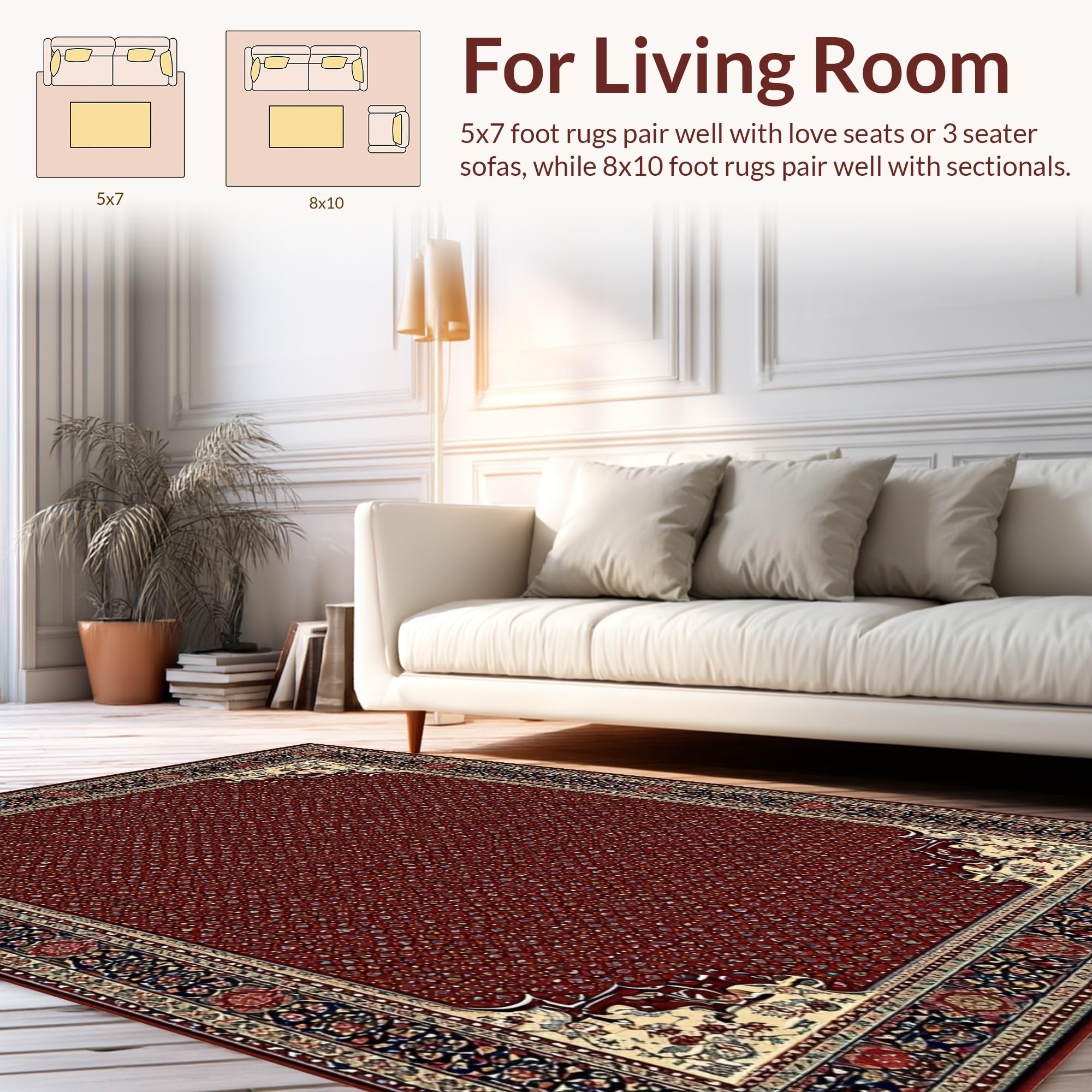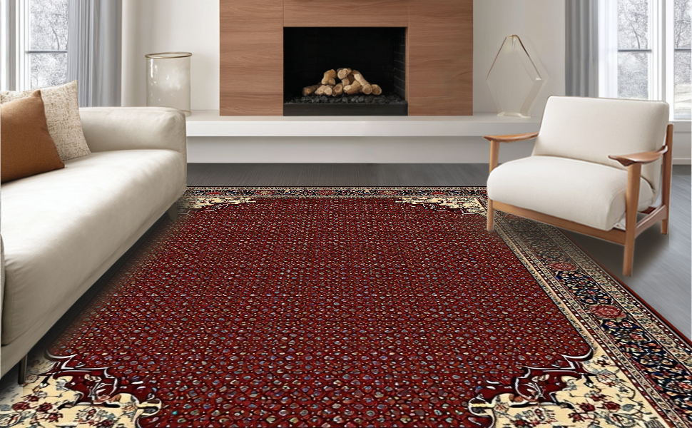 Ultra Soft Area Rug, Non Slip, Stain Resistant, Washable Area Rugs for Living Room, Bedroom, Vivid Vintage Trellis Arrangement(Red) Overview: