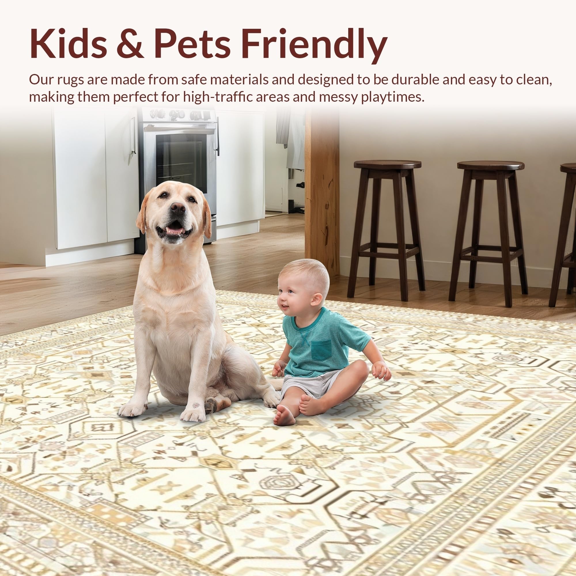 Ultra Soft Area Rug, Non Slip, Stain Resistant, Washable Area Rugs for Living Room, Bedroom, Warm Beige Circle Chic with Boho Inspired Style(Beige) Overview: