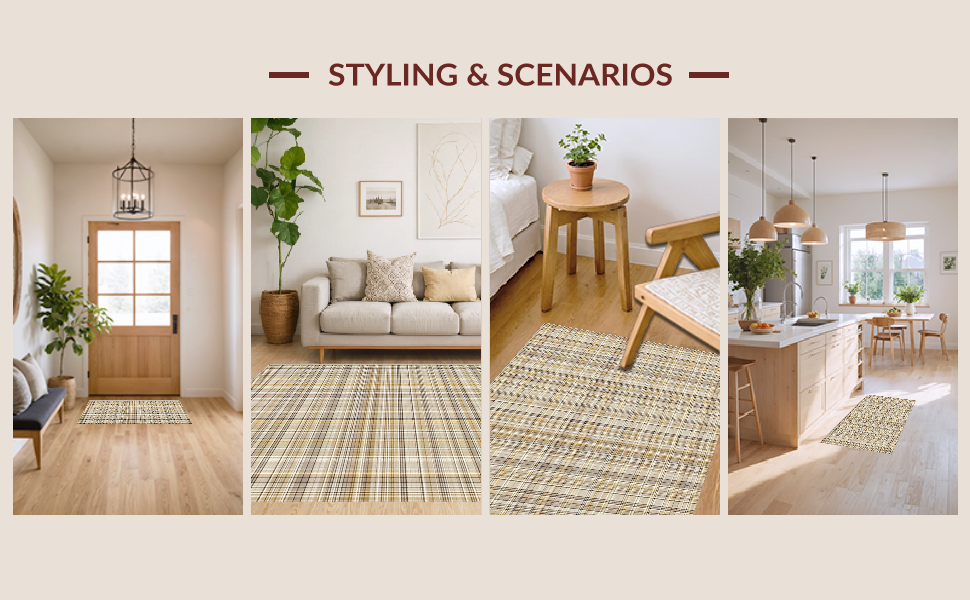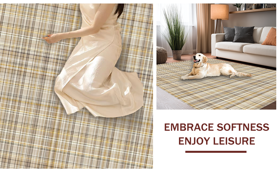 Ultra Soft Area Rug, Non Slip, Stain Resistant, Washable Area Rugs for Living Room, Bedroom, Warm Cozy Plaid Motif(Beige) Overview: