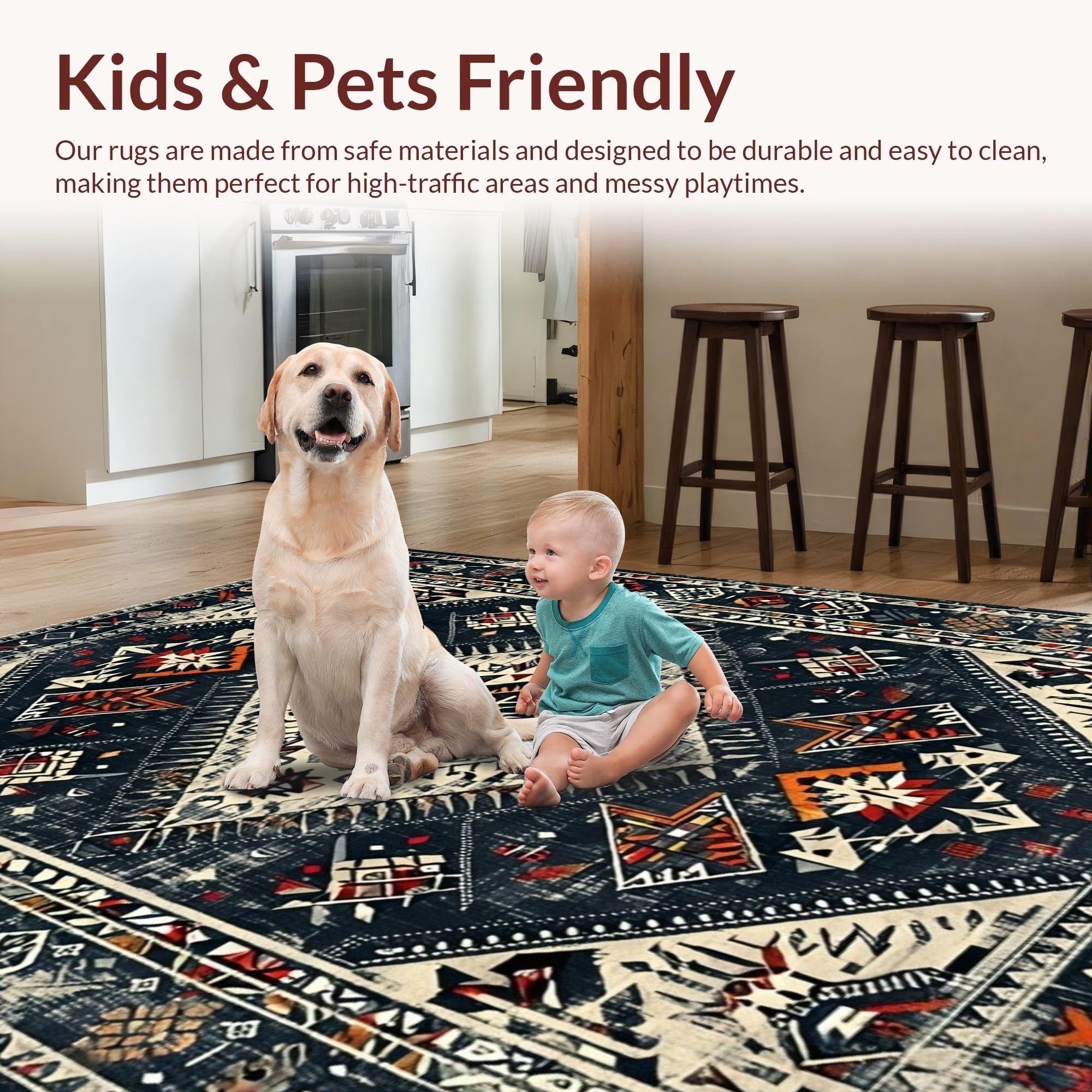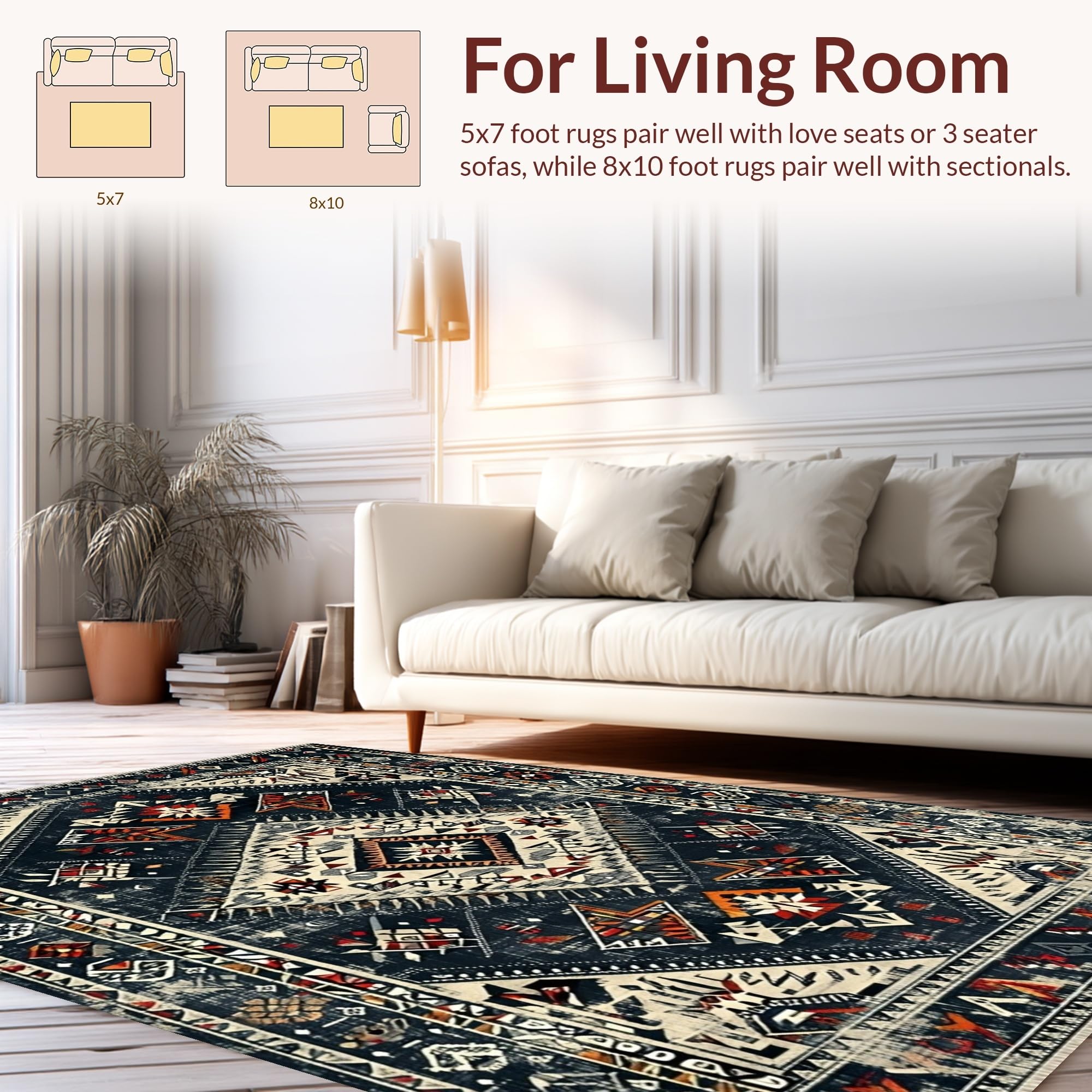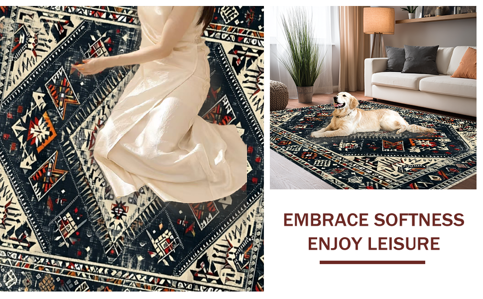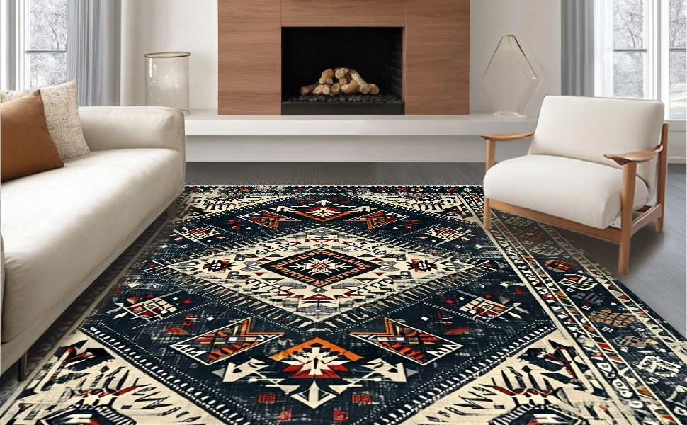 Ultra Soft Area Rug, Non Slip, Stain Resistant, Washable Area Rugs for Living Room, Bedroom, Warm Cozy Woven Patterns(Blue) Overview: