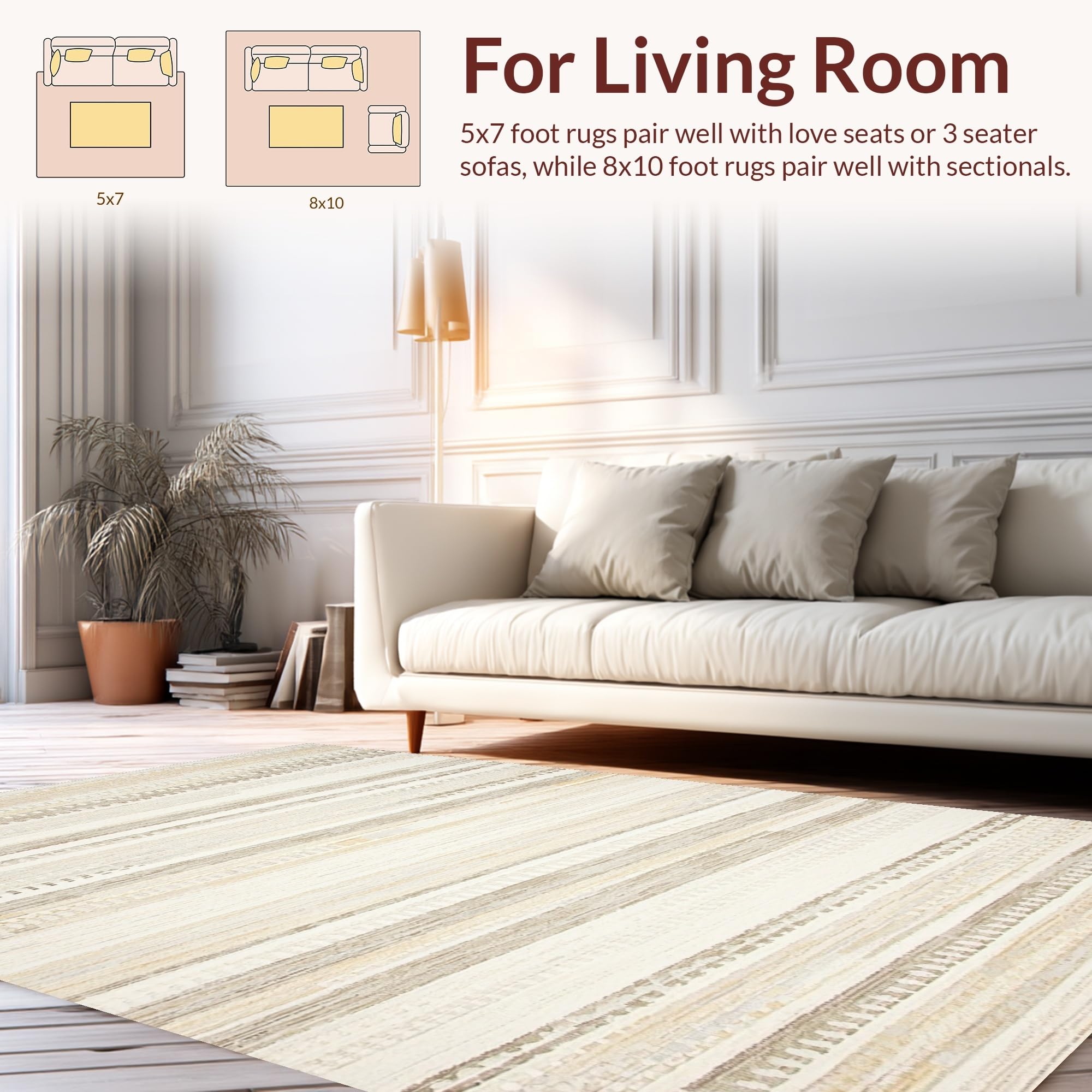 Ultra Soft Area Rug, Non Slip, Stain Resistant, Washable Area Rugs for Living Room, Bedroom, Warm Earthy Diamond Motif(Beige) Overview: