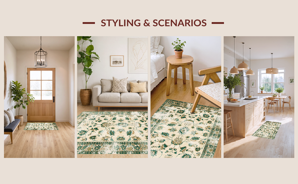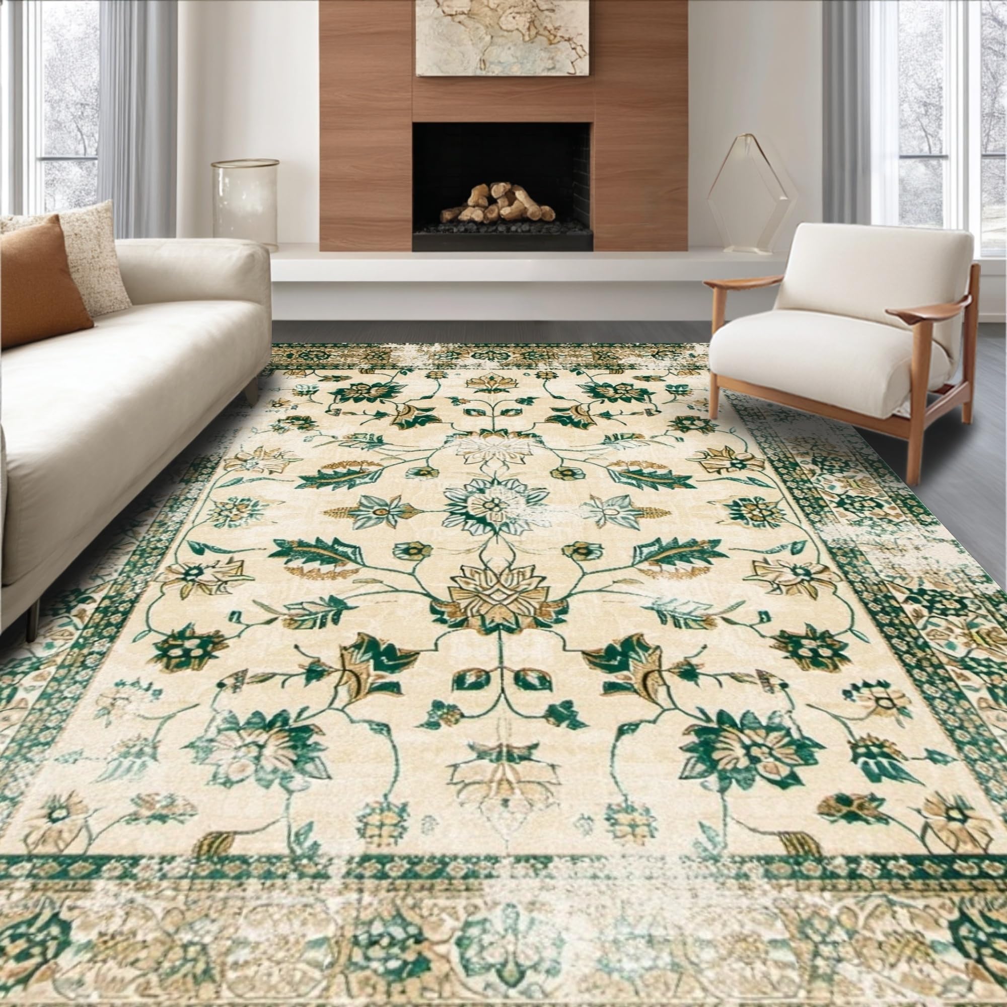 Ultra Soft Area Rug, Non Slip, Stain Resistant, Washable Area Rugs for Living Room, Bedroom, Warm Earthy Plaid Aesthetic(Beige) Overview: