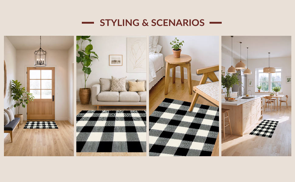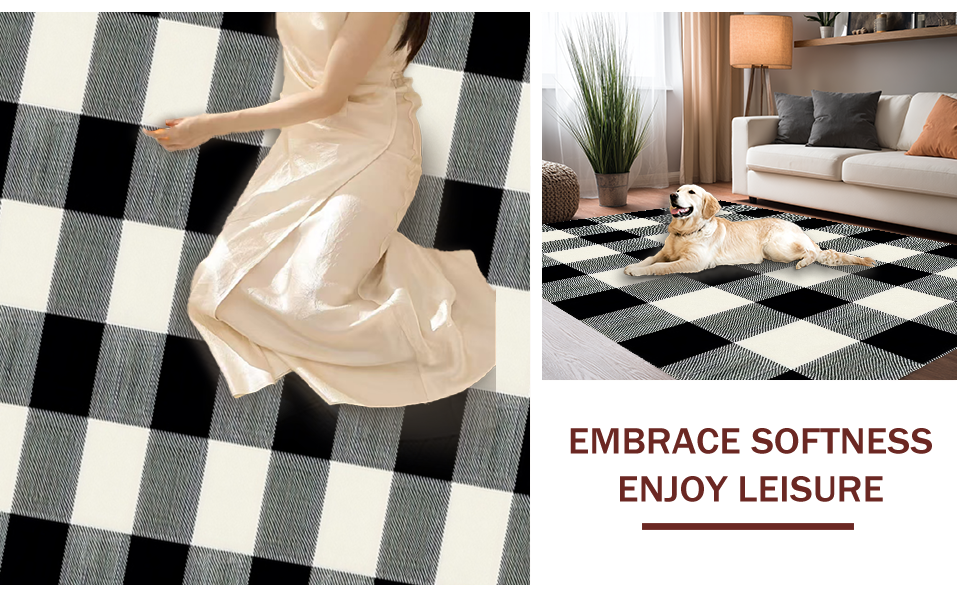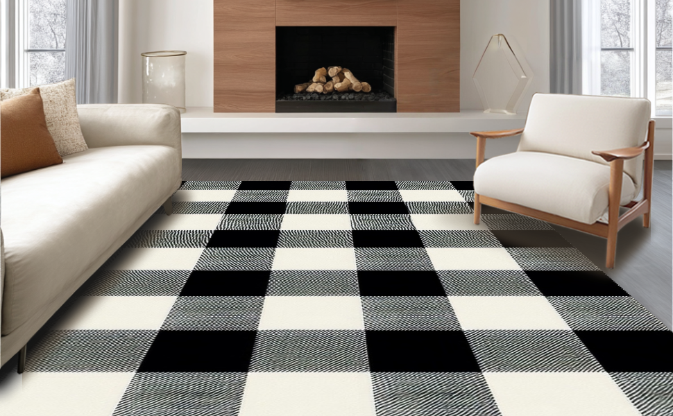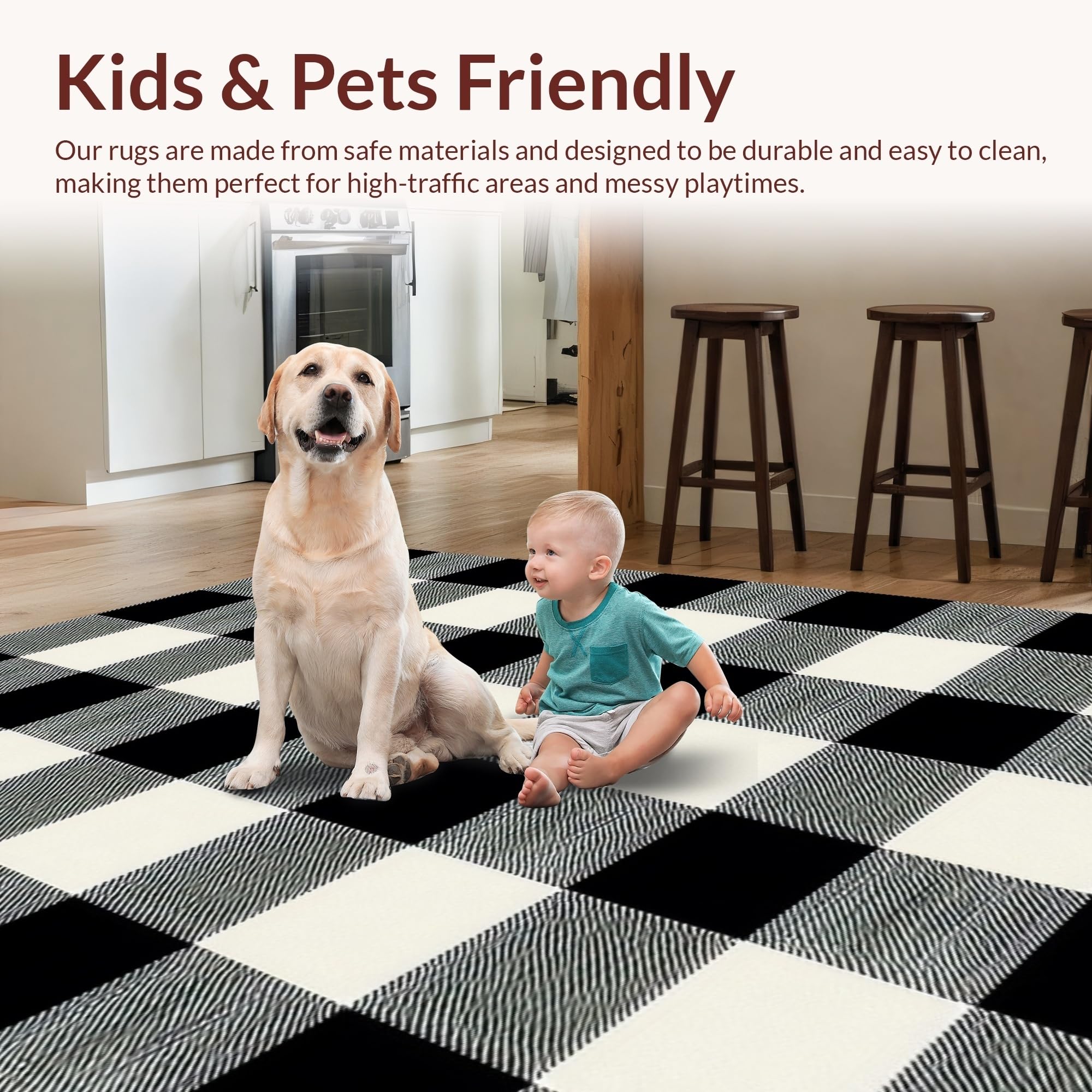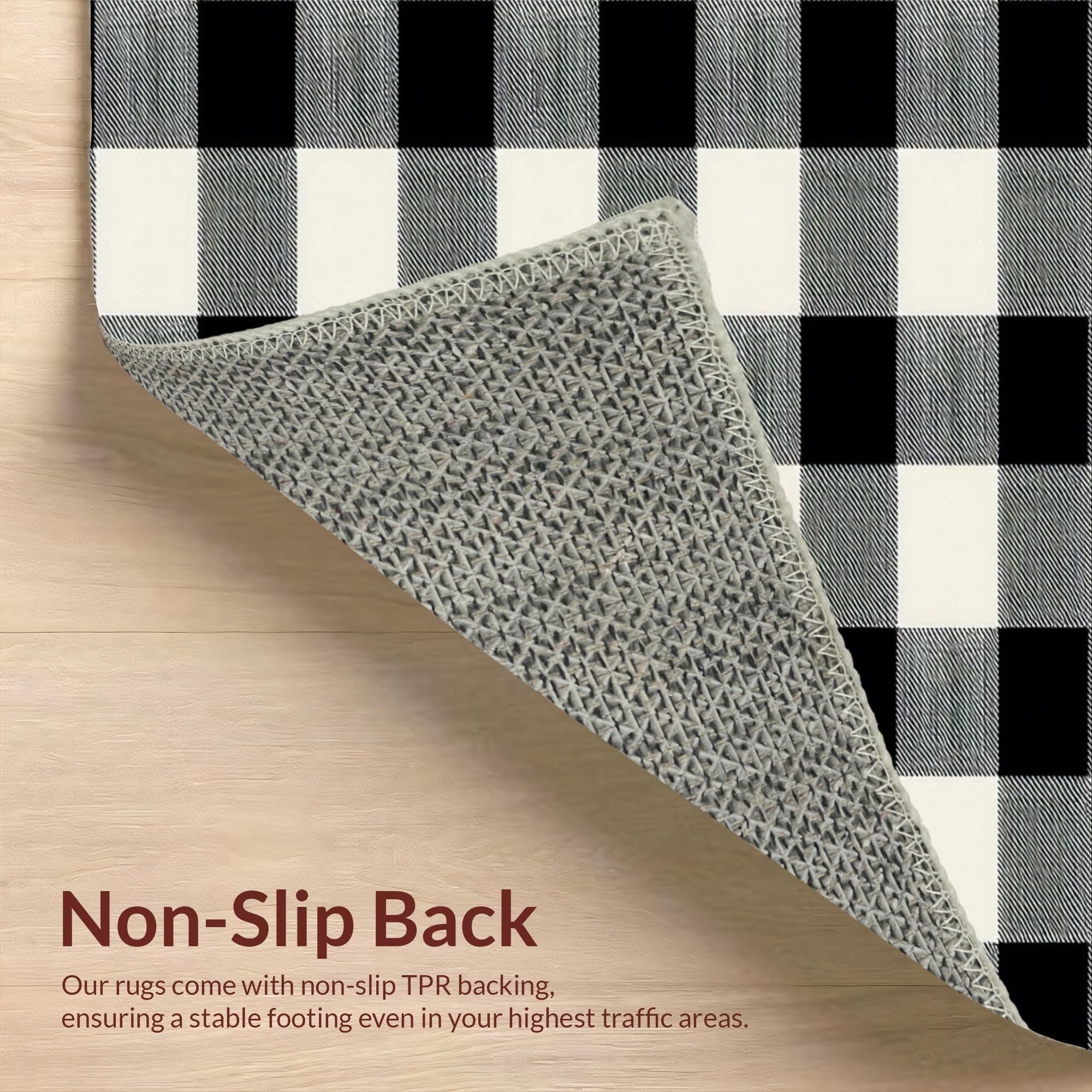 Ultra Soft Area Rug, Non Slip, Stain Resistant, Washable Area Rugs for Living Room, Bedroom, Warm Earthy Toned Plaid Fabric(Black) Overview: