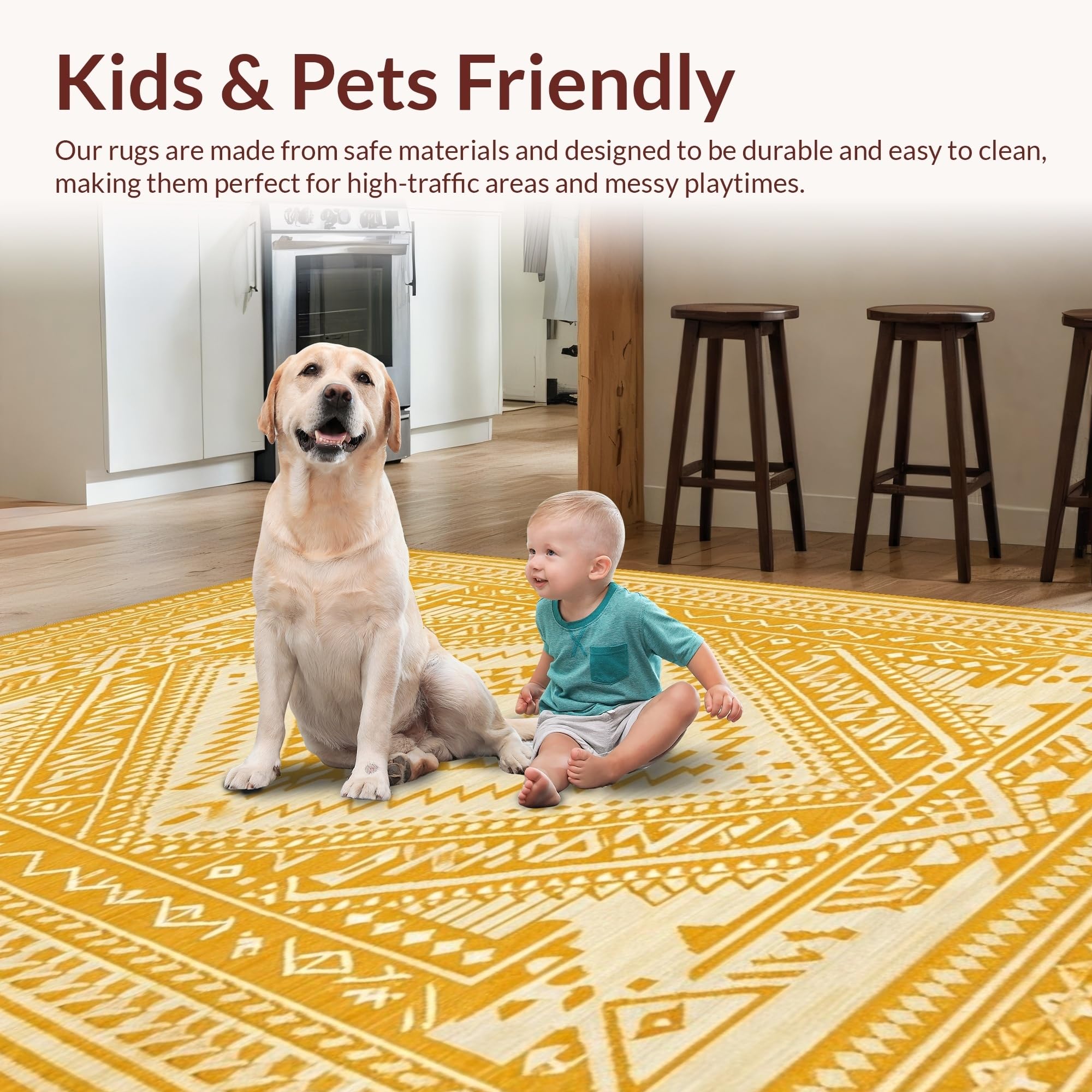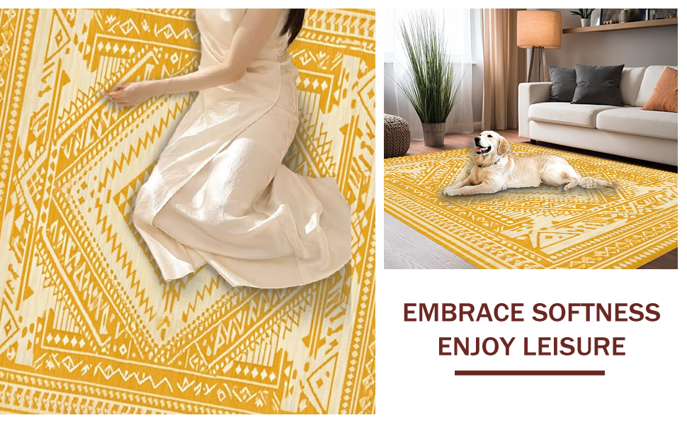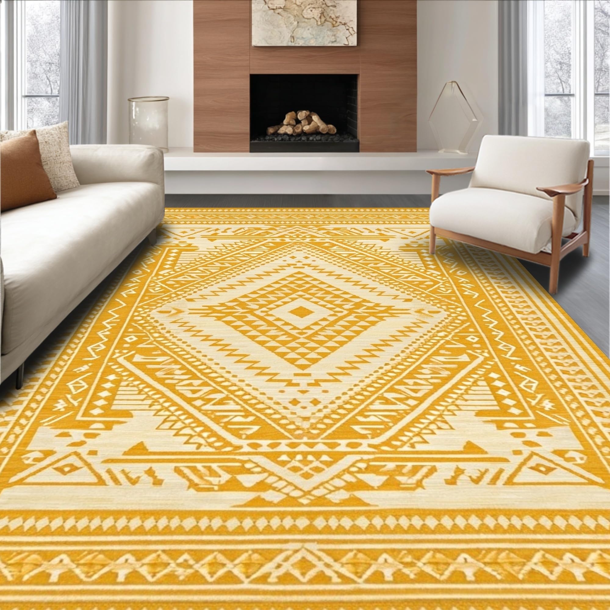 Ultra Soft Area Rug, Non Slip, Stain Resistant, Washable Area Rugs for Living Room, Bedroom, Warm Minimalist Diamond Arrangement(Yellow) Overview: