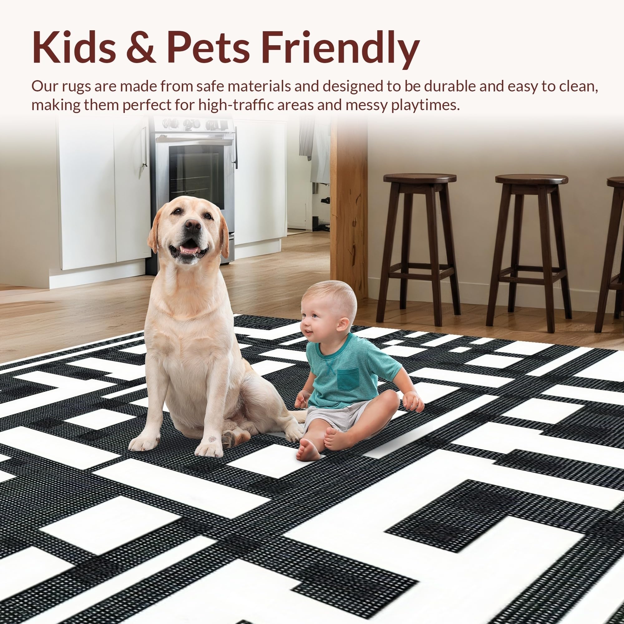 Ultra Soft Area Rug, Non Slip, Stain Resistant, Washable Area Rugs for Living Room, Bedroom, Washable Area Rug Black & White Contemporary Design(Black) Overview: