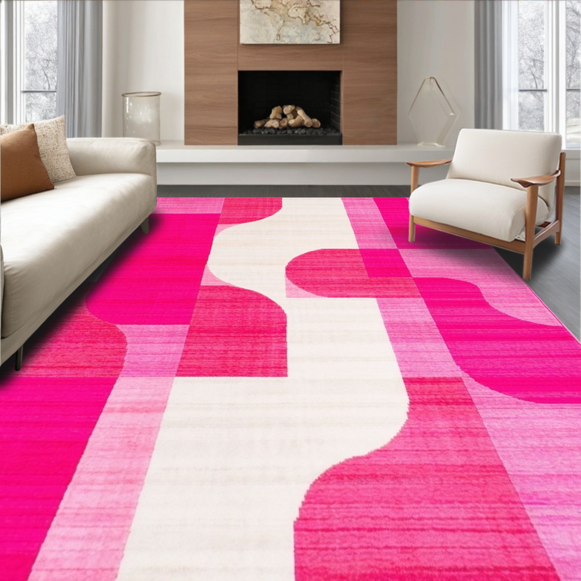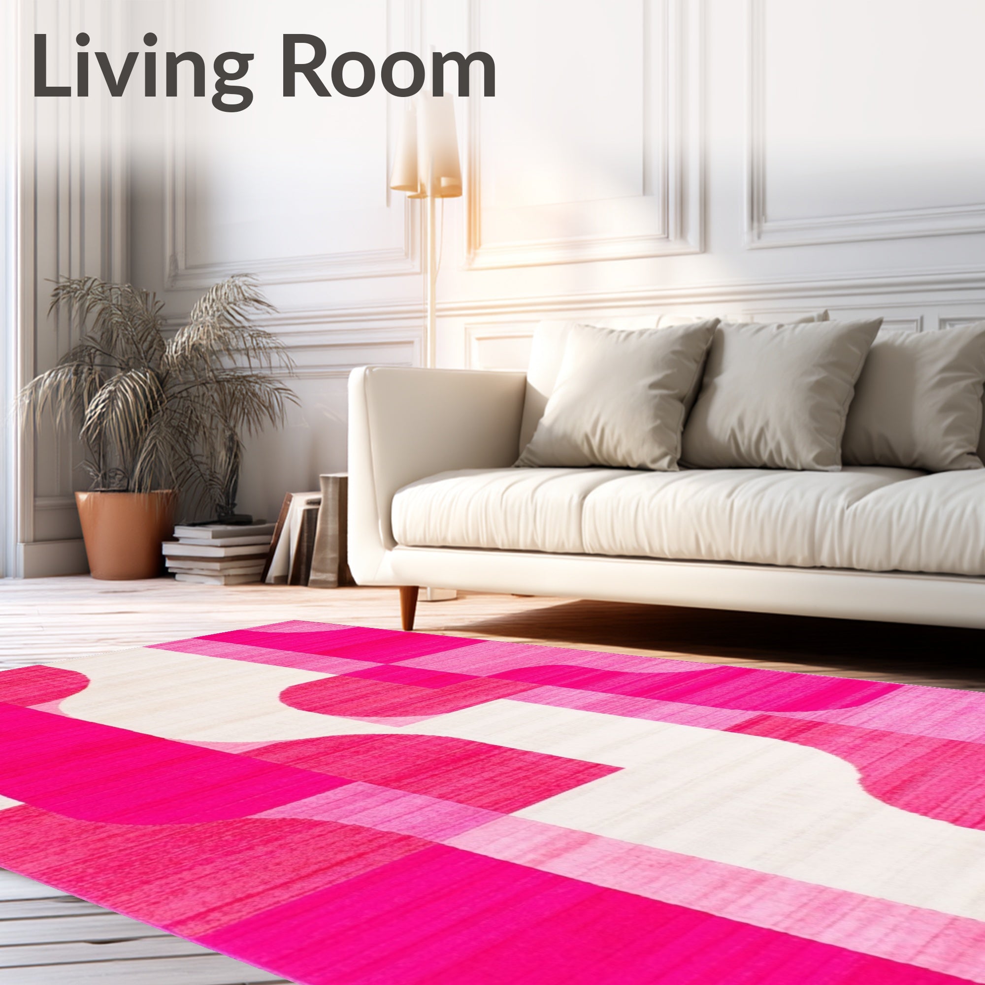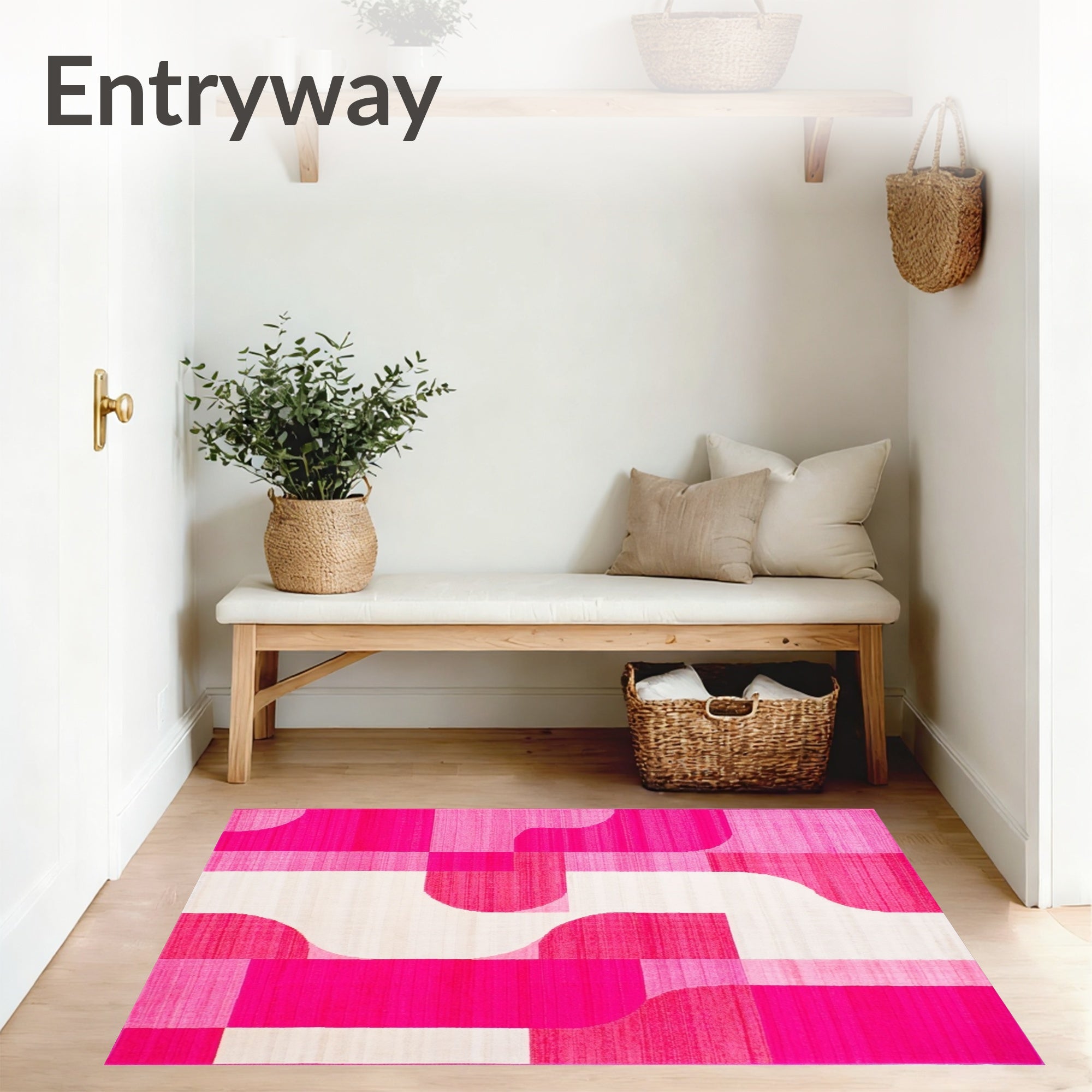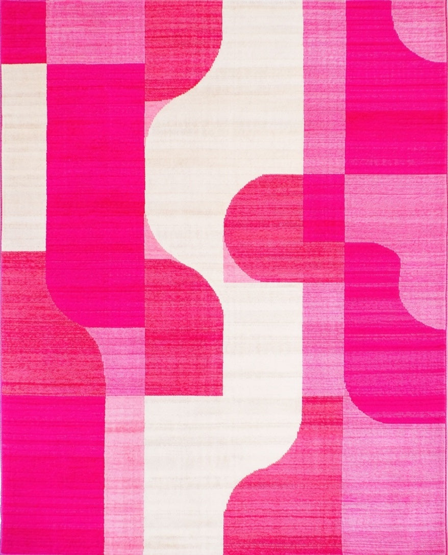 Flatwoven High Traffic Area Rug, Pink Geometric, Non Slip, Stain Resistant, Washable Area Rugs for Living Room, Bedroom (Pink) Overview: