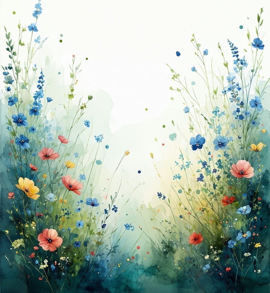 Watercolor Meadow Floral Vibrant Nature(Blue)