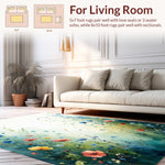 Flatwoven High Traffic Area Rug, Watercolor Meadow Floral Vibrant Nature, Non Slip, Stain Resistant, Washable Area Rugs for Living Room, Bedroom (Blue) Overview: