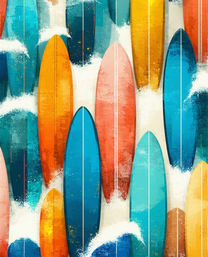 Wave Rider Surf Plank Decorative with Ocean Motifs(Blue)