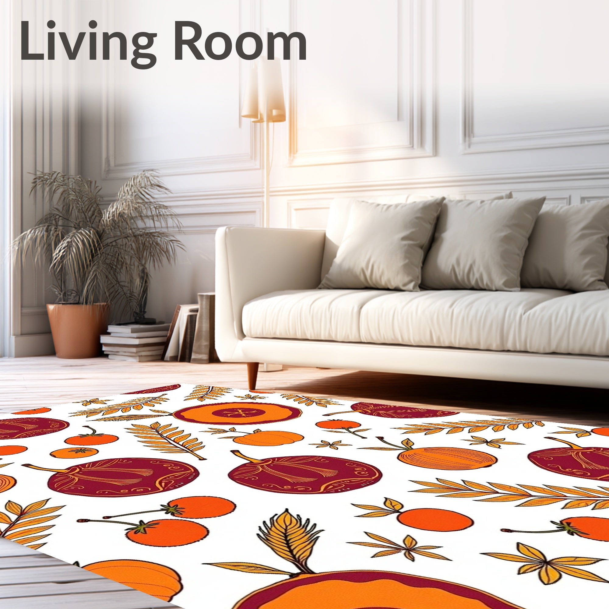 Ultra Soft Area Rug, Non Slip, Stain Resistant, Washable Area Rugs for Living Room, Bedroom, Welcome Fall Cornucopia with Abundance Harvest Celebration(Orange) Overview: