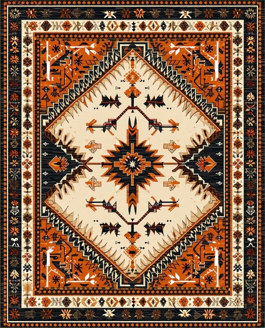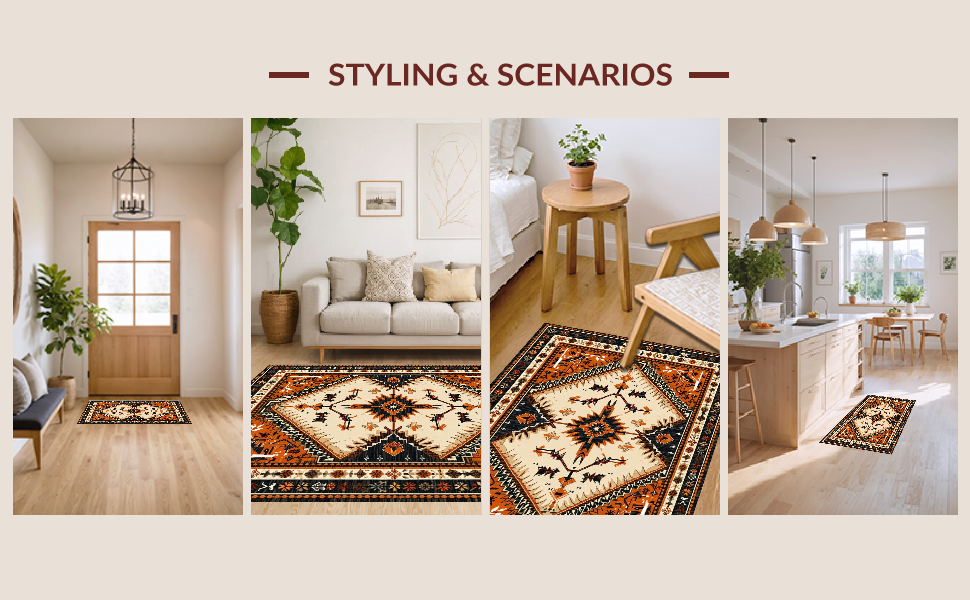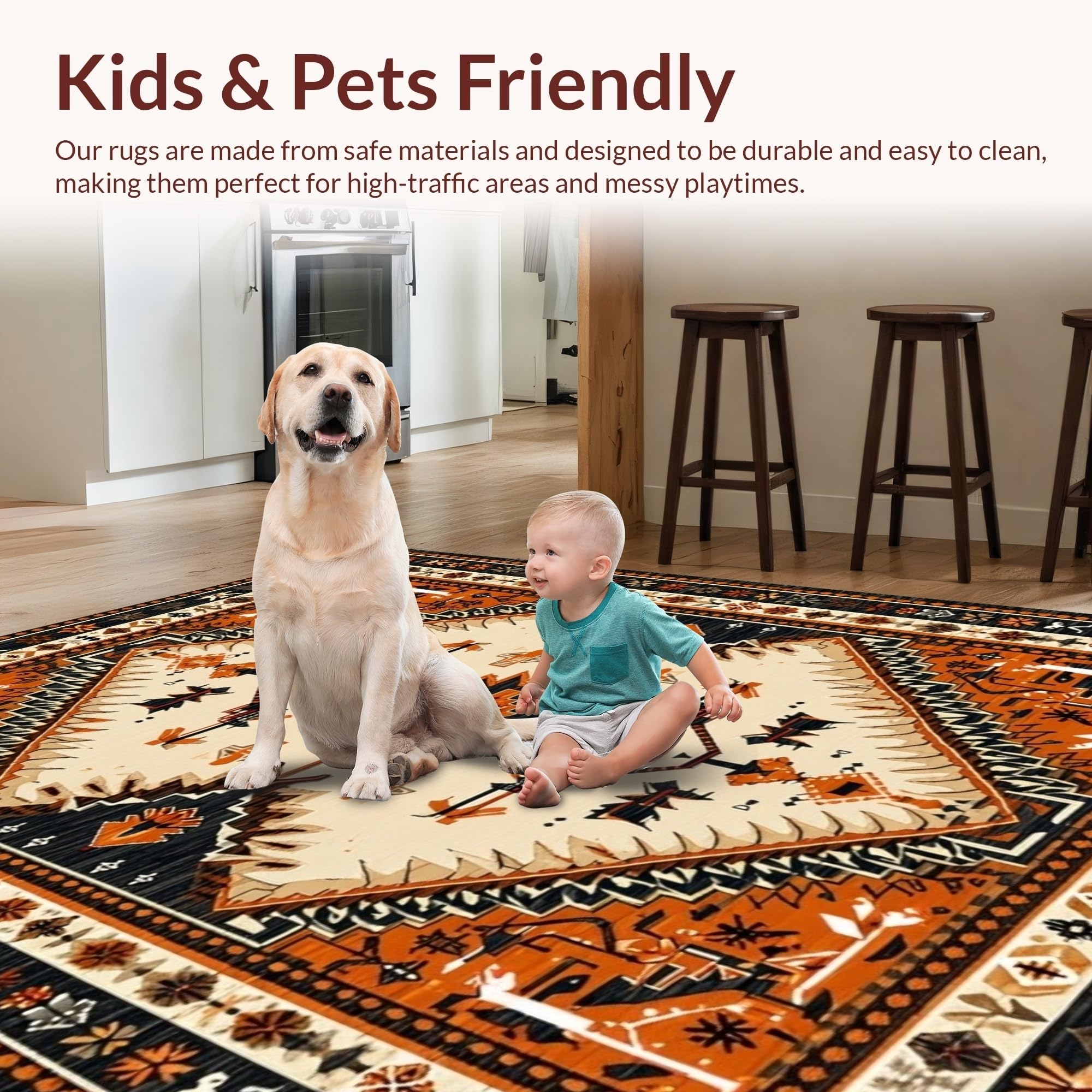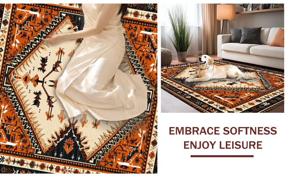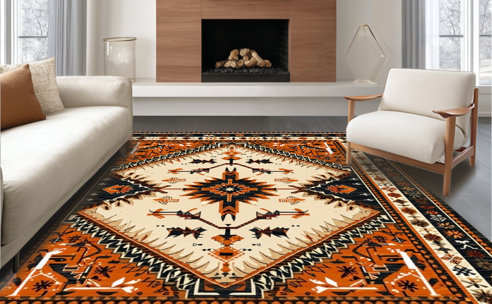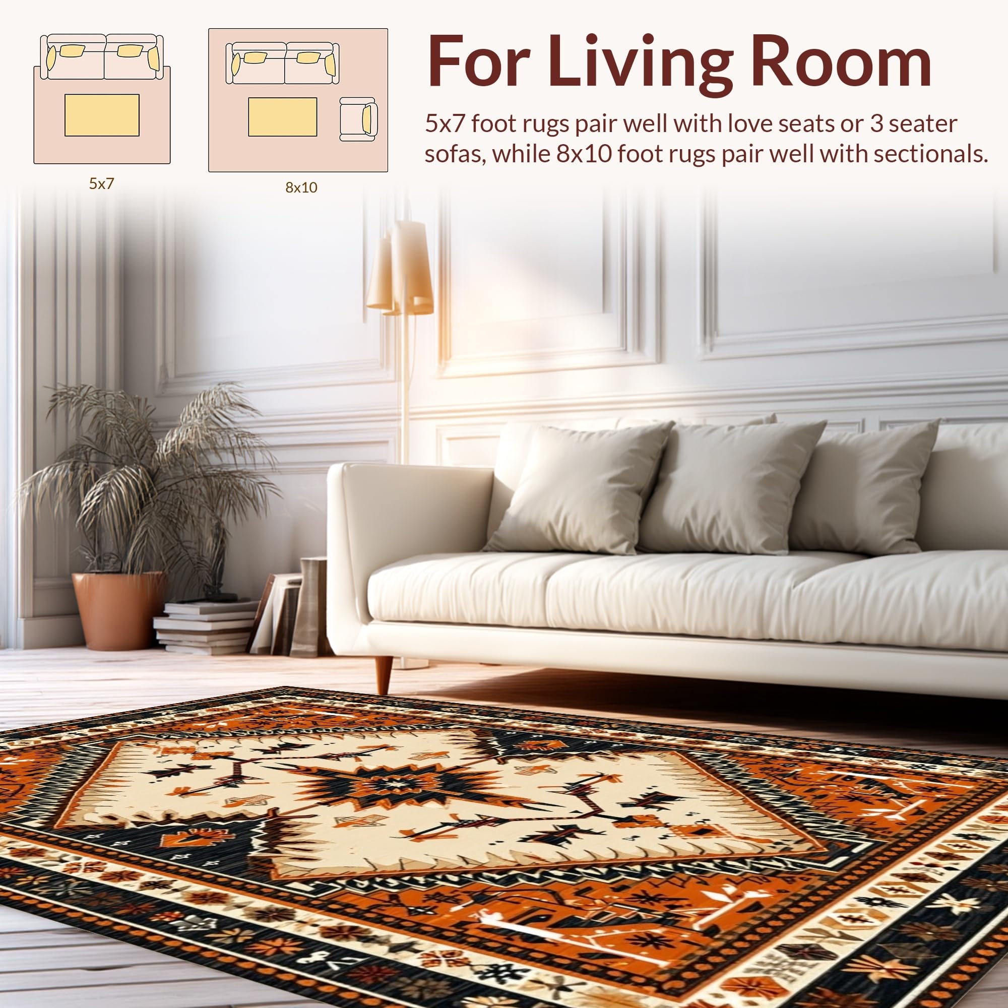 Ultra Soft Area Rug, Non Slip, Stain Resistant, Washable Area Rugs for Living Room, Bedroom, Western Earth Tones Circle Motif(Beige) Overview: